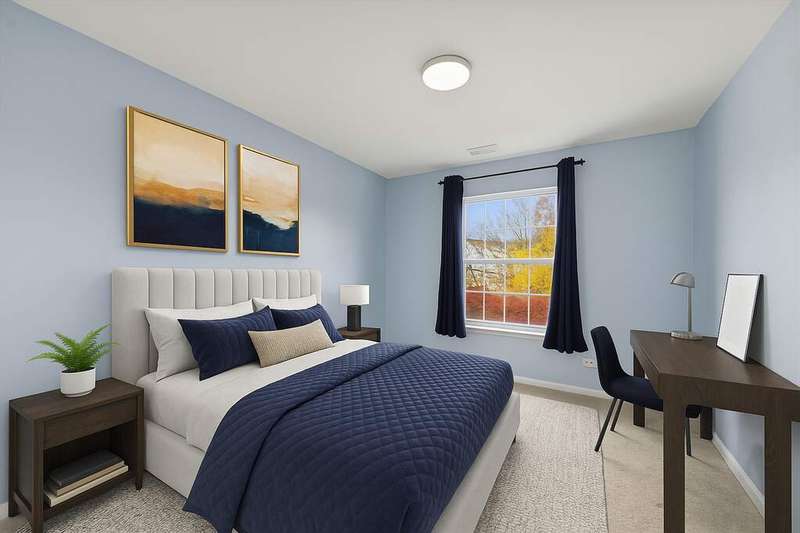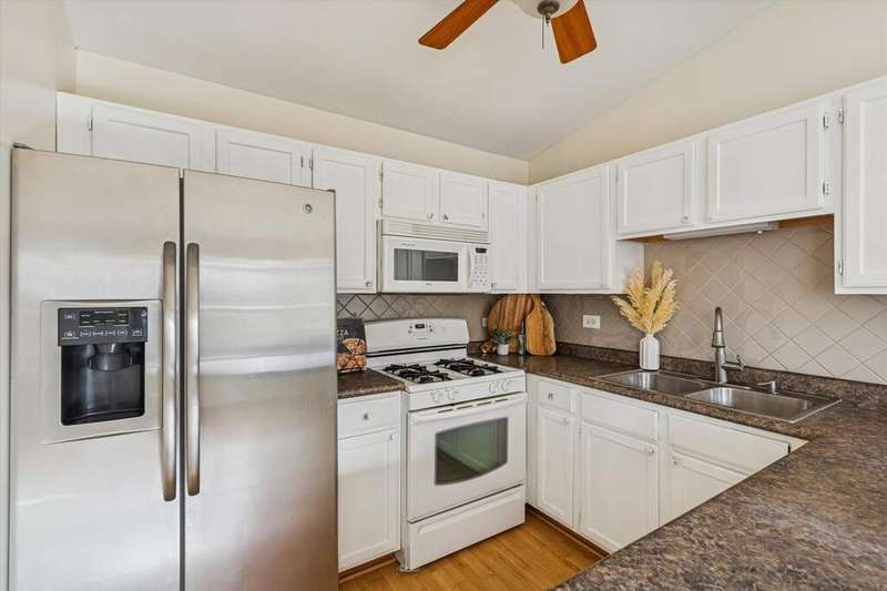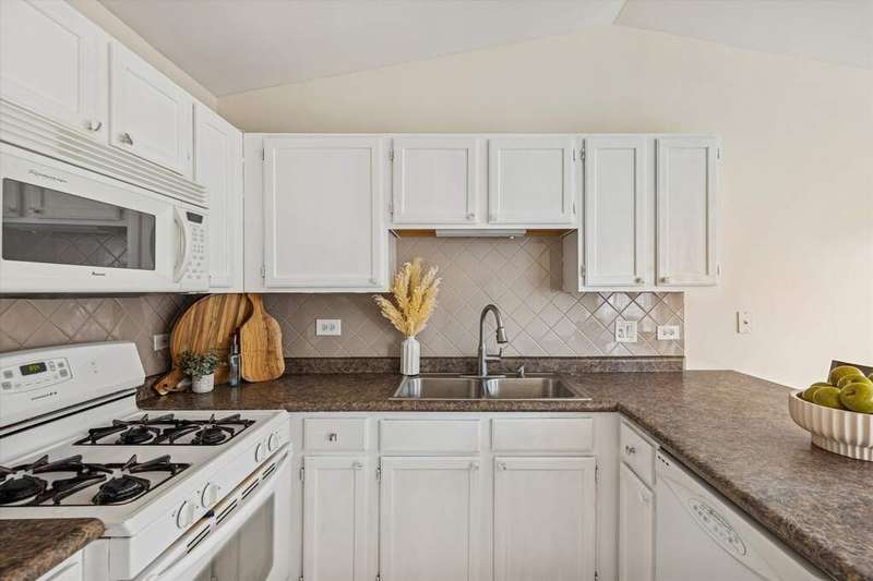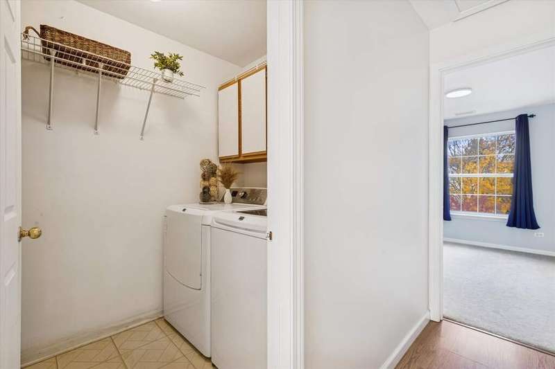 Bright & sunny move-in ready 2-bedroom, 2-bath condo in tranquil Oakwood Hills! Inviting second-floor home w/ vaulted ceilings and laminate flooring throughout main living areas. Airy living room features large windows and cozy gas fireplace. Freshly painted kitchen offers ample cabinetry, breakfast bar, and open flow to dining area-ideal for hosting and entertaining. Balcony off dining area is perfect for morning coffee or evening grilling w/ views of forest preserve. Primary ensuite includes walk-in closet, updated lighting, and complete bath w/ dual-sink vanity. Second bedroom also freshly painted with updated lighting. Additional highlights include newer washer, dryer and hot water heater, in-unit laundry and attached 1-car garage. Prime location near I-90, Route 20, shopping, restaurants, and schools. Move-in ready & waiting for you!