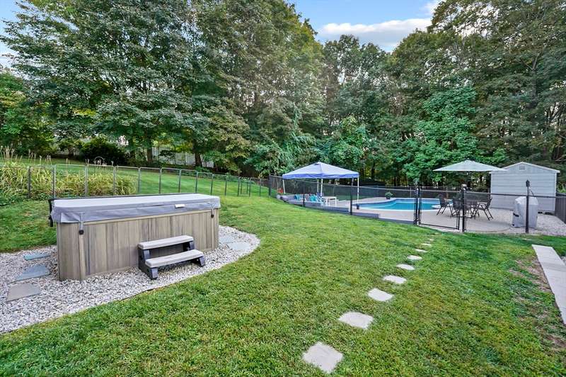 Motivated Sellers Ready to Downsize- This beautifully maintained home sits on over an acre, professionally landscaped with a Gunite pool, hot tub, and spacious yard—perfect for entertaining or relaxing. Inside, hardwood floors flow through the main level with a large living room, fireplace, bright sunroom, and a kitchen featuring cherry cabinets and Corian counters. Upstairs offers three bedrooms and a bonus area ideal for an office or playroom.. Major updates include a new furnace and bulkhead (2025), pool pump (2021), pool replastered/tiled (2017), backyard retaining wall (2023), and newer roofs on the house (2014), garage (2009), and shed (2023). Excellent curb appeal and commuter-friendly location near major routes.
