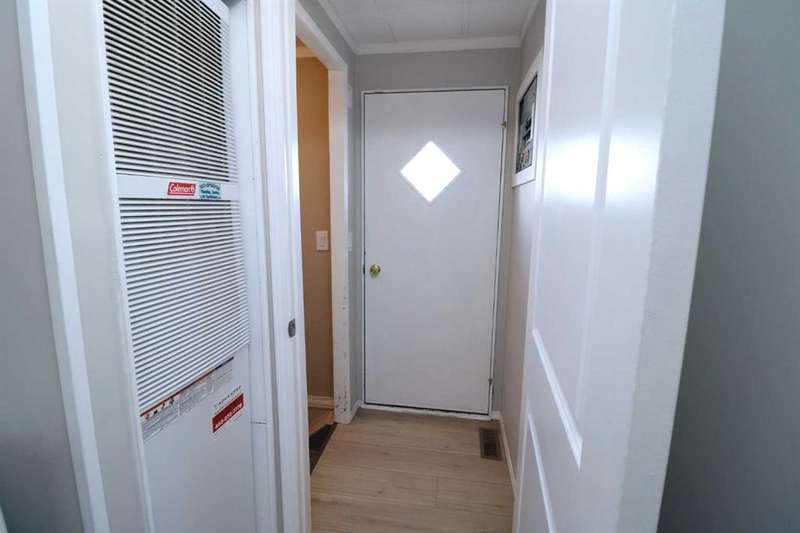 Upgraded 3-bedroom home located within walking distance of the Elementary School, High School and Playground. This cozy, well-maintained home is ready for a new owner. 3 bedrooms, expansive living area , large Kitchen with movable Island and all Appliances included. The basement is wide open, ready for your new ideas (potential Suite with approval and permits from the City of Airdrie). There is even an Egress window installed downstairs (potential bedroom).. Newer Sump system (Doug Lacey ) installed a couple of years ago, so no worries about moisture problems. Backing onto a Green area and a walking path. Come view and enjoy.