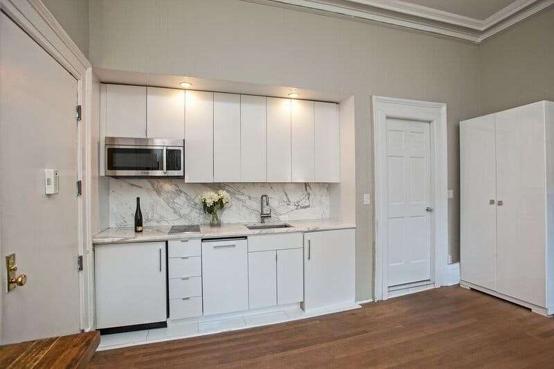 Sleek 1 Bedroom in the heart of Greenwich Village. Brand new renovation of the entire apartment to include a new kitchen and bathroom, refinished floors, central air, dishwasher and a washer/dryer. The quiet apartment overlooks beautiful gardens and brownstones. Oversized windows. Located on a quiet and leafy street within minutes to any amenity.