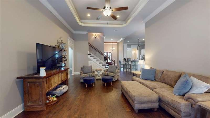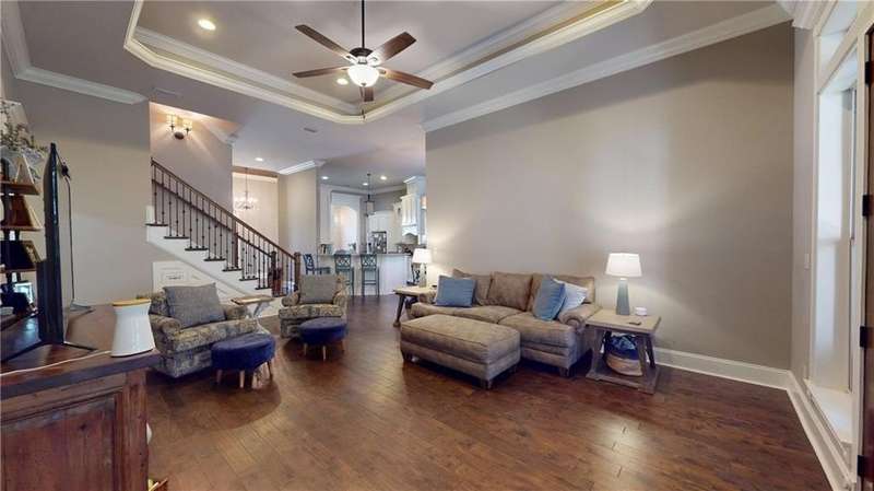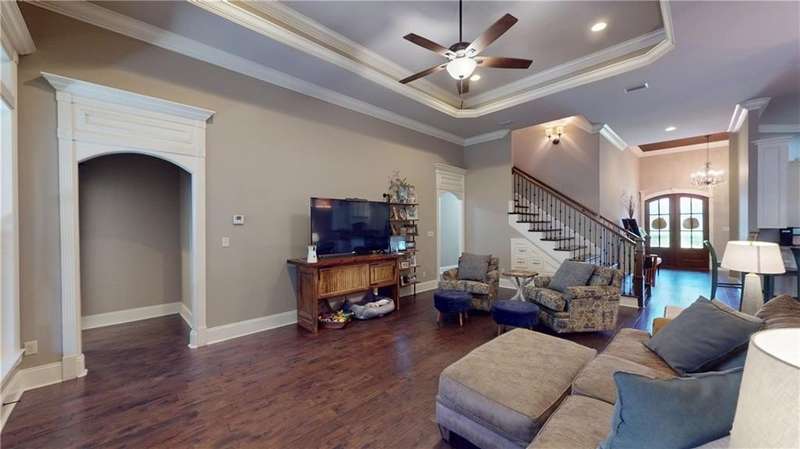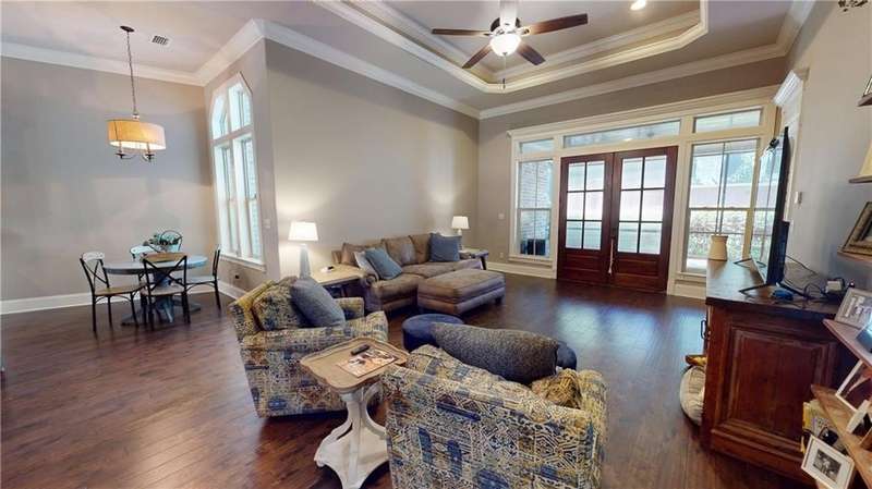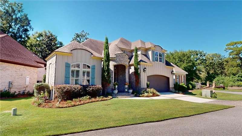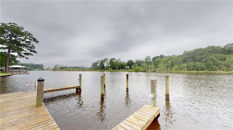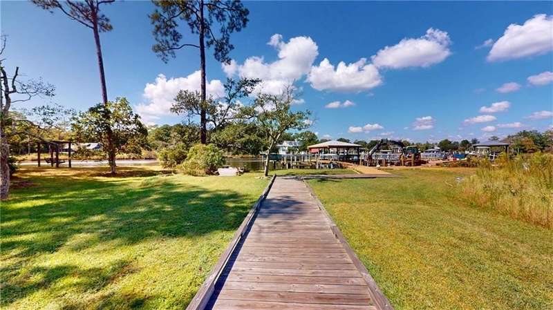 Ready for a unique living situation This home is in the little slice of paradise you have never heard of - River Stone. This is a gated community on Rabbit Creek in Theodore with shared water access. It is convenient to MS, Dauphin Island, West Mobile, new airport, and downtown Mobile. The home comes with its own deeded boat slip with electric boat lift. There is a community gunite saltwater pool, covered pavilion with swings and plenty of seating room on the water to watch the creek and the many duck houses that have been built by a resident. There is a fish cleaning station for when your return from the gulf, river, or island. The pier and pavilion area were updated and will be completed by end of October of 2025. The home was built to be a showstopper with unique features- tons of crown molding, wainscoting, and ceiling features. The interior of the house is freshly painted. The home has an open floor plan with a grand foyer, separate dining room, kitchen with TONS of storage and stainless appliances. The floor plan is also unique with the primary on the main floor with a large bathroom and recently remodeled shower, separate vanities, walk-in-closets, toilet closet, and a barrel ceiling for added flair. The first floor has an additional bedroom and a full bathroom. On the second floor are two generous sized bedrooms and another full shared bathroom. There is also a large bonus room and walk in attic storage. The screened in back patio has always been the owners' favorite spot with privacy vegetation, television, view of the boat area of the cul-de-sac, and a small deck. Per the builder, duct work was established if you want to enclose this area. The home has a sprinkler system and a decorative black steel fenced backyard. House is also equipped with a transfer switch for a generator. Buyer to verify all information to satisfaction during due diligence period. Listing Agent is the seller and a licensed real estate agent in the state of Alabama. B