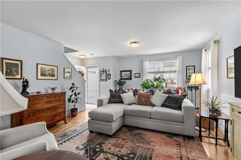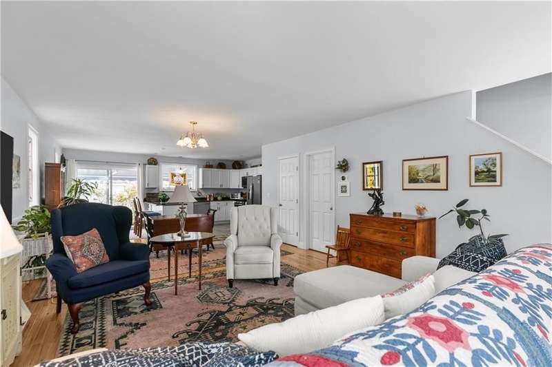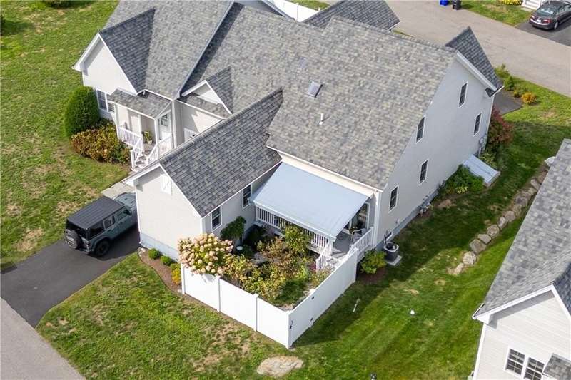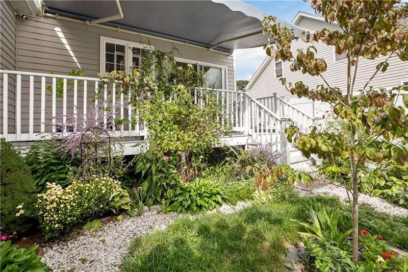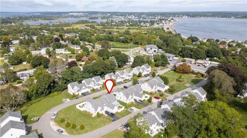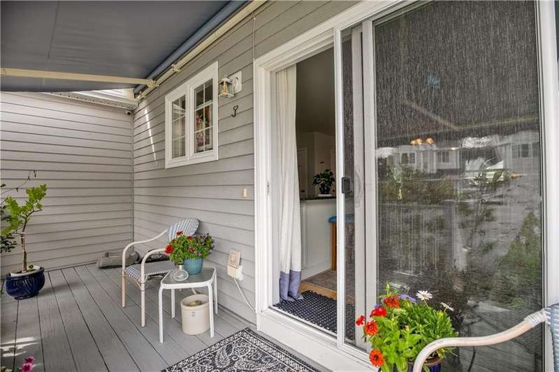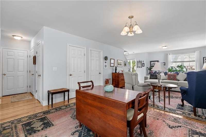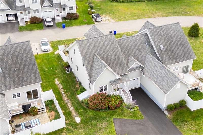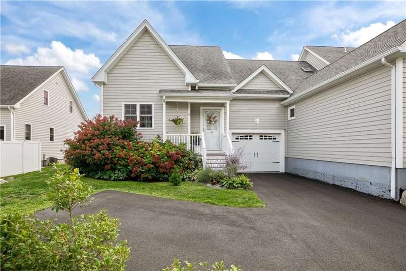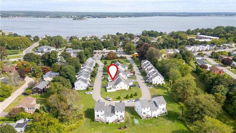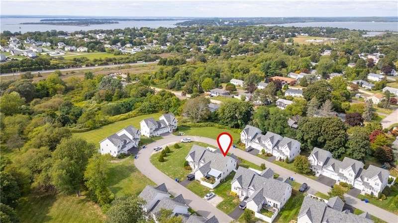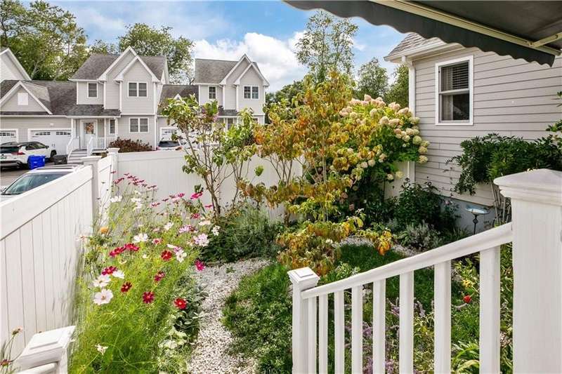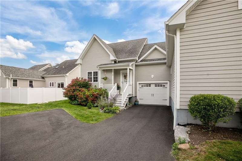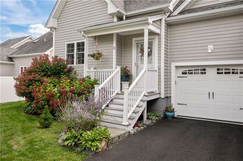 Lovely, impeccably maintained two bed, two bath condominium filled with sunlight designed for comfort and convenience. Attention to detail in the care is evident throughout the home. Hardwood floors throughout, three vehicle parking, a full basement with built-in shelving is accessible from inside and outside. The first floor bedroom with large closet is steps away from a shower bath and the second floor bedroom boasts large walk in closet. The second floor bath has a tub and shower and there is an office or guest room with handsome built-in shelves. A pretty porch ideal for morning coffee, afternoon sippin' or a cookout leads to the private, enclosed garden and is covered by a remote canopy. Located near Portsmouth's town amenities, fine dining, eateries and, remember to bring your bathing suit and take a dip into the Sakonnet River.