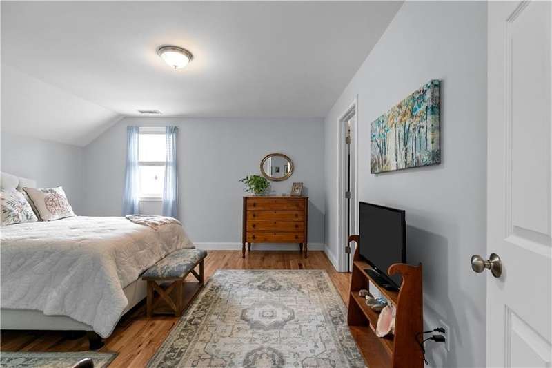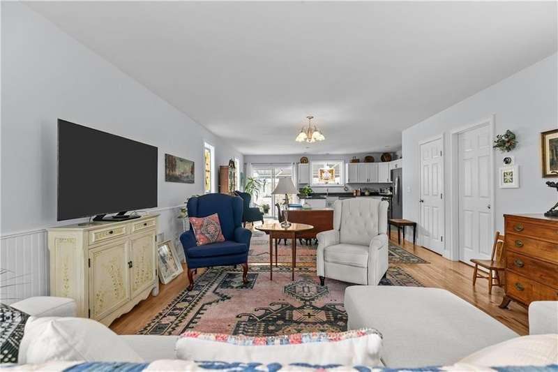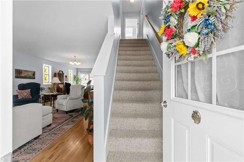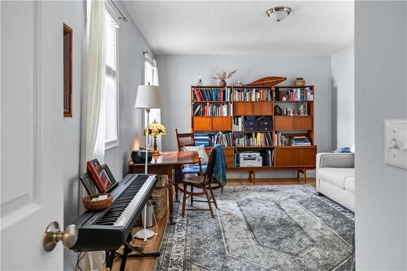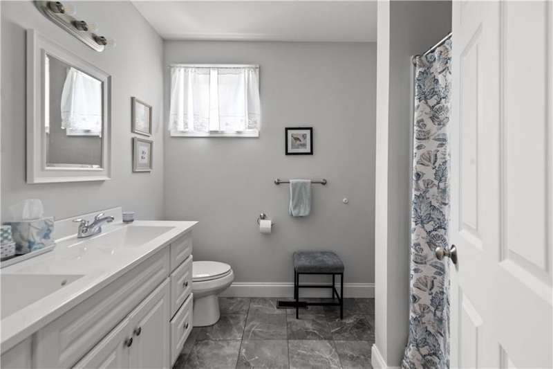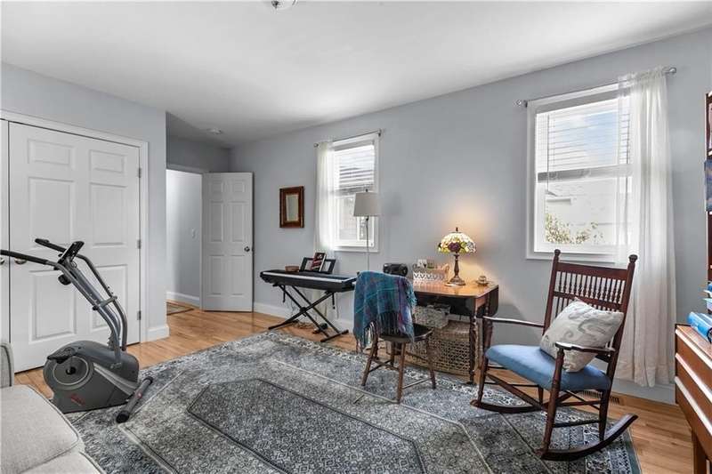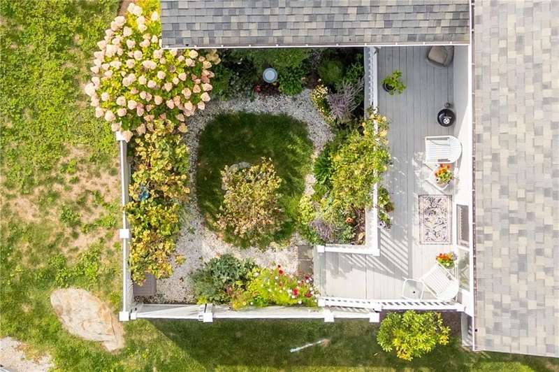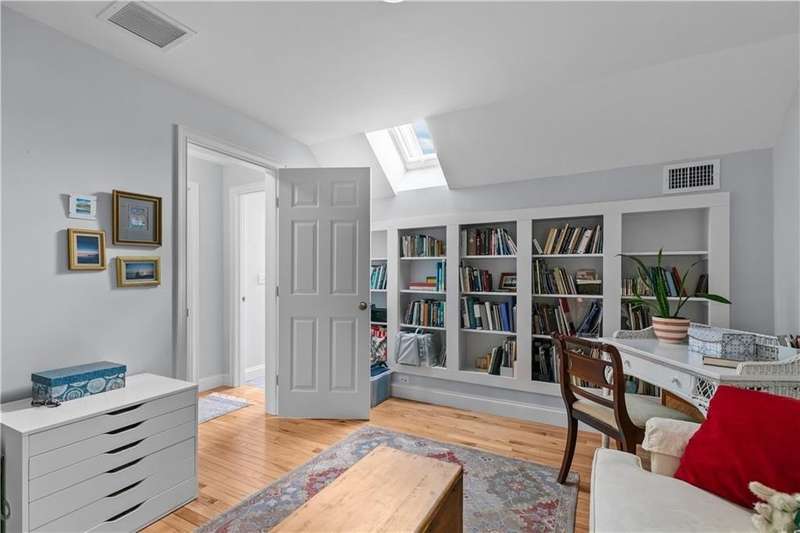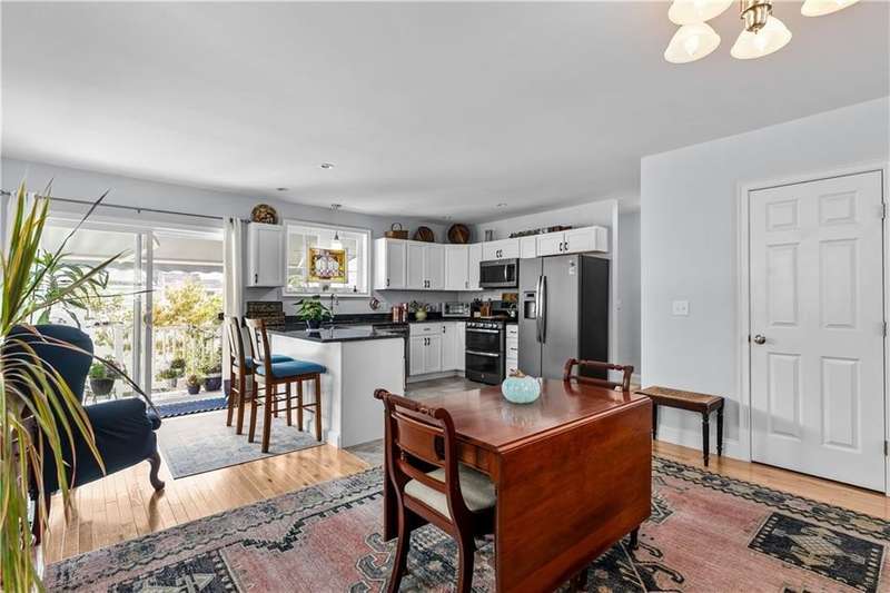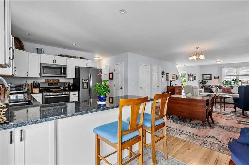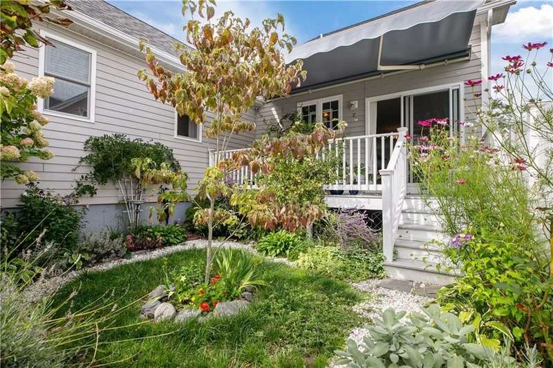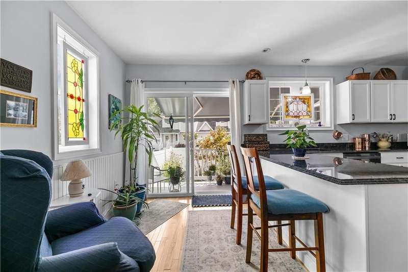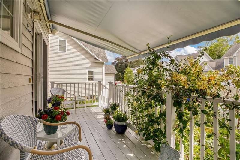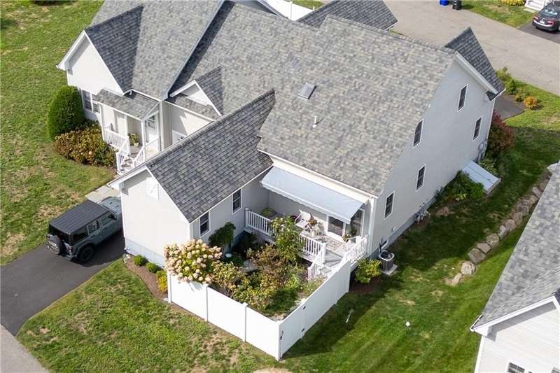 Lovely, impeccably maintained two bed, two bath condominium filled with sunlight designed for comfort and convenience. Attention to detail in the care is evident throughout the home. Hardwood floors throughout, three vehicle parking, a full basement with built-in shelving is accessible from inside and outside. The first floor bedroom with large closet is steps away from a shower bath and the second floor bedroom boasts large walk in closet. The second floor bath has a tub and shower and there is an office or guest room with handsome built-in shelves. A pretty porch ideal for morning coffee, afternoon sippin' or a cookout leads to the private, enclosed garden and is covered by a remote canopy. Located near Portsmouth's town amenities, fine dining, eateries and, remember to bring your bathing suit and take a dip into the Sakonnet River.