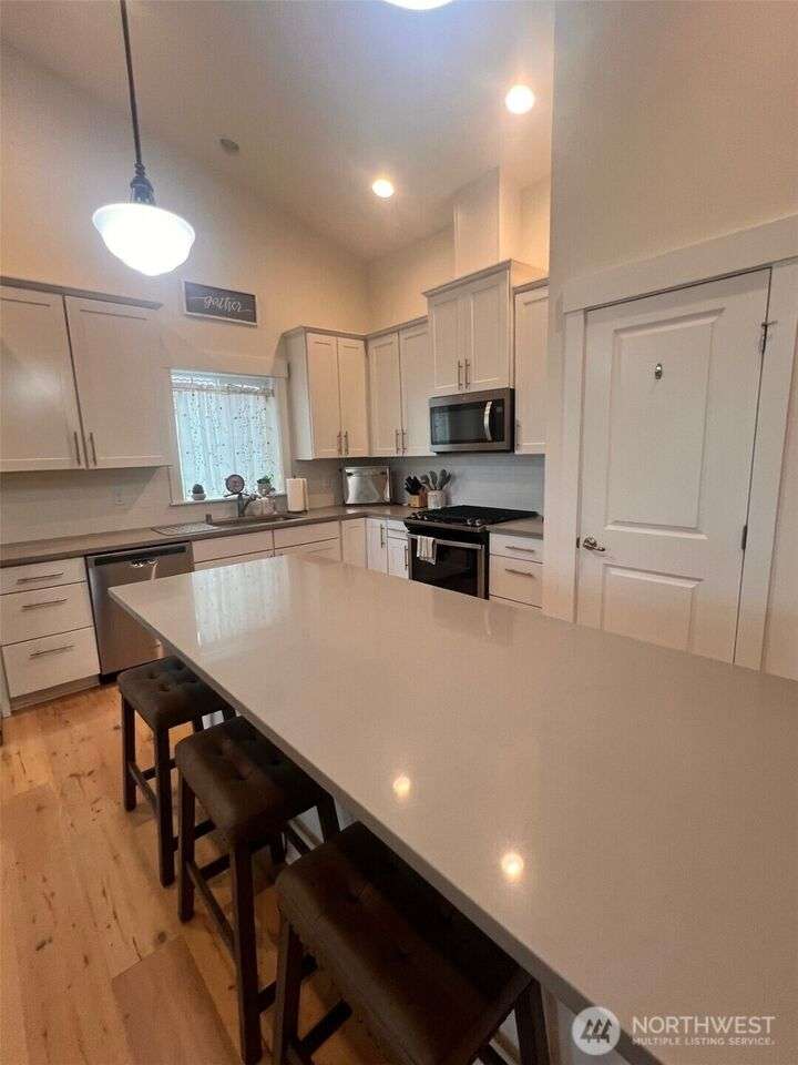 Live in LakeLand Village! 3 bedrooms on main level & one huge bedroom in the finished basement. 2 bathrooms on the main level and one in the basement. Huge family room in the finished basement. Open & bright with soaring ceilings, wide plank hardwood floors, quartz countertops, primary bathroom, large covered deck and a porch with a hot tub. The backyard is fenced and features fruit trees, as well as a lovely, private view. 2-car garage and tons of storage. Enjoy the amenities of LakeLand Village with its 27-hole golf course, Anderson Lake, Bistro, tennis & basketball courts, all in the charming and welcoming town of Allyn. Close to SR 3, Schools, restaurants & shopping. Gig Harbor is 35 mins away (also SR 16).