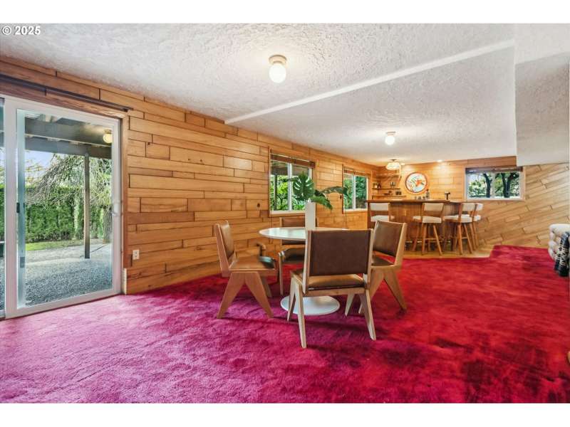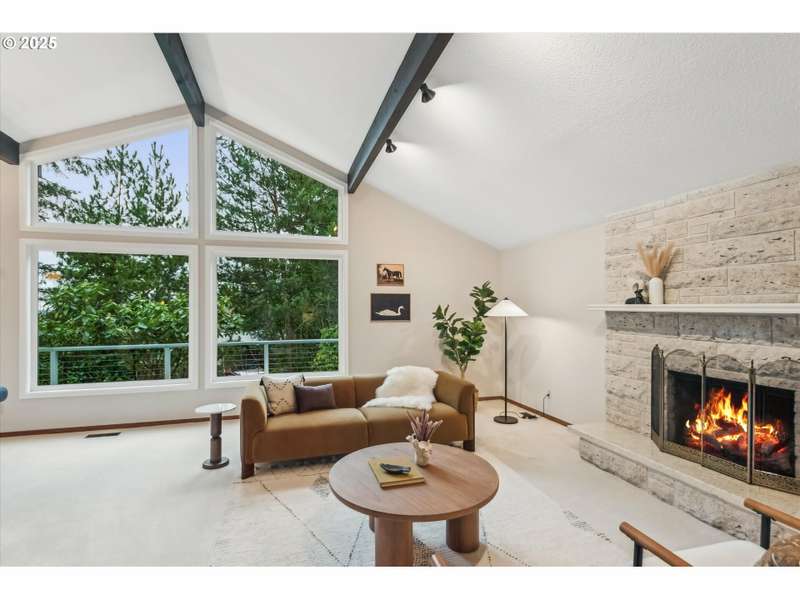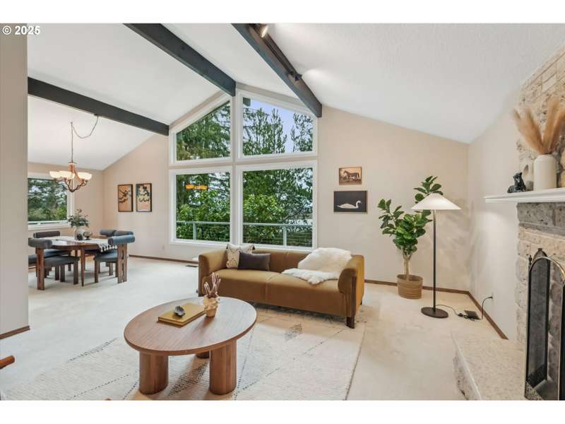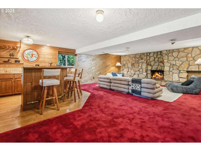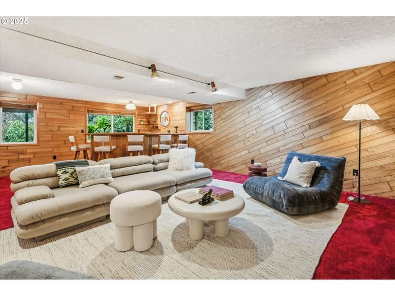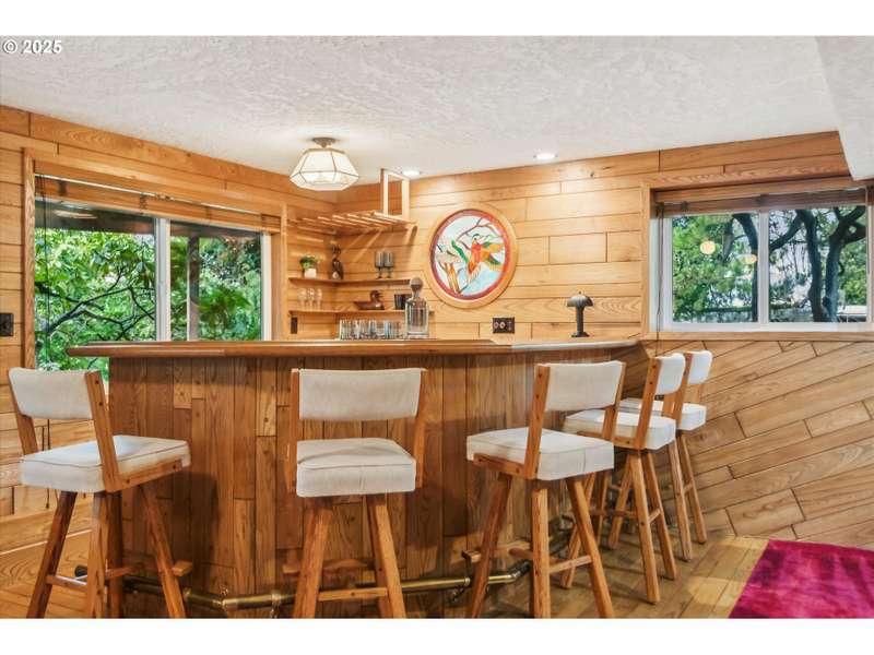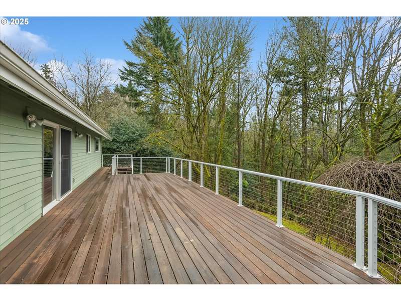 This wonderful Happy Valley midcentury blends 1960s period details, available single level living, ample natural light, a generous floor plan, and a nearly 3/4 acre lot! The main floor is highlighted by a sweeping living room with vaulted ceilings, exposed beams, airy windows, and a lovely fireplace. The floor plan flows gracefully from there through the formal dining room and into the kitchen/dining nook before gliding onto the enormous backyard deck, perfect for summer dining. The home's bedroom wing features 3 bedrooms, 2 bathrooms, and an additional office - space for an extra home office or craft room! The lower level's spectacular bonus room - with original wood paneling and stone-clad fireplace - boasts an incredible built-in bar, perfect for an entertainment and gaming center. Two additional bedrooms, a third bathroom, and utility/shop rooms supply even more space. A 2 car garage, central AC, and a higher efficiency furnace lend mechanical conveniences, while the spacious lot makes for a wonderful woodsy retreat. This one is not to be missed!