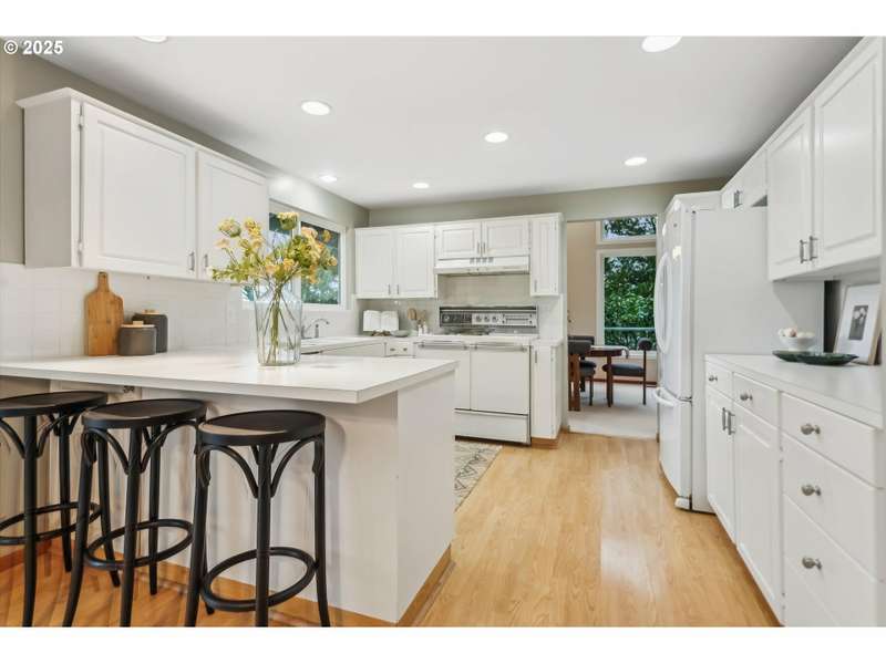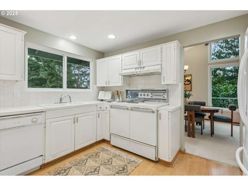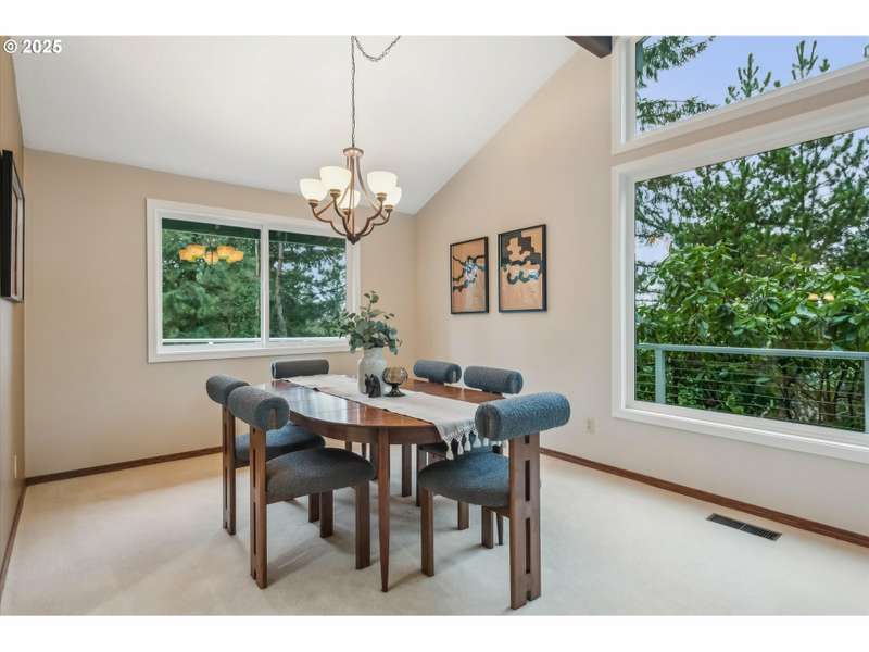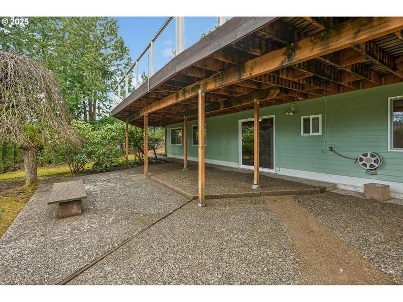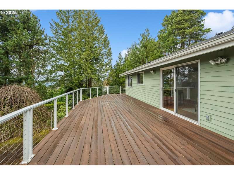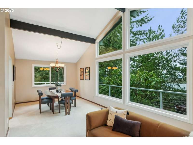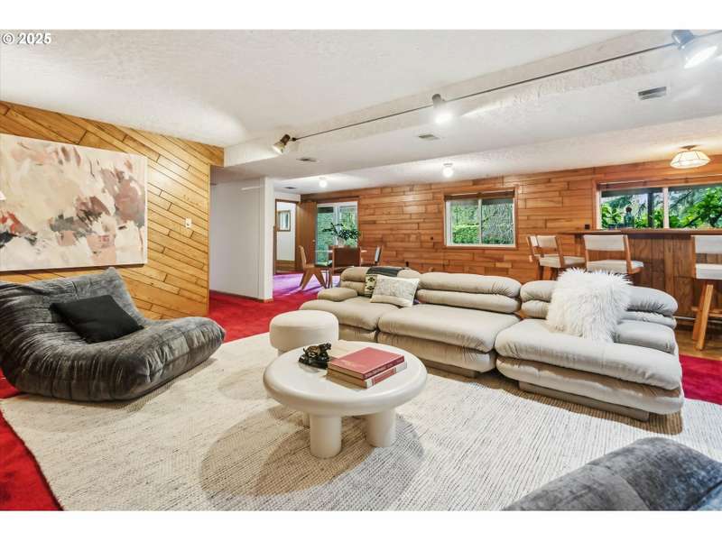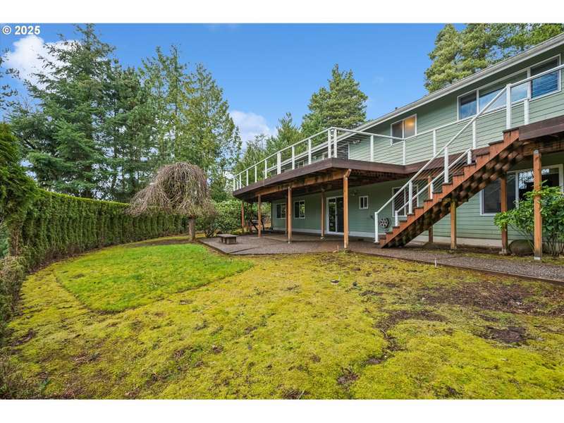 This wonderful Happy Valley midcentury blends 1960s period details, available single level living, ample natural light, a generous floor plan, and a nearly 3/4 acre lot! The main floor is highlighted by a sweeping living room with vaulted ceilings, exposed beams, airy windows, and a lovely fireplace. The floor plan flows gracefully from there through the formal dining room and into the kitchen/dining nook before gliding onto the enormous backyard deck, perfect for summer dining. The home's bedroom wing features 3 bedrooms, 2 bathrooms, and an additional office - space for an extra home office or craft room! The lower level's spectacular bonus room - with original wood paneling and stone-clad fireplace - boasts an incredible built-in bar, perfect for an entertainment and gaming center. Two additional bedrooms, a third bathroom, and utility/shop rooms supply even more space. A 2 car garage, central AC, and a higher efficiency furnace lend mechanical conveniences, while the spacious lot makes for a wonderful woodsy retreat. This one is not to be missed!