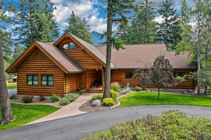 Mountain lodge living in Big Sky Country! Discover the perfect blend of privacy, comfort, & convenience in this stunning 3BD/4BA, 4,299 SF log home nestled on 2.685 acres in a quiet, park-like setting. Surrounded by mature trees & beautifully landscaped grounds, the property offers a serene wooded lot w/ inviting outdoor spaces. Enjoy Montana evenings around the outdoor fire pit, or unwind in the fenced side yard, ideal for pets or gardening. Elevated, unobstructed views of the Swan Mountain Range create a breathtaking backdrop, with a circular driveway leading to the home's welcoming entrance. Inside, expansive living spaces and thoughtful design capture both elegance & warmth. Perfectly situated between Columbia Falls, Kalispell, & Bigfork, this location provides quick access to everyday amenities. Glacier National Park is just a 30-minute drive away, & Whitefish Mountain Resort, Flathead Lake, & the Bob Marshall Wilderness are within easy reach for endless year-round recreation.