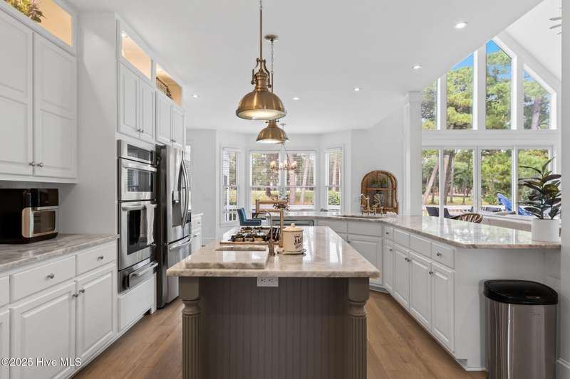 Welcome to 3454 Members Club Blvd in amenity-rich St james Plantation. Rarely does everything come together to present an opportunity like this. Curb appeal meets massive renovation meets expansive views. A new home this size with this view and finishings could cost in excess of $1.5m right now. What a value here. Step through the rocking chair front porch into a foyer filled with light and space. That theme carries throughout the entire home courtsey of the rear wall of windows. No expenses were spared when the Owners completely remodeled the kitchen and master bathroom. Marble countertops, abundance of cabinet space, European Wine refrigerator, open and social Kitchen. The downstairs is complete with a dining room or office flex space, 4-seasons sunroom, and a master retreat offering multiple walk-in closets, walk-in shower, and beautiful claw foot soaking tub . The upstairs offers an abundance of space for friends and family to spread out with 3 private bedrooms and a massive Bonus Room for movie night, the big game or the grandkids bunk room. The Garage is oversized to offer plenty of space for cars, toys, and a workshop, Outside you find an expansive, but protected, view of Hole #1 of the Members Club golf course and the homesite is very centrally located in the middle of the community so all gates and amenities are only 5 minutes away. The site is also large enough to accomodate future backyard goals for pool, outdoor kitchen, firepit etc. Additional recent improvements to protect your investment include new exterior and interior paint in 2025, new roof in 2018 and Active Membership.