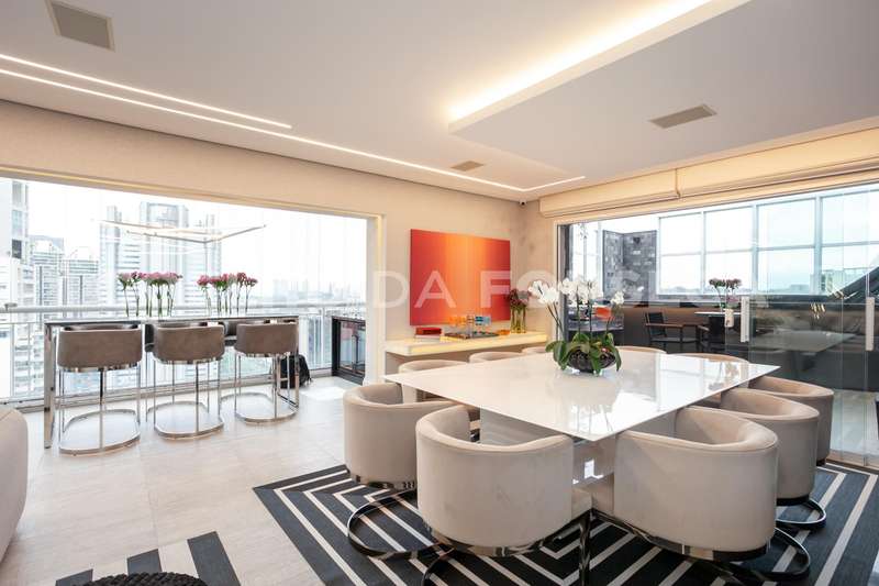 Cobertura cinematográfica ao lado de um dos principais centros econômicos de São Paulo. Impecável, com todos os detalhes cuidadosamente planejados. Piso superior com living e sala de jantar integrados a uma área externa com linda piscina, lareira, espaço gourmet, brinquedoteca e estiloso escritório. O piso inferior conta com mais uma sala, cozinha, área de serviço e três suítes, sendo uma master com um amplo closet e varanda que pode ser utilizada como um segundo escritório. Marcenaria de primeira linha e ar condicionado nos ambientes. Tudo cercado por uma vista deslumbrante de vários ângulos da cidade. Não deixe de conher e se apaixonar!