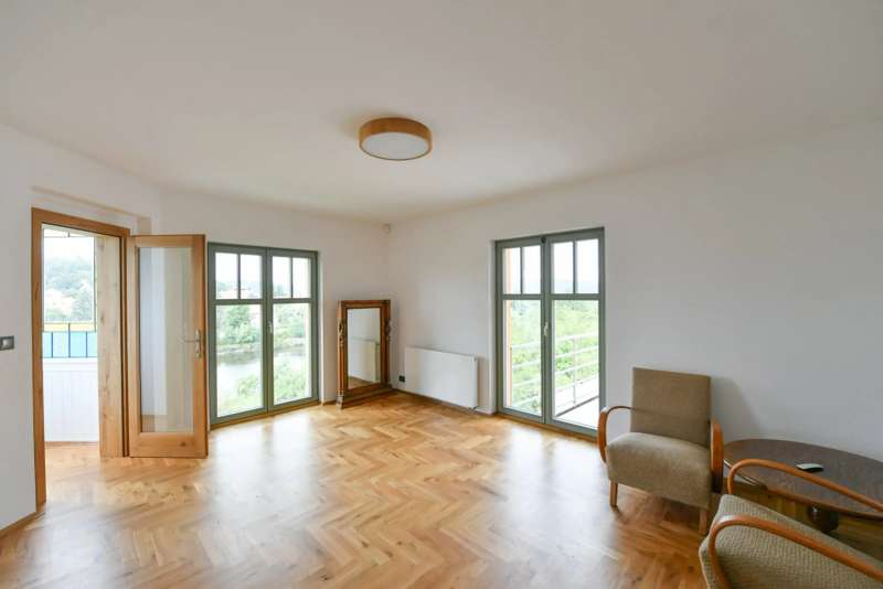 The first floor features a private, self-contained suite with a bedroom, living room, dressing room, bathroom with a stunning wooden coffered ceiling, entrance hall, and separate toilet—ideal for relaxation and privacy. Upstairs, you'll find three cozy bedrooms, a bathroom with a toilet, and another entrance hall with a separate WC. The attic provides additional flexibility, perfect as a guest suite, staff quarters, or a private retreat for a teenage family member.
