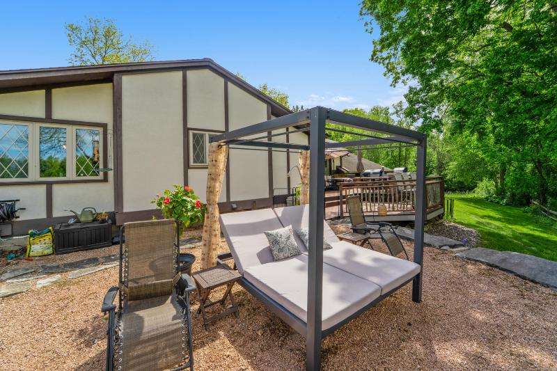 Discover the epitome of country living at this magnificent estate in Fond du Lac County. Boasting over 4500 sq ft, this 4-bedroom, 2.5 bath, home features a primary bedroom and a loft overlooking a huge English great room with a commanding fireplace. The stunning lower level rec room and bar offers incredible character with a fireplace and stone wall accents. Further find an attached 1-bedroom guest or rental apartment. The property sprawls over 21 pristine, wooded acres with 3 ponds, trails and various outbuildings including a 6-car garage, free-standing studio, and a horse barn with riding arena. This ideal retreat offers a mix of tranquility, nature, and endless amenities, all just minutes away from Fond du Lac. Seize the opportunity to own this secluded oasis!