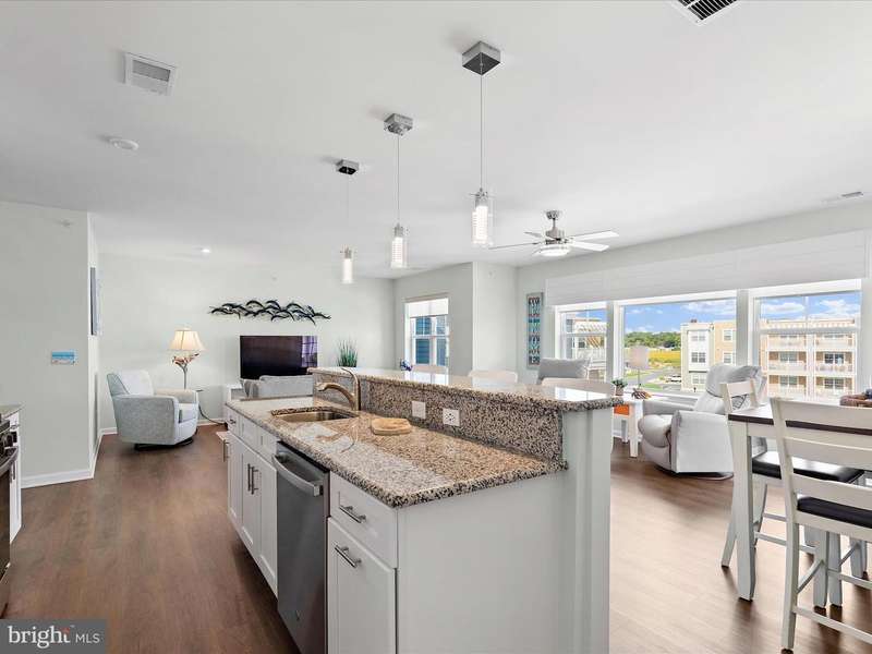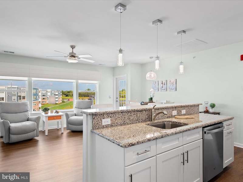 Welcome to 21041 Riesling Lane, Unit 402, a beautifully maintained two-bedroom condo in The Vineyards at Nassau Valley, Lewes, Delaware. From your elevated vantage point, enjoy peaceful privacy and scenic water views of the pool and pond. The main living area is filled with natural light from three large windows and flows seamlessly into the gourmet kitchen, creating an open and inviting space. The kitchen is as stylish as it is functional, featuring granite countertops, all new stainless-steel appliances, a gas range, undermount sink, crisp white soft-close cabinetry, a stylish backsplash, storage pantry, and a bi-level breakfast bar with pendant lighting, perfect for both casual dining and entertaining. The spacious primary bedroom boasts a walk-in closet and an ensuite bath, offering a private retreat at the end of the day. A second bedroom and full hall bath provide comfort for guests, while a large laundry/utility room with a stacked washer and dryer adds everyday convenience. Residents of The Vineyards enjoy a wealth of amenities, including a clubhouse with fitness center and billiards room, outdoor pool, Lakeview Terrace with fire pit and grills, fishing pier at Lake Harmony, dog park, walking trails, picnic area, volleyball courts, pickleball court, and kayak access. The community also connects to the Lewes-Georgetown Trail for scenic bike rides straight into town. Ideally located, this condo is just steps from Redner's Market and Nassau Valley Vineyards, and only five miles from the beach. With easy access to Route 9 and Coastal Highway, plus proximity to Lewes' historic district, pristine beaches, Tanger Outlets, and the Cape May-Lewes Ferry, this home offers unmatched convenience and coastal living at its best. Don't miss the chance to make this low-maintenance, amenity-rich retreat yours, schedule your private showing today!