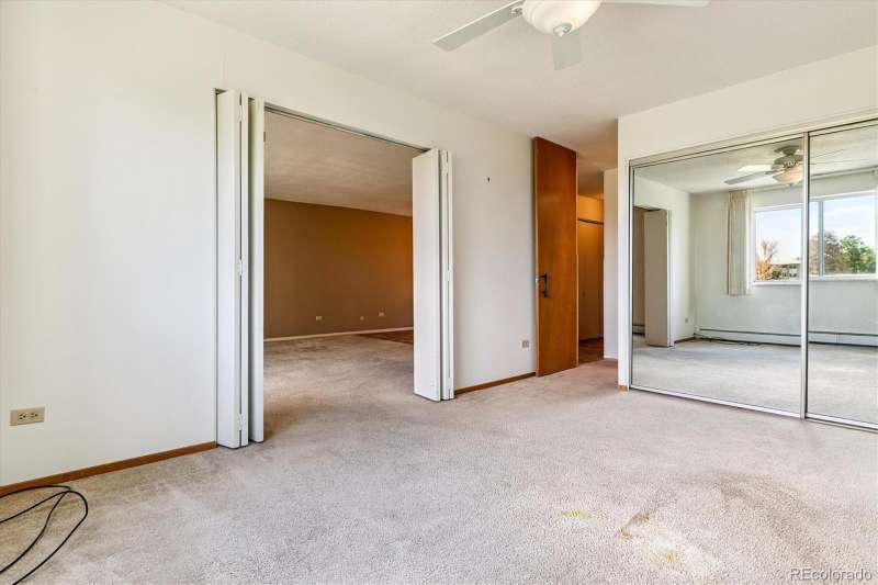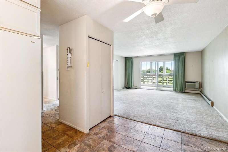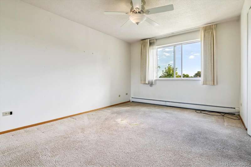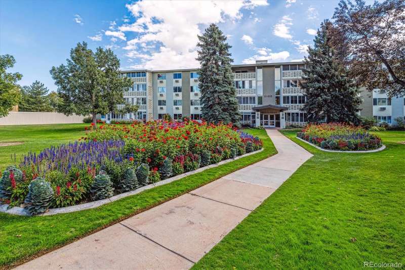 One of the best golf course views in Windsor Gardens- this condo is 1200 sf, with 2 bedrooms, 2 bathrooms, and includes a 1 car detached garage! Priced to sell- this condo offers spacious rooms and golf course views from both bedrooms and lanai. The kitchen includes the existing appliances, and lots of cabinet space plus double sided pantry. Double pane vinyl slider door and vinyl glass/screen lanai enclosure- included! Both living room and primary bedroom include digital wall a/c units. Multi-purpose room offers shelving for lots of storage- or can turn this into mini-office/hobby space. Bonus storage room on same floor in building. If you are looking for a condo to update to your liking- in an amazing location, this is the one! **Windsor Gardens is Colorado's Largest Age 55+ Active Adult Living Condo Community. Did you know? Monthly HOA Dues include annual property taxes! And heat, water, sewer, trash, round-the-clock patrolling community responders, full time onsite association management, grounds/building maintenance, and activities department. Enjoy clubhouse amenities such as fitness center, indoor/outdoor pools, hot tub, sauna, billiards, library, craft rooms for ceramics, sewing, woodworking, and 9 hole par 3 golf course and onsite restaurant both open to the public. Stay engaged with a wide array of activities, clubs, and events scheduled every month. Additional features include garden plot program, private walking trail and nature preserve, and RV/Boat storage. The Highline Canal runs full length along south side of the complex. RTD Bus Stops located thru-out the community. FHA/VA approved. Close to restaurants, stores, shopping…Minutes to Lowry, Hwy 225, Cherry Creek…Easy access to DIA and downtown. Come see for yourself what Windsor Gardens has to offer. 2021**