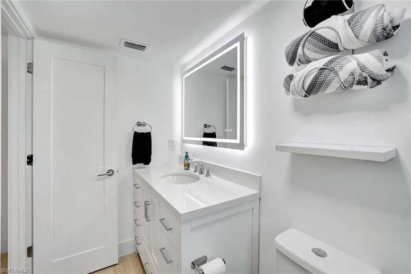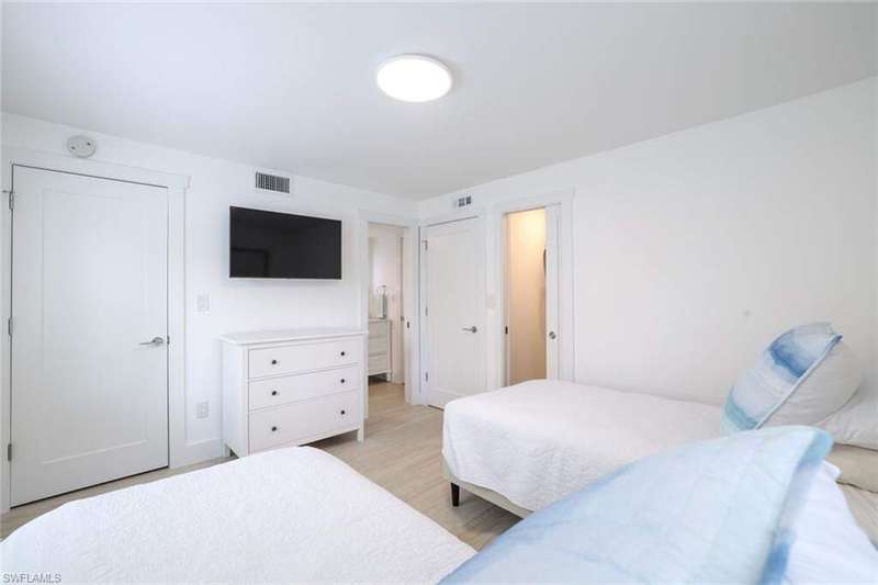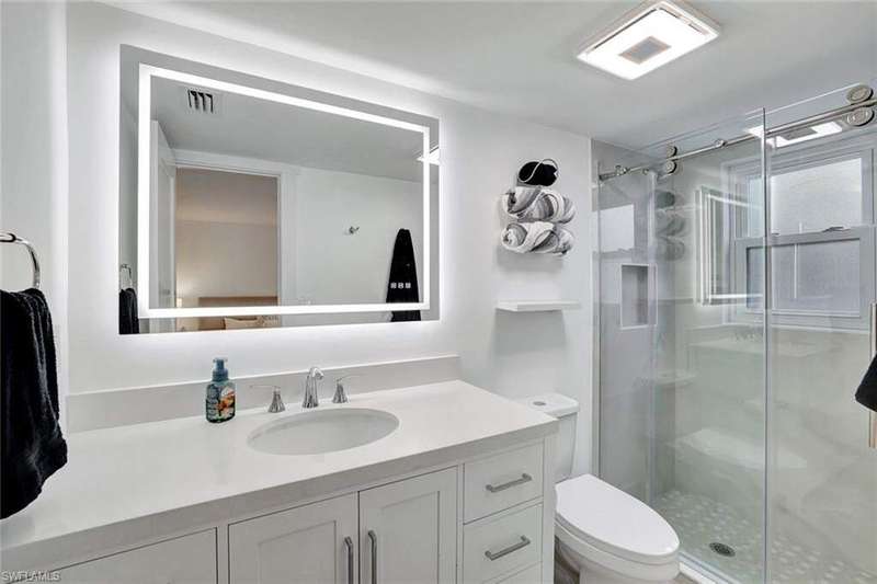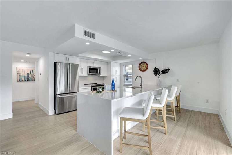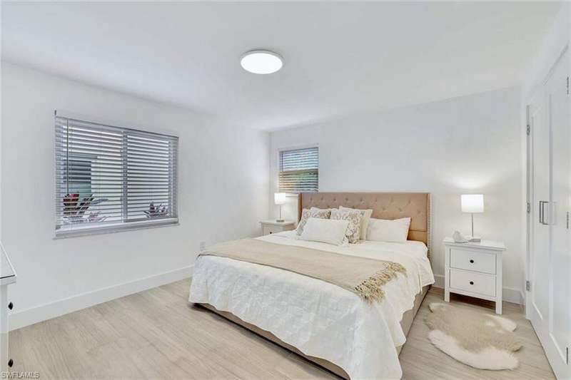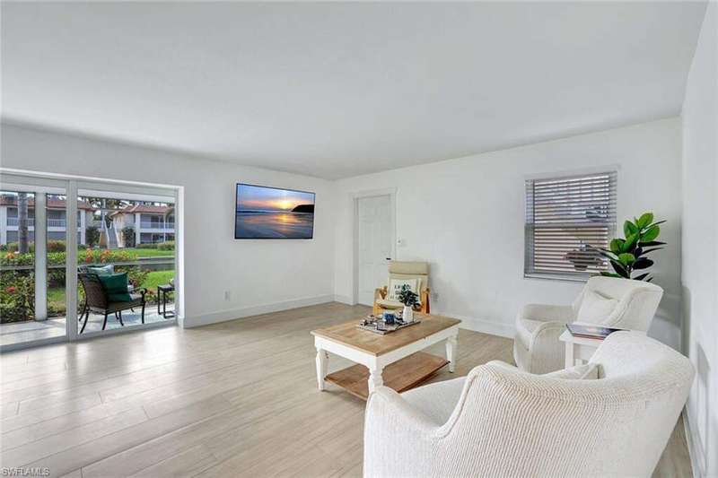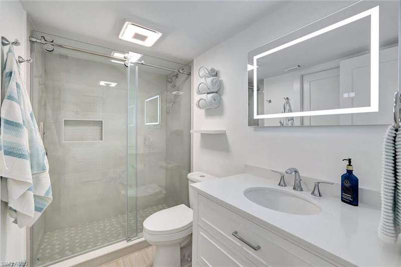 From the moment you step inside, the open-concept layout draws you into a bright, airy living space centered around a stunning all-white kitchen with a quartz waterfall island, sleek new appliances, and a beverage cooler - ideal for entertaining or relaxed everyday living. Every system and surface has been upgraded to the highest standard: new electrical, plumbing, ductwork, and a fully upgraded ventilation system. Added premium rubber soundproofing throughout ensure tranquility in every room. Gorgeous plank tile flooring delivers a seamless, contemporary aesthetic that's both durable and elegant. The primary suite impresses with a spacious walk-in closet and a luxurious spa-like bathroom, while the guest bedroom enjoys private en-suite access for ultimate convenience. Hurricane-impact, insulated, and tinted windows and sliders bathe the home in natural light while maintaining energy efficiency and peace. Unwind on the stylishly tiled, screened lanai overlooking the serene lake - the perfect setting for morning coffee or sunset cocktails. Thoughtful touches like additional electrical outlets, a tankless water heater, LED-lit bathroom fans with built-in Bluetooth speakers, and illuminated mirrors bring everyday luxury to life. Nestled in a peaceful neighborhood with two convenient parking spaces, a private storage unit, and a PRIME NAPLES LOCATION just minutes from the beach, 5th Avenue, and Naples Bay, this residence is more than a home -it's a lifestyle. Elegant and move-in ready, it invites you to experience the very best of Naples living!