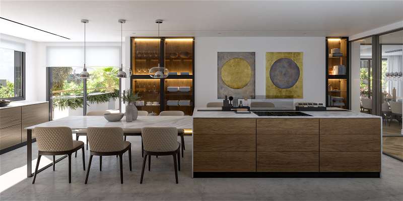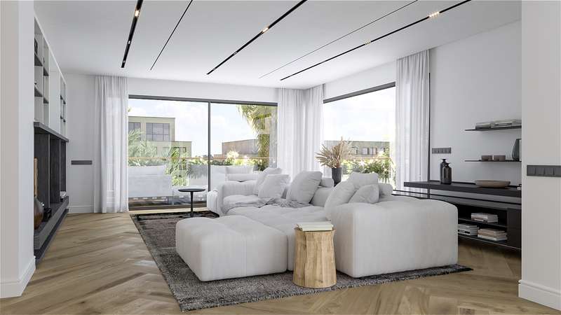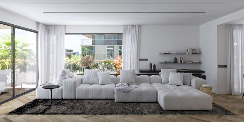The apartment features a spacious open-plan living and dining area with access to a 49 m² private terrace. Four bedrooms, each with an en-suite bathroom, including a master suite with a walk-in closet. High-end finishes, such as natural parquet flooring and Italian designer furniture.Modern comforts, including air conditioning, a built-in kitchen set, and a dressing room.