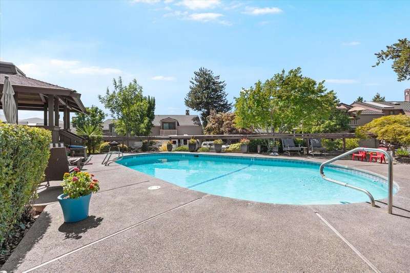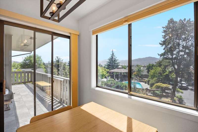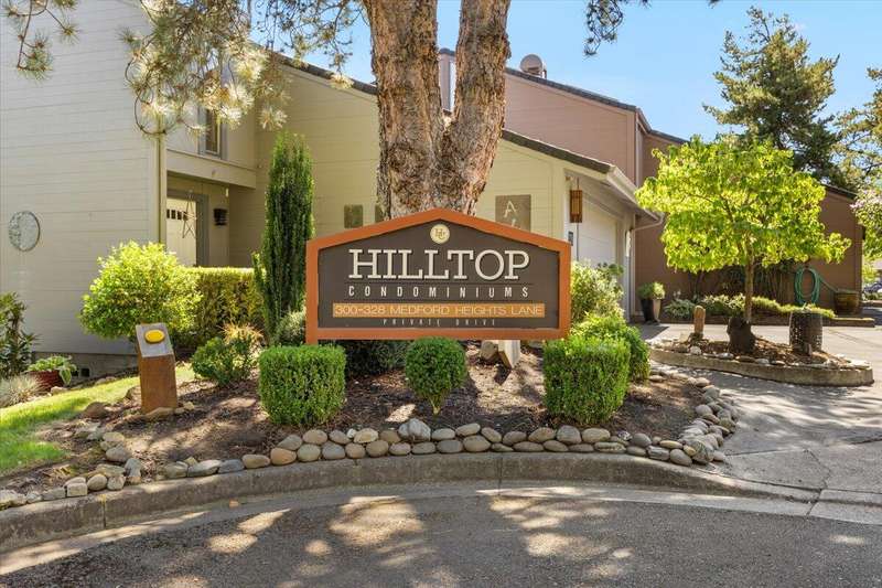 Extremely rare that homes in this community go on the Market. Must tour this stunning view property in prime East Medford hills. Some updates done in 2020 include: vinyl plank flooring, granite counters, stainless appliances with double oven, carpet, lighting, plumbing fixtures, fresh interior and exterior paint, window and slider glass, white painted cabinet fronts with some new boxes, & updated sinks. Sellers recently installed new outdoor decks, ''high-end'' skylights with remotes, & a brand new roof. Enjoy a wood burning fireplace with marble mantel, custom woodwork, solar windows, and two private decks overlooking the valley and mountains. Features include two spacious bedroom suites, each with a full bathroom, one with a sunroom, plus an upstairs office/library. Landscaped grounds, oversized finished 2 car garage, and access to community pool, BBQ area, and common areas complete the package. Hilltop living at its best, welcome home