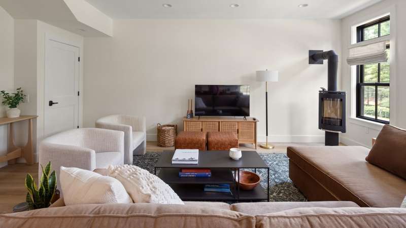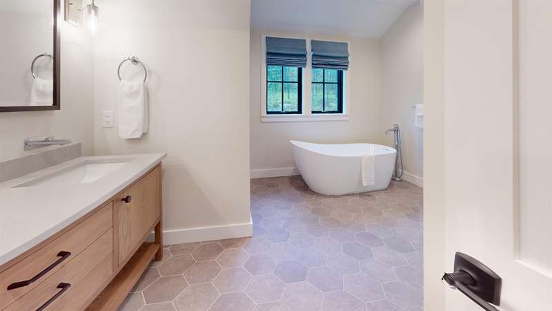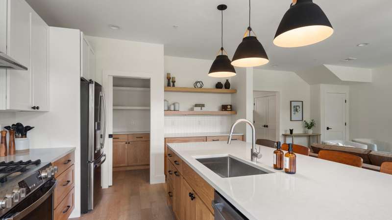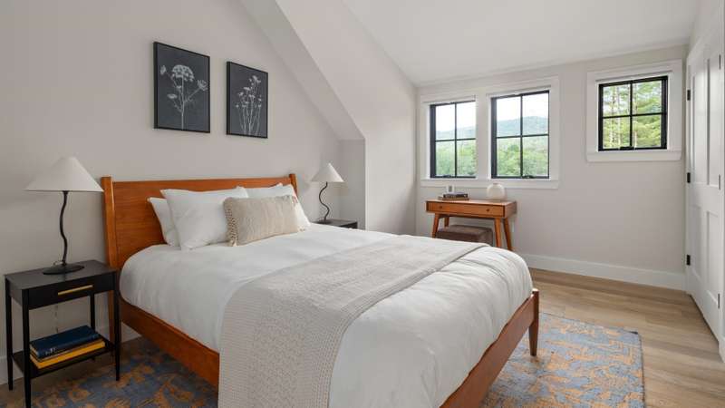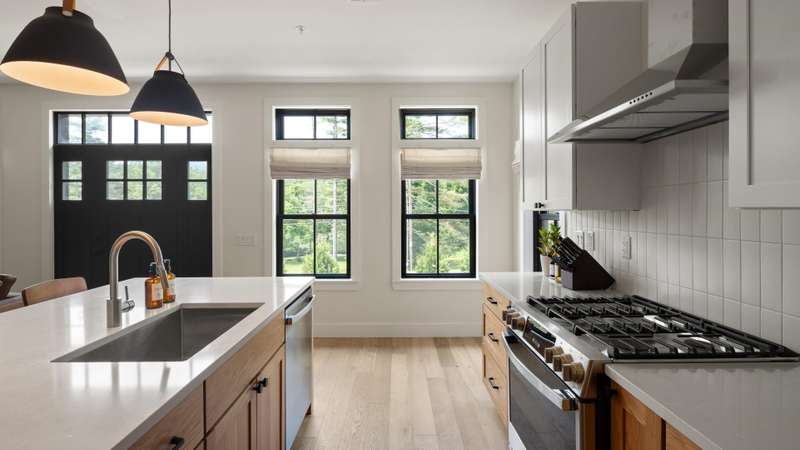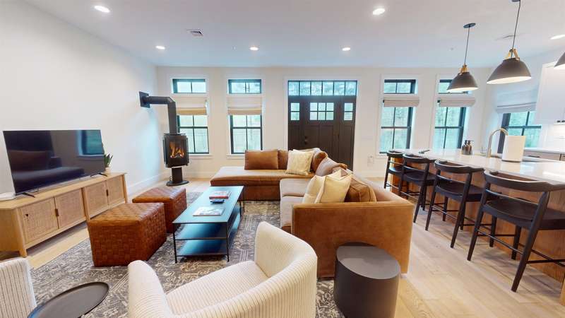 Minutes to Stowe Mountain Resort. 4 bedrooms 3 ½ baths 3,390 sq including a one car garage and additional ski sharpening/storage room. Fully furnished for own use or short term rentals. Middle unit looks west over the West Branch and Rec Path to Trapp Hill ridgeline and up the Mountain Road to the slopes at Stowe Mountain Resort. Features include high ceilings throughout, central AC, heat pump with propane back up. The open kitchen-dining creates a great entertaining space. Walk-in pantry. Living room has Jotul gas fireplace. The primary suite features 10 cathedral ceilings a soaking tub and shower. Lower level features high ceilings, 3/4 bath, 4th bedroom and large family room. Vermont Vernacular design of The Landing, by renown architect Sam Scofield, is in keeping with the original Stowe-A- Way antique farm house dating back to the 1800s. Stowe Mountain Resort 4.4 miles, Stowe Village 3.2 miles, BOS 3:15, BTV 45 minutes. On Mountain Shuttle bus route for easy access to