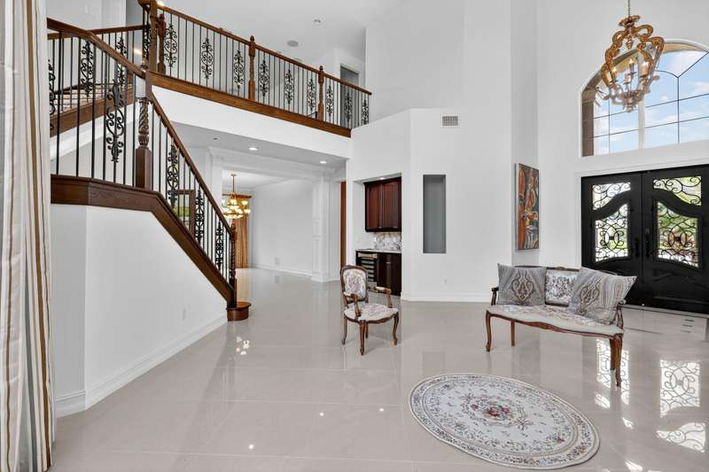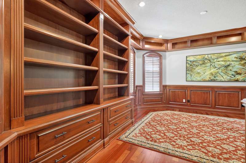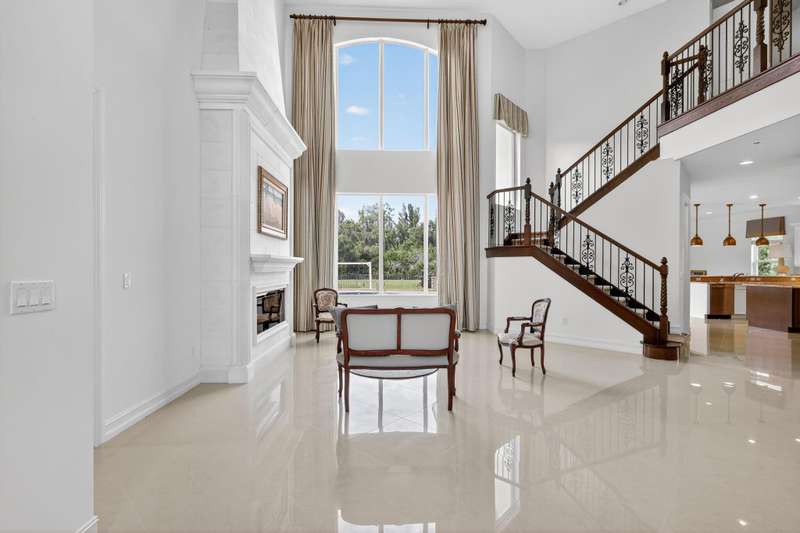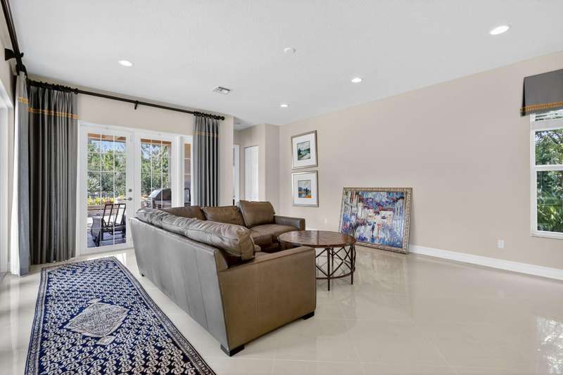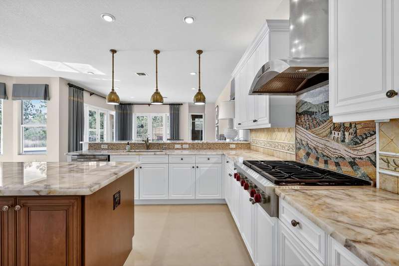This half acre cul-de-sac home is finished to an impeccable standard using extremely high-end materials. Luxury features such as custom built wood library, custom closet built ins, crown moldings, high end appliances and illuminated kitchen island. 2 primary bedrooms with spa like bathrooms. It strikes a perfect balance of luxury craftmanship and functional design, inviting unforgettable gatherings and serene family moments. From the dramatic foyer, wrought iron stair case and chef's kitchen to the tranquil master spa and resort- style outdoor spaces, every detail exudes sophistication and comfort. Indulge in a luxurious primary suite featuring a private sitting area, his/hers vanities & closets. This elegant home is surrounded on two sides by preserve. 500 gallon propane tank generator
