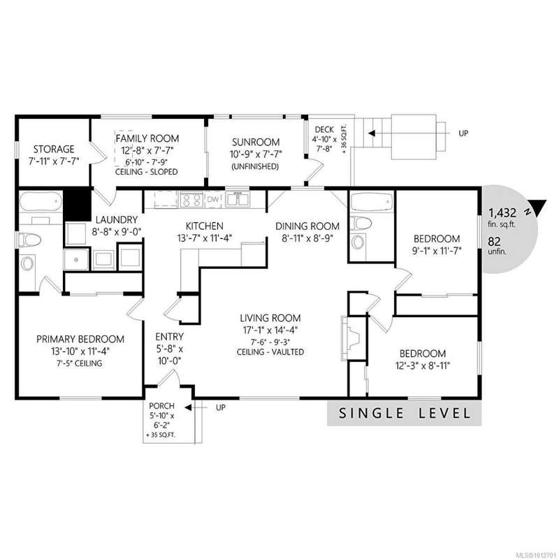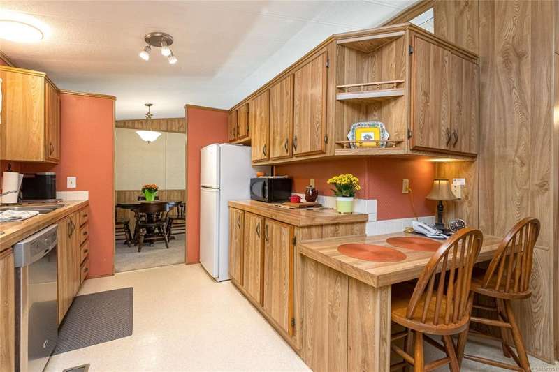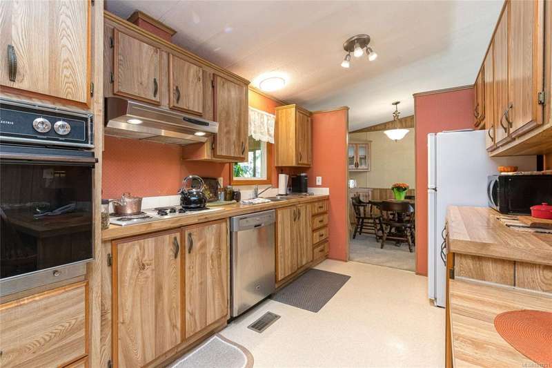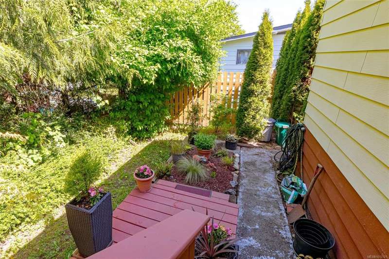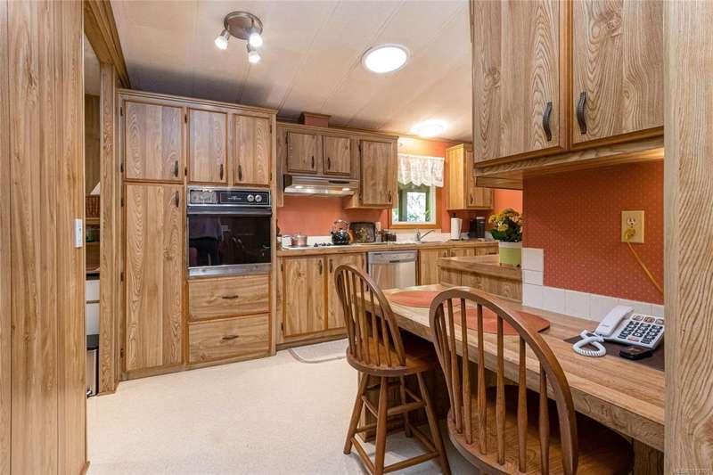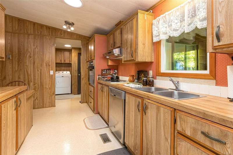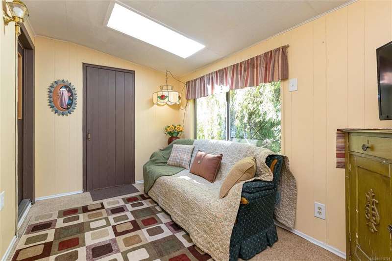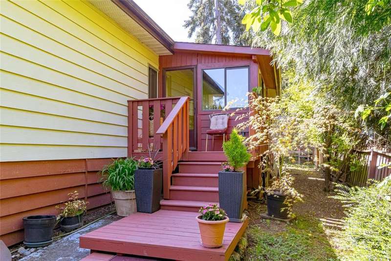 OPEN HOUSE SAT SEPT 27 (1 - 3PM) Tremendous opportunity to purchase a spacious 1432 sq. ft. three bedroom, two bathroom home at an affordable price! Excellent floor plan with separation of bedrooms, vaulted ceilings, large living room plus family room and a bright sunroom. Generous, well appointed kitchen opening to a spacious dining room. Located on a quiet cul-de-sac away from through roads, this home enjoys quiet privacy amid beautiful mature landscaping. All the heavy lifting has been done on this home: new roof, skylights and light pipes, new hot water tank, new washer and dryer and new light fixtures. This property is complete with a workshop and two off-street parking stalls. You will enjoy local access to K-12 schools, shopping and commuter routes, all within 2 kms, making this a family friendly option.