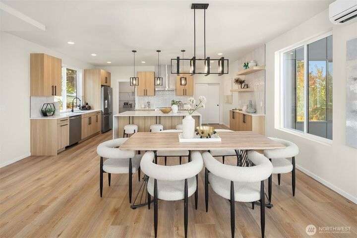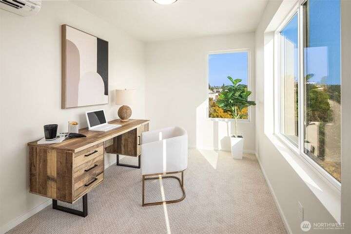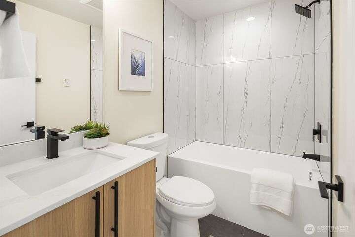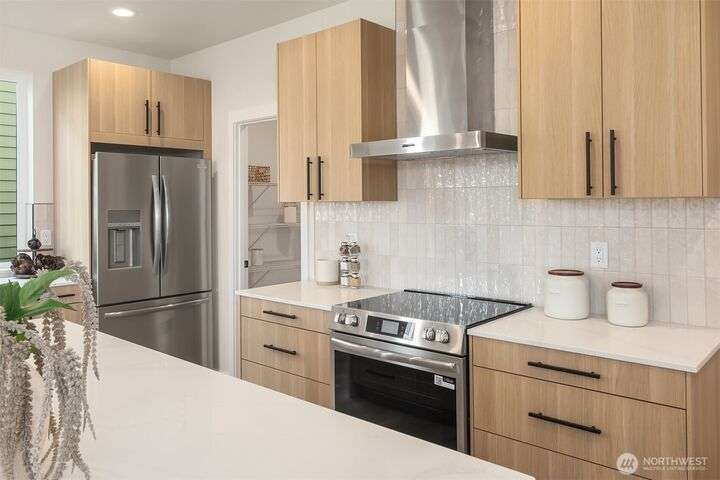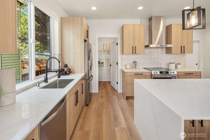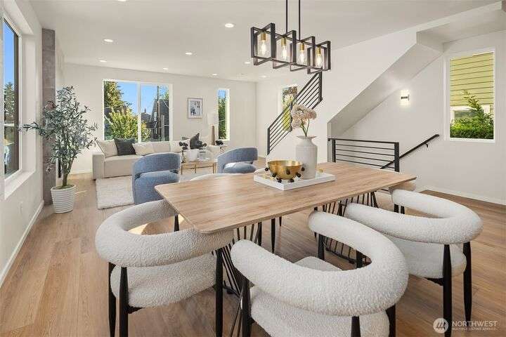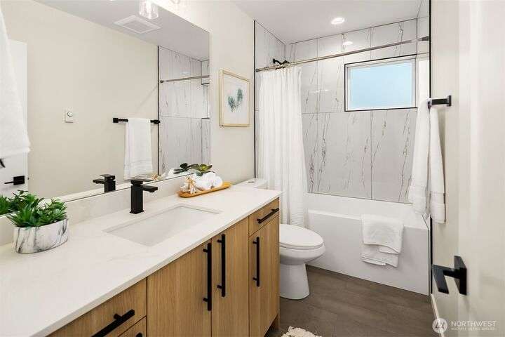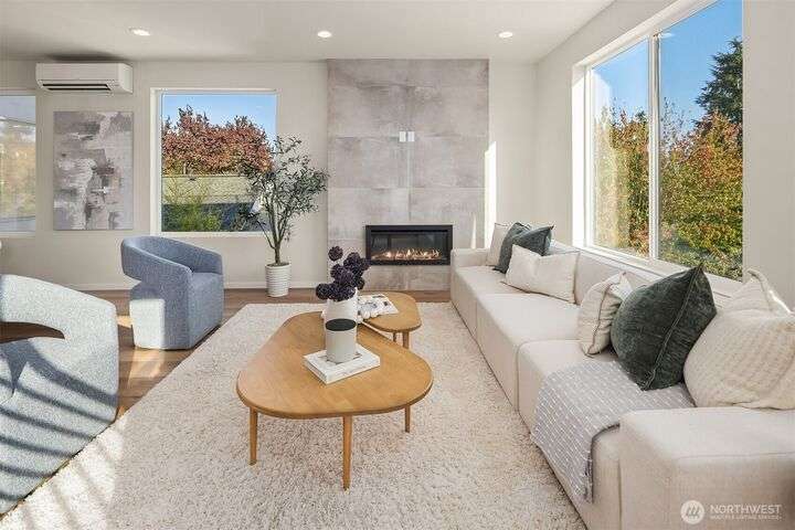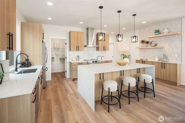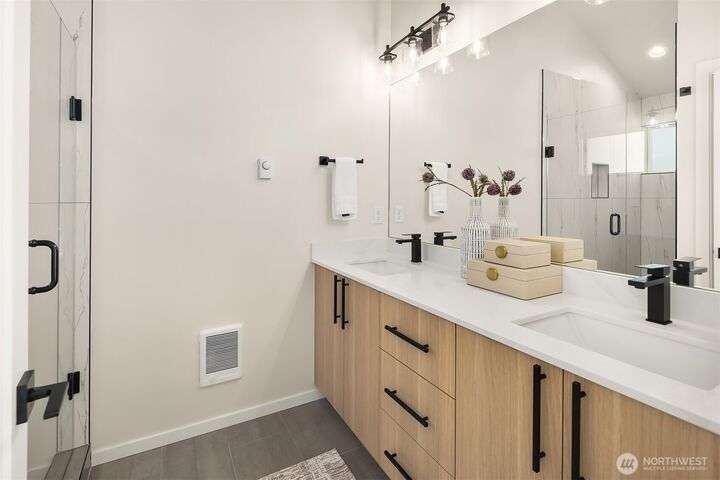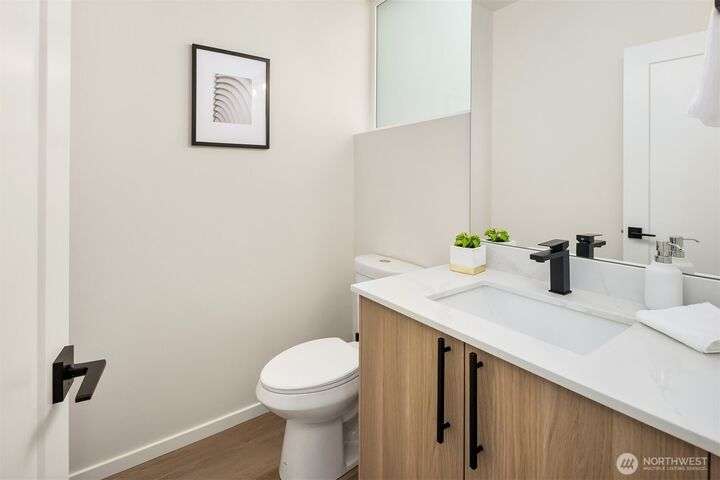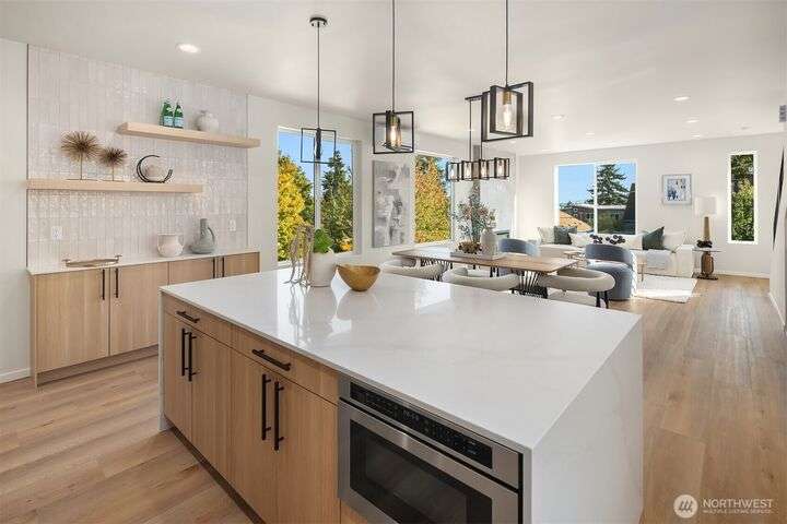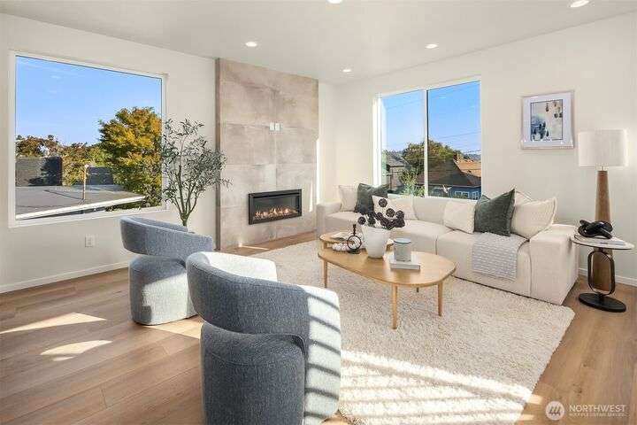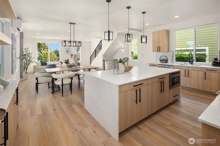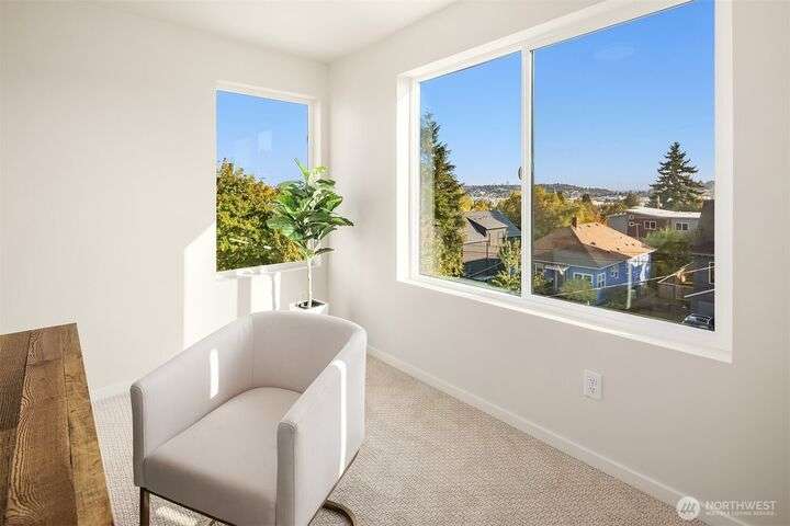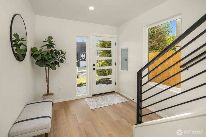 Local builder, New City Homes, presents this striking new construction house in the heart of Ballard. A bright, open entryway welcomes you to the first floor which includes bedroom, full bath and bonus room. This flexible floor plan creates space for use as nanny suite, guest quarters, home gym or office. Second level hosts sizable open-concept great room with unique touches including expansive double waterfall island, fireplace, walk in pantry, and powder room. Upstairs, find your primary suite, two additional bedrooms and full bath. Roof deck provides stunning territorial views. Recreation and culture abound with extensive dining options, parks & trails nearby! Complete with EV-ready garage.