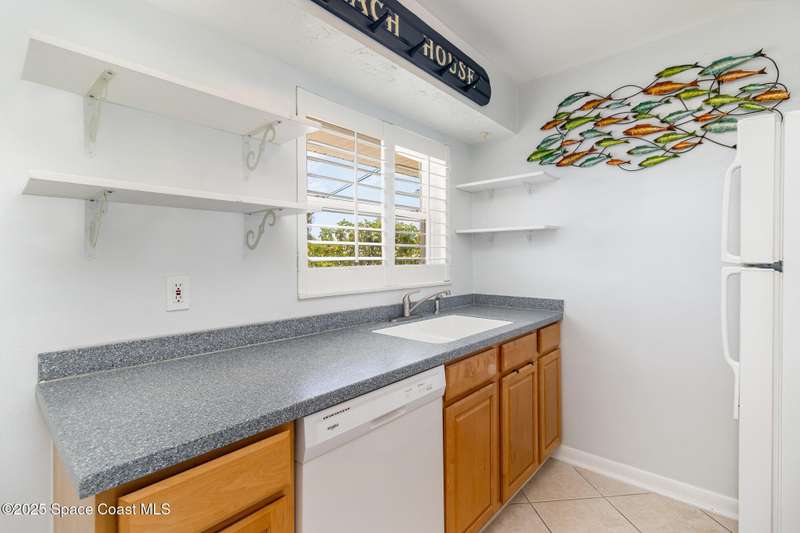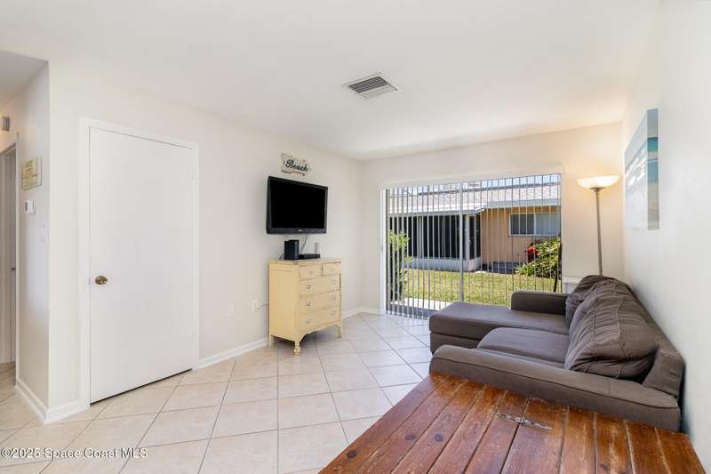 A condo in the perfect location. This ground level unit is desirable to any full-time or part-time resident or investor. You have ample square footage with a full kitchen, a true dedicated bedroom, tiled floors throughout and in-unit laundry. A short stroll from the soft sand and great waves of Cocoa Beach you have a outdoor shower with hot and cold water right off your entry. No worrying about bring the beach home with you. An older but strong running AC and gas water heater helps keeps your utility bills low which is nice for anyone on a fixed budget. The complex is well maintained with a newer roof and freshly painted exterior. Your dedicated parking spot is labeled right outside your front door for added convenience.