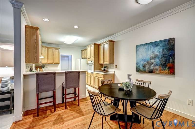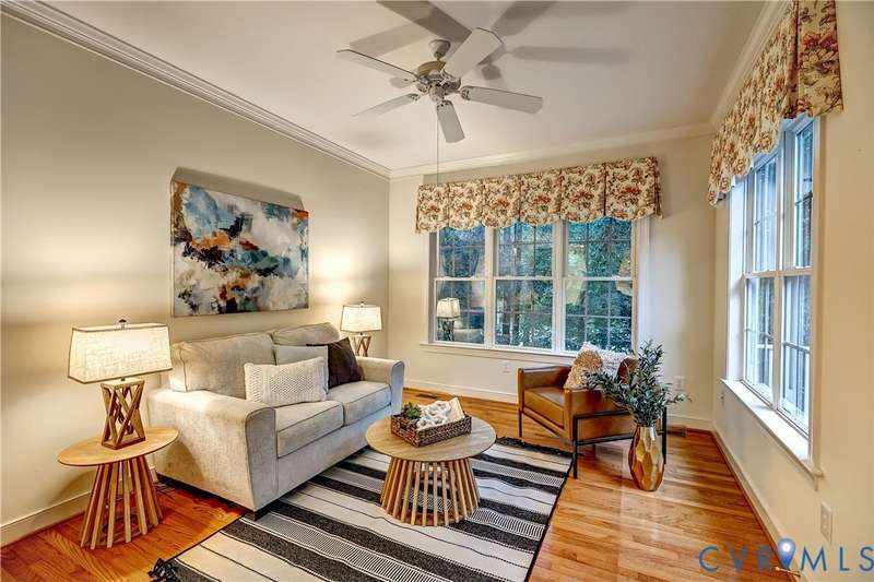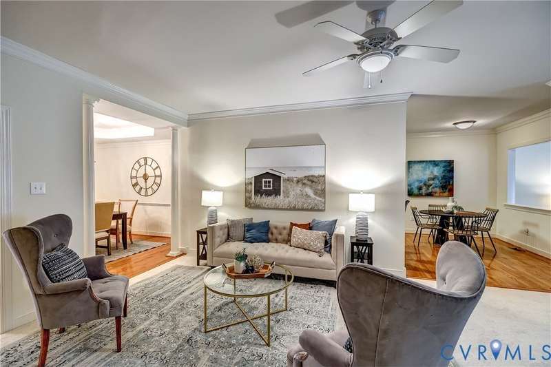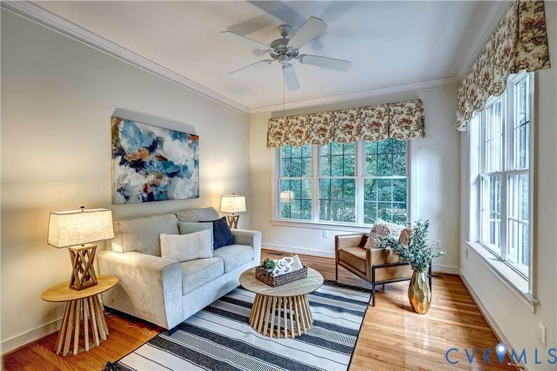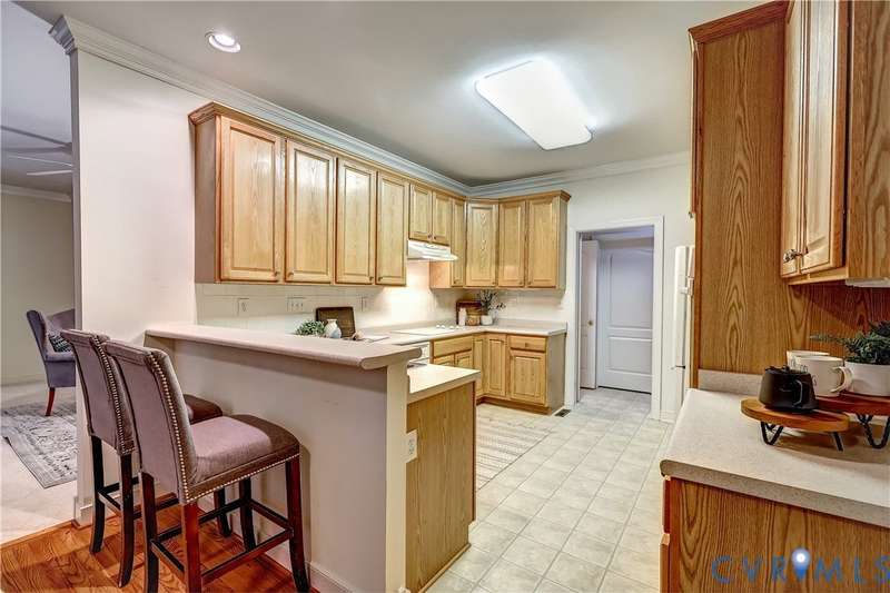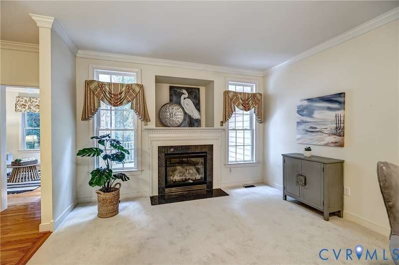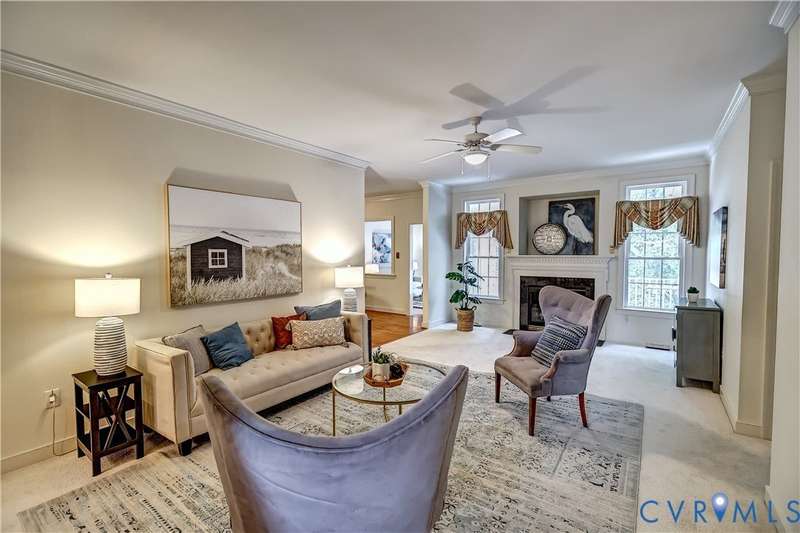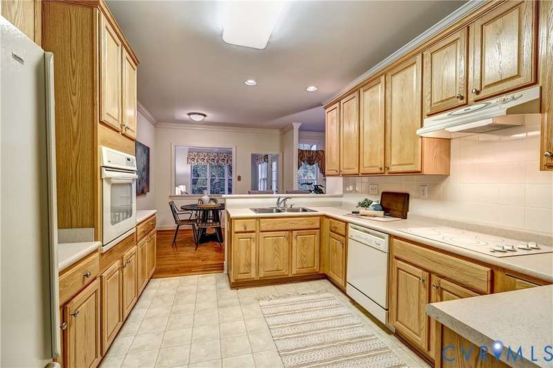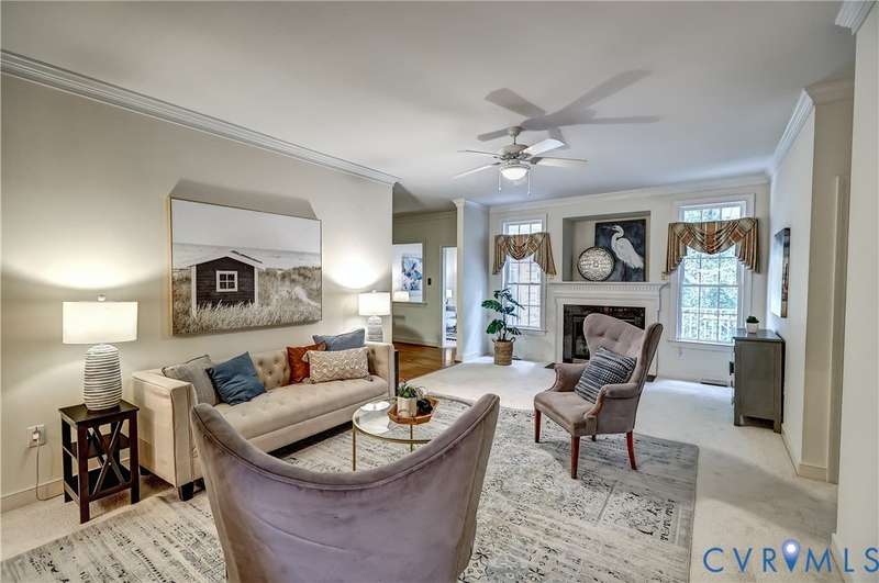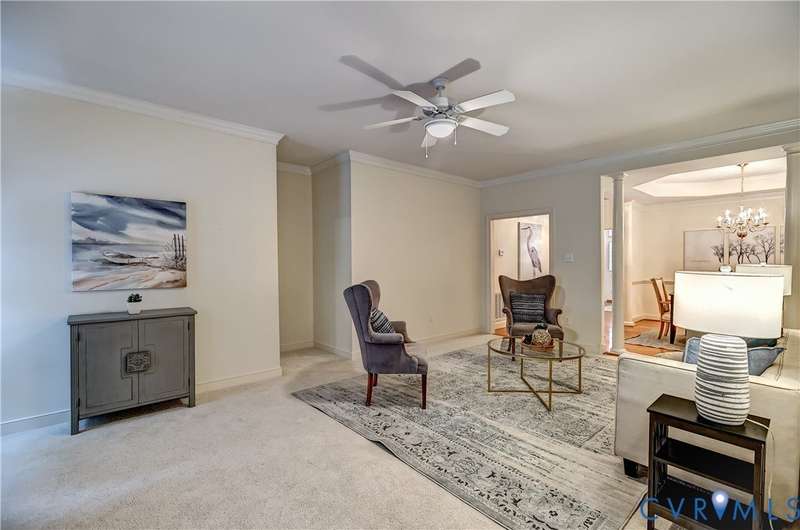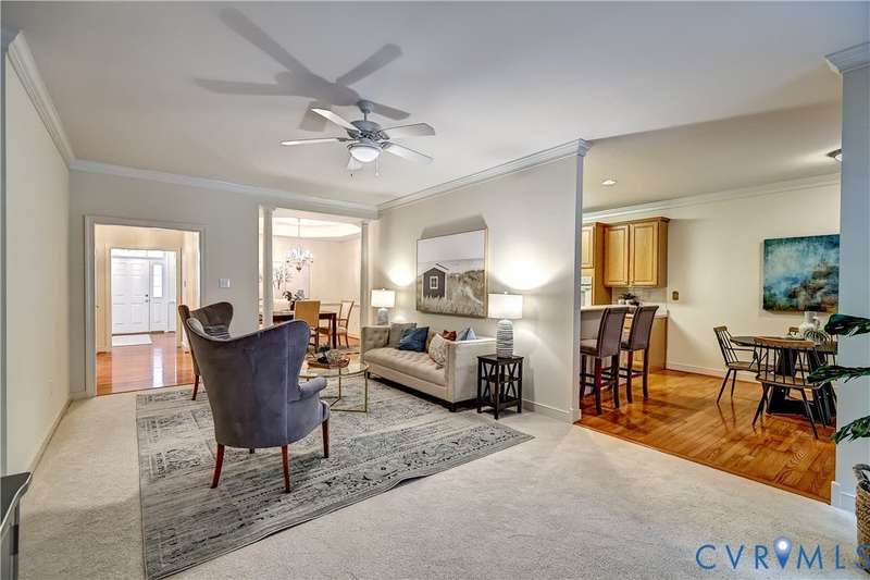 ""You better seize this rare opportunity to own over 2000 square feet of ONE LEVEL LIVING *in premier Glen Allen *on the Crossings Golf Course-- all in the low $400's! Yard and most exterior maintenance is handled by the HOA, so you'll have the actual time to enjoy more of whatever you like to do...if that's golf, all the better! Inside, you'll love the spacious, open-concept layout with soaring 9-foot ceilings that create an airy feel throughout the large living and dining areas. Combining the work and eating area, the kitchen measures over 20' and brags a ton of Oak, raised panel, 42"""" cabinets, a clean tile splash, and bright appliances. A tray ceiling, heavy moldings and hardwood floor highlight the Dining Room. The Family Room is absolutely MASSIVE and features a gas fireplace and space to comfortably enjoy the big game, entertaining, and just day to day living all equally well! Off the kitchen, enveloped in windows, the Florida Room provides a wonderful area to relax, read, and think the big thoughts! The sumptuous Primary Suite offers a retreat of grand proportion! Wait til you feel its sheer size! Two additional bedrooms offer flexibility for guests or home office needs and just outside them off the foyer, there's access to a huge walk-up attic for a chunk of your storage solutions (but there's more). Enjoy peace of mind with updates including a newer roof and water heater. Other notable features include low-maintenance brick and vinyl siding, full yard irrigation system and 2-car garage! And from your cute deck, you can overlook the Serene backyard that buffers the Crossing Golf Course. Oh my gosh, don't forget to walk down the stairs and see your 24' ground level workshop! At the minimum you can use it for 'Class A' storage if you don't want the work space! It's just a 2 minute walk from my favorite, under the radar lodging, Virginia Crossings Hotel & Conference Center (just in case guests overwhelm) & of course all the conveniences of the VA Center area are just minutes away.""