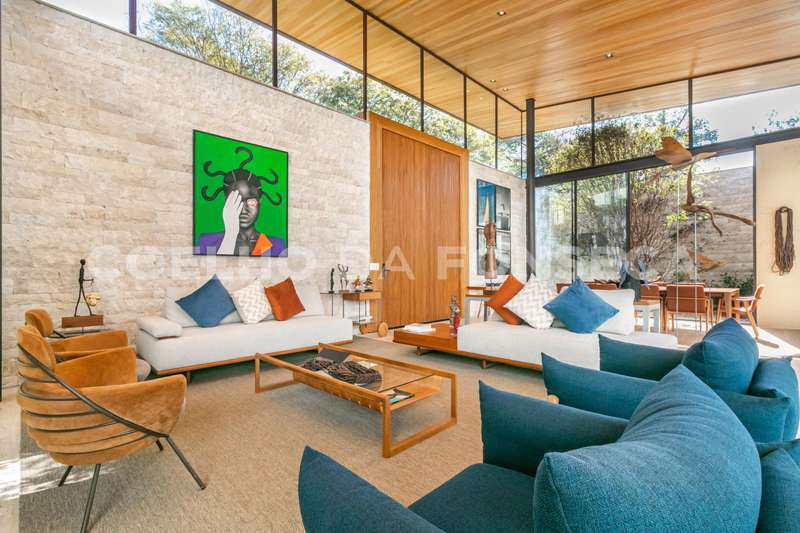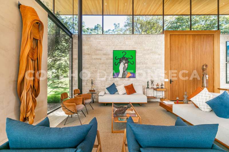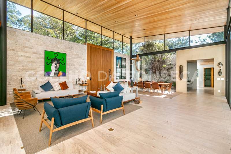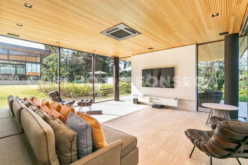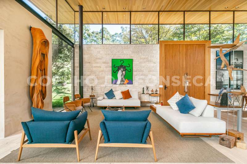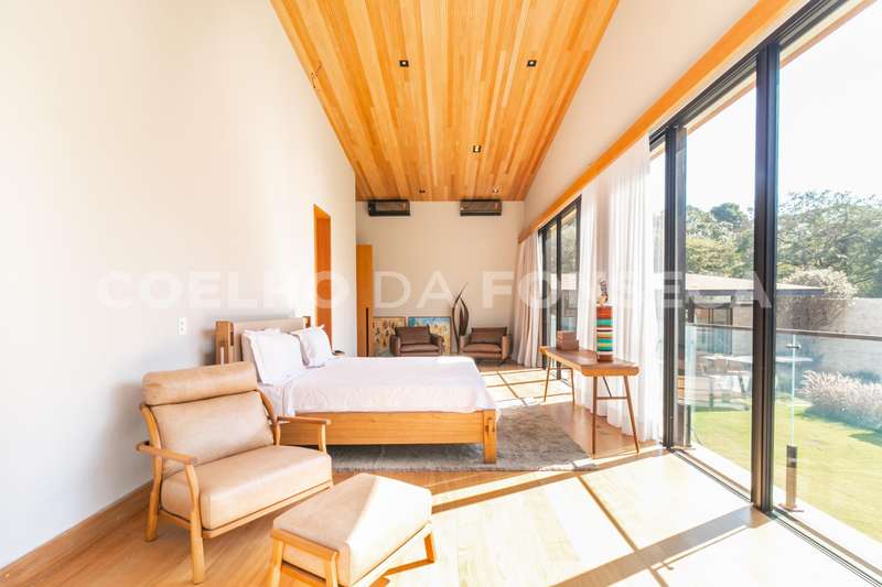 Exuberante residência em um dos condomínios de campo mais luxuosos do país, a apenas uma hora de São Paulo, com total infraestrutura. Possui 6 suítes, adega, 2 escritórios, academia, área gourmet, piscina e SPA. Projeto de Caio Bandeira, com acabamento de altíssimo padrão e detalhes impressionantes.