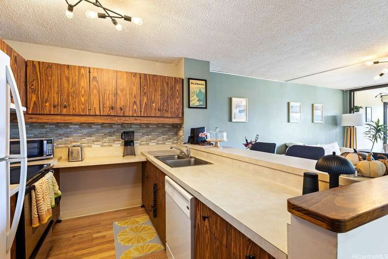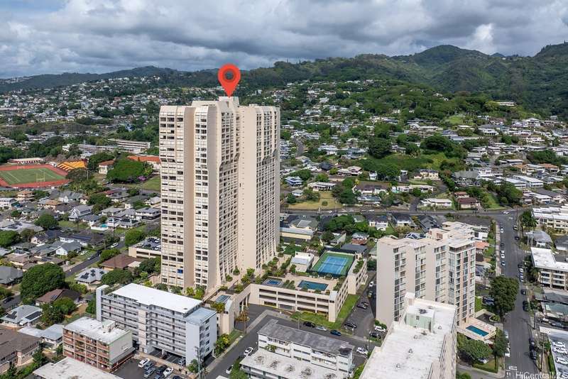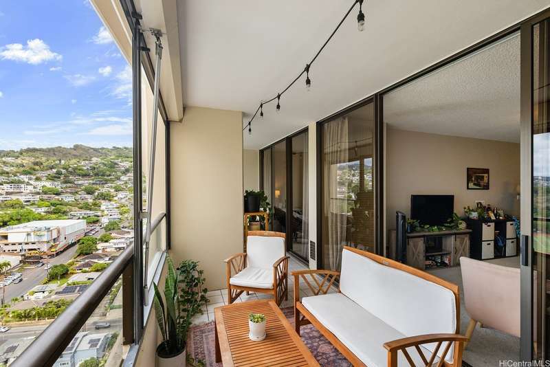Looking for space and convenience? Excellent indoor/outdoor living with large 175 sf covered lanai with Punchbowl, city and lush mountain views. Kitchen offers tons of storage and counter space for the chef. Open bar that runs the length of the kitchen opens directly to the dining area and living room to enhance entertaining. Improvements include new light fixtures, new paint, audio fire alarm system, refurbished AC unit and oak hardwood floors. Mott Smith has under gone massive improvements to the amenity deck, pool, tennis court, whirlpool, gazebos and grills, garage & more. Total square footage of this unit offer excellent value!