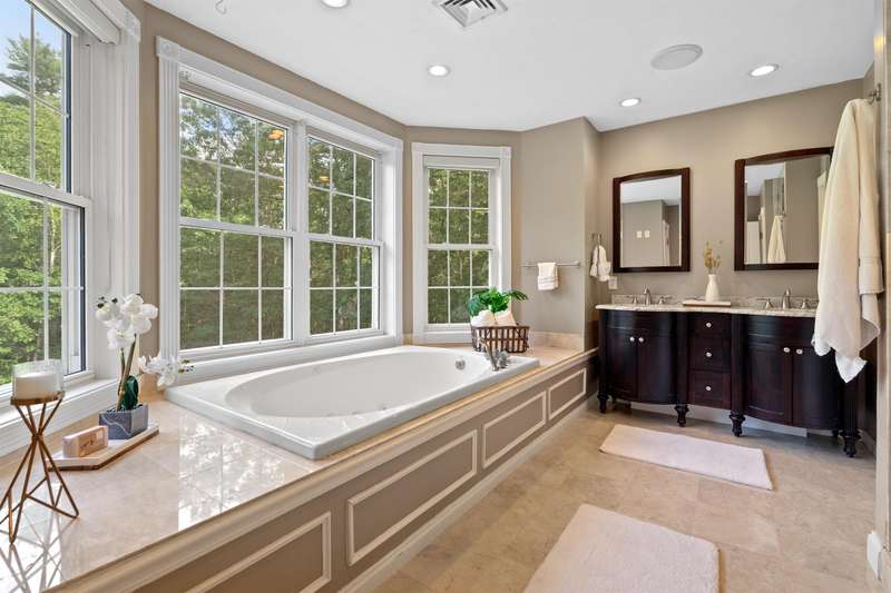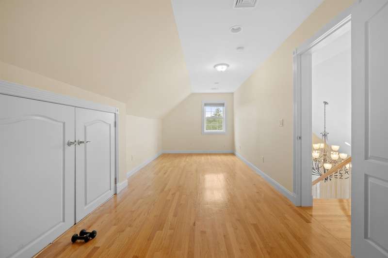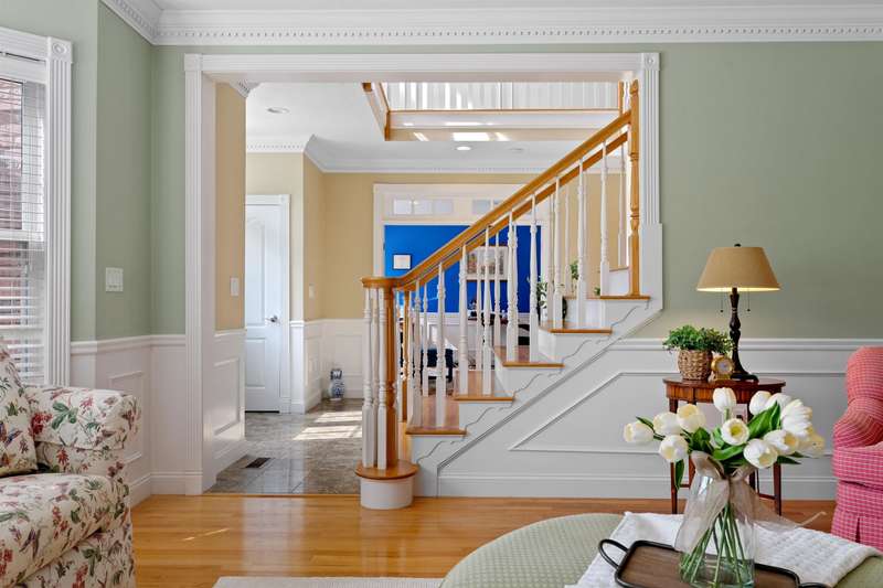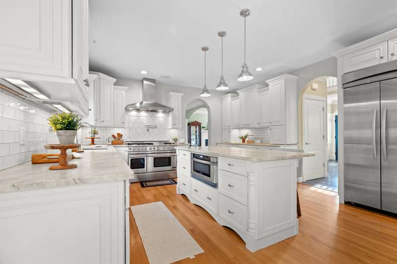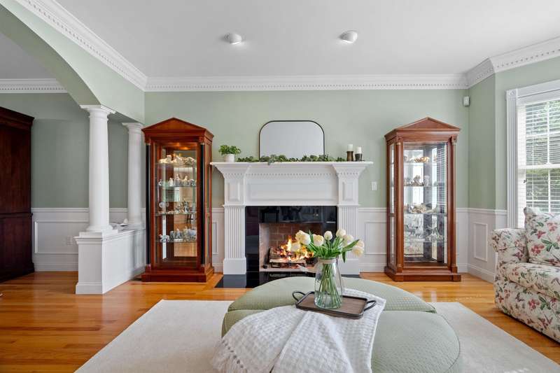 SOPHISTICATED ELEGANCE | Welcome to this stunning brick-front Colonial, a true masterpiece of both elegance and functionality. The heart of the home is the recently updated kitchen, featuring a large island, abundant cabinetry, and high-end appliances—perfect for both daily living and entertaining. Adjacent to the kitchen is a spacious, oversized family room, the perfect place for gatherings and relaxation, complete with plenty of natural light and an inviting atmosphere. The floor plan boasts four generously sized bedrooms, including a luxurious primary suite complete with a cozy fireplace and ample closet space. The main level also offers a formal living room with its own fireplace, a large dining room ideal for hosting guests, and a private office perfect for remote work. Upstairs, you'll find oversized rooms offering comfort and style. The finished walk-up third floor provides a full bath and endless possibilities for additional living space—whether as a guest suite, media room, or playroom. The beauty of this home extends outdoors with a beautifully landscaped, private lot, complete with a charming patio and serene koi pond, offering a peaceful retreat for all seasons. Conveniently located to shopping, restaurants, and major commuter routes, this home feels like a private country retreat while still offering easy access to everything you need. This home combines timeless appeal with modern upgrades, making it the perfect place to call home.