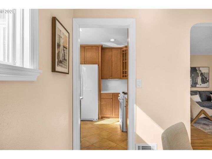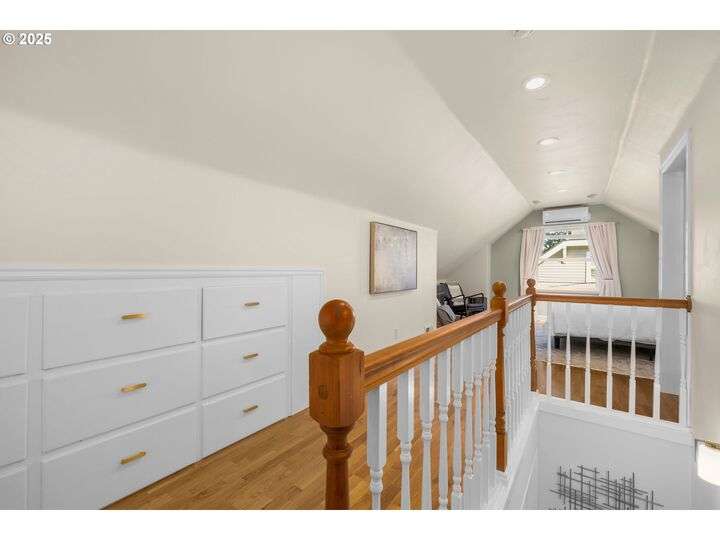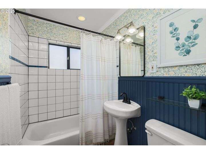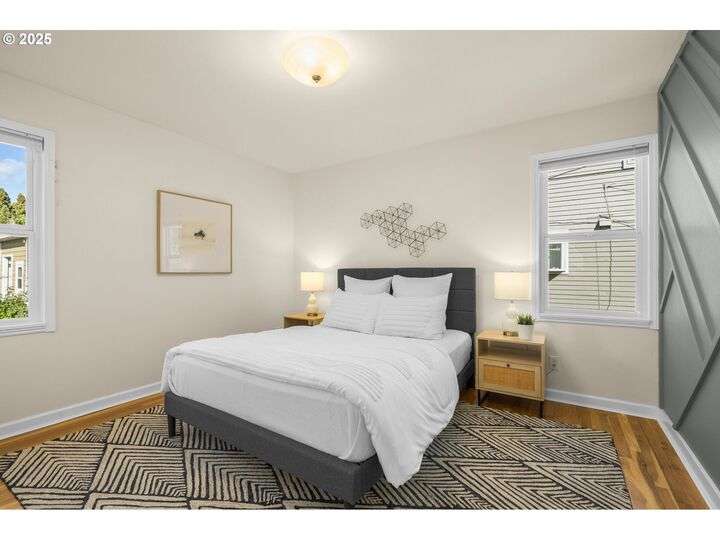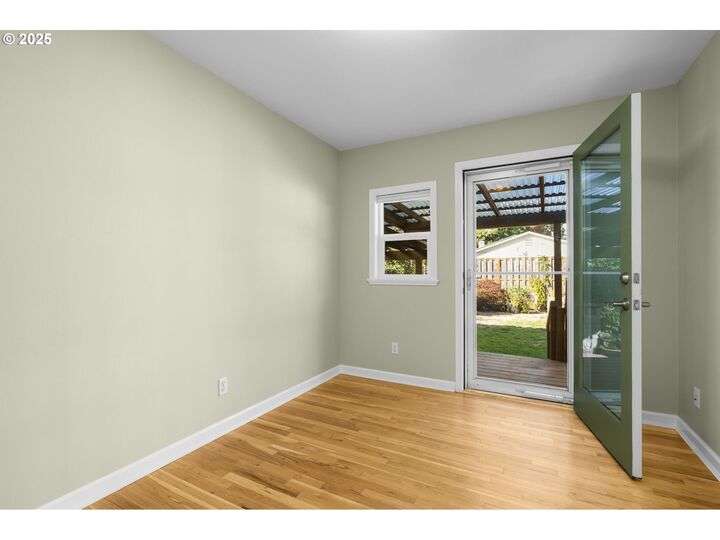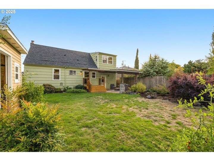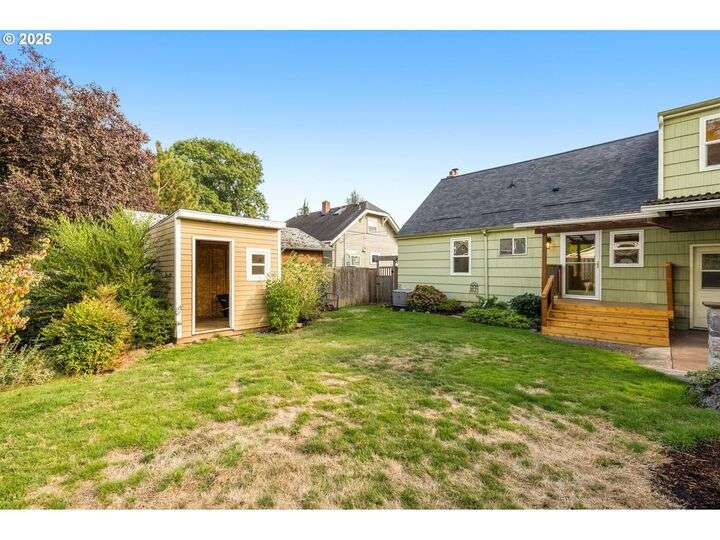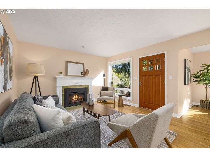 Light abounds in this bright Westmoreland charmer! Many original details, including hardwood floors throughout home. Living room features beautiful gas fireplace with new insert (2025), remote control and original tile surround. Separate dining room. Two bedrooms and updated bathroom on main level. Beautiful primary retreat upstairs includes bright bathroom with double vanity, walk-in closet and separate office or nursery. Recent updates include new roof (2024), new deck (2023), new dishwasher and Quartz kitchen countertops (2025), new dryer (2023). Updated double-paned vinyl windows throughout. Unfinished basement offers loads of potential and includes a laundry area with sink. Single attached garage and off-street parking. Beautiful, fully-fenced backyard with deck, covered patio and gardening shed. Very desirable neighborhood. Walk to Westmoreland shops and restaurants. Less than four blocks to Westmoreland Park, Less than a mile to Eastmoreland Golf Club, Sellwood Community Center and Johnson Creek Park. Close to bus and MAX lines. [Home Energy Score = 6. HES Report at https://rpt.greenbuildingregistry.com/hes/OR10189272]