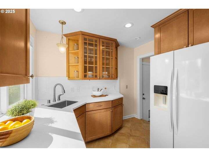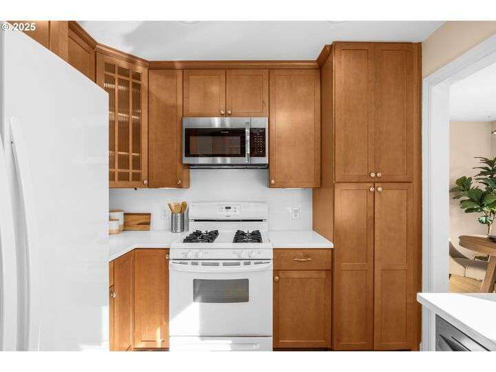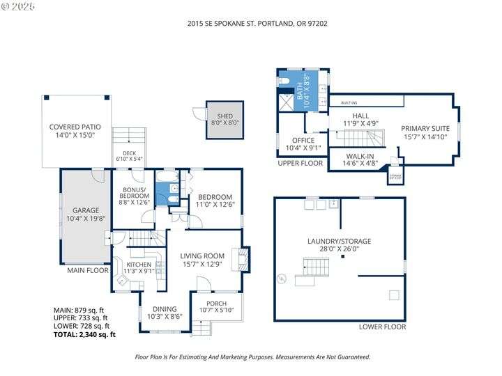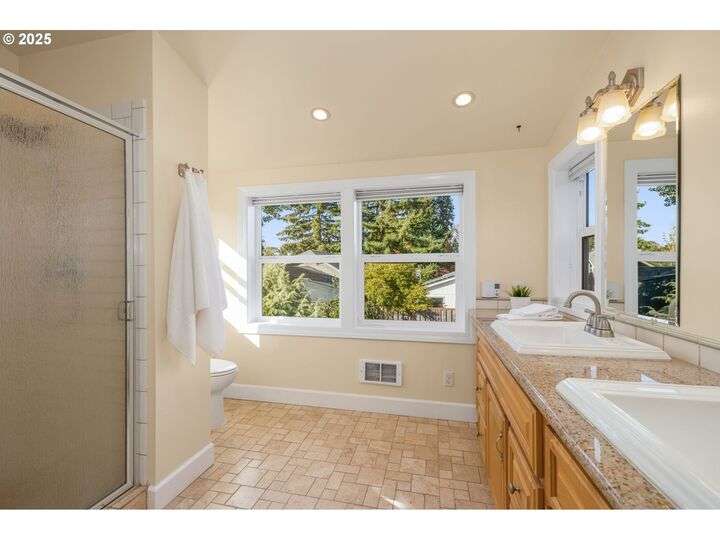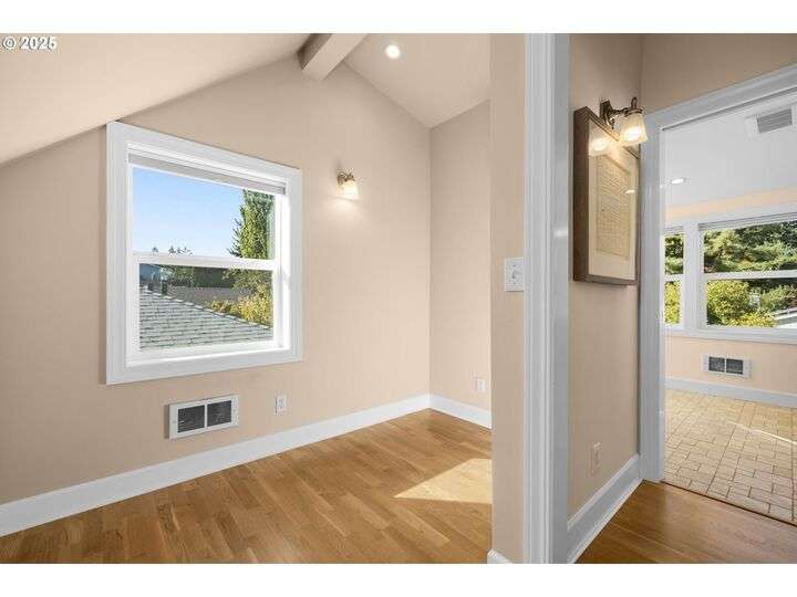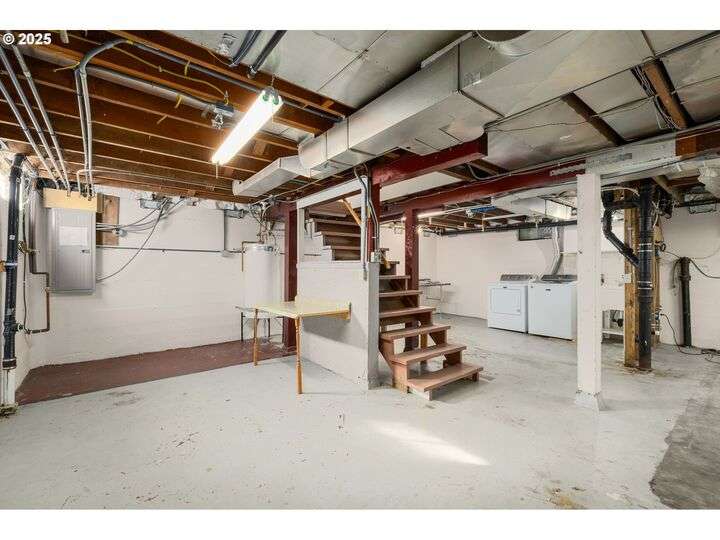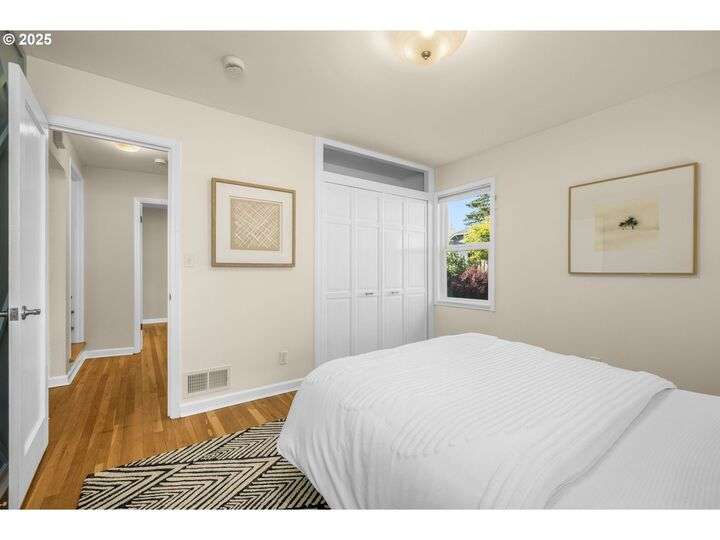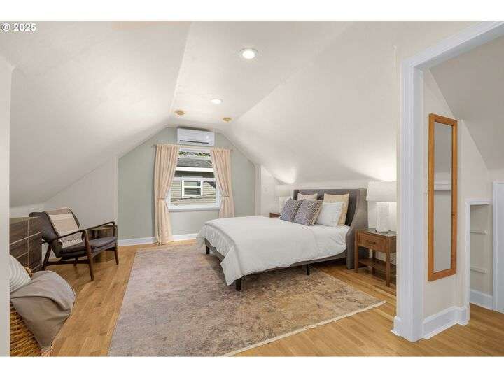 Light abounds in this bright Westmoreland charmer! Many original details, including hardwood floors throughout home. Living room features beautiful gas fireplace with new insert (2025), remote control and original tile surround. Separate dining room. Two bedrooms and updated bathroom on main level. Beautiful primary retreat upstairs includes bright bathroom with double vanity, walk-in closet and separate office or nursery. Recent updates include new roof (2024), new deck (2023), new dishwasher and Quartz kitchen countertops (2025), new dryer (2023). Updated double-paned vinyl windows throughout. Unfinished basement offers loads of potential and includes a laundry area with sink. Single attached garage and off-street parking. Beautiful, fully-fenced backyard with deck, covered patio and gardening shed. Very desirable neighborhood. Walk to Westmoreland shops and restaurants. Less than four blocks to Westmoreland Park, Less than a mile to Eastmoreland Golf Club, Sellwood Community Center and Johnson Creek Park. Close to bus and MAX lines. [Home Energy Score = 6. HES Report at https://rpt.greenbuildingregistry.com/hes/OR10189272]