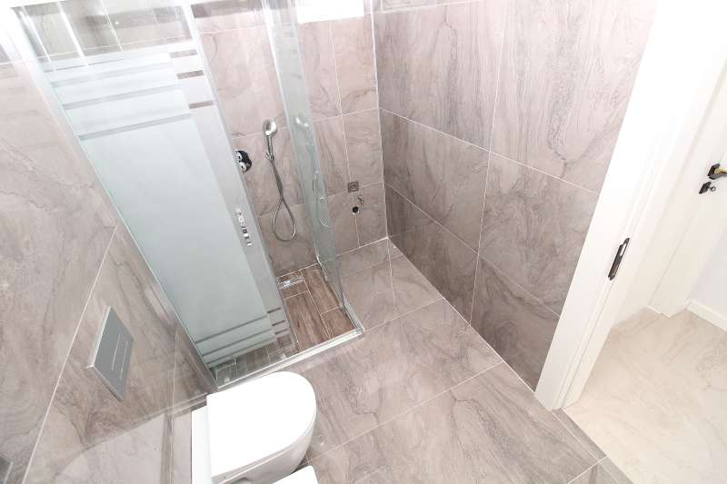 The 2-bedroom apartments include a living room, an open-plan kitchen, a bathroom, and optional terraces of either 20 or 60 m². These brand-new apartments come equipped with a built-in kitchen set, coat closet, kitchen cabinetry, underfloor heating system, high-quality laminate, and wet area flooring.