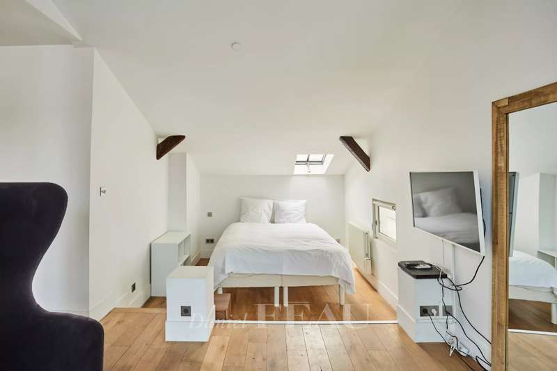 This meticulously renovated 31 sqm studio apartment is on the 7th and top floor of a luxurious early 20th century building in the heart of Saint Germain des Prés. Bathed in sunshine and enjoying an open view over the rooftops, it comprises a living room, a fitted and equipped kitchen, a bedroom, and a shower room/wc. The building is equipped with a lift accessing up to the 6th floor.
