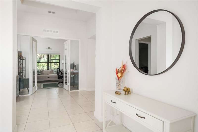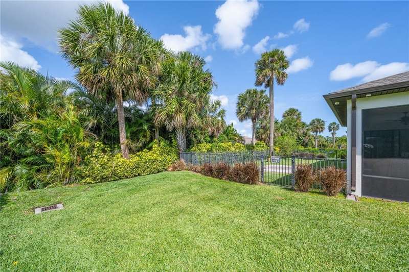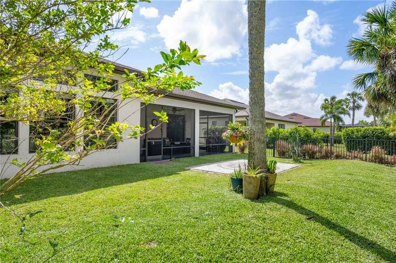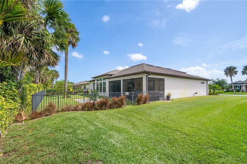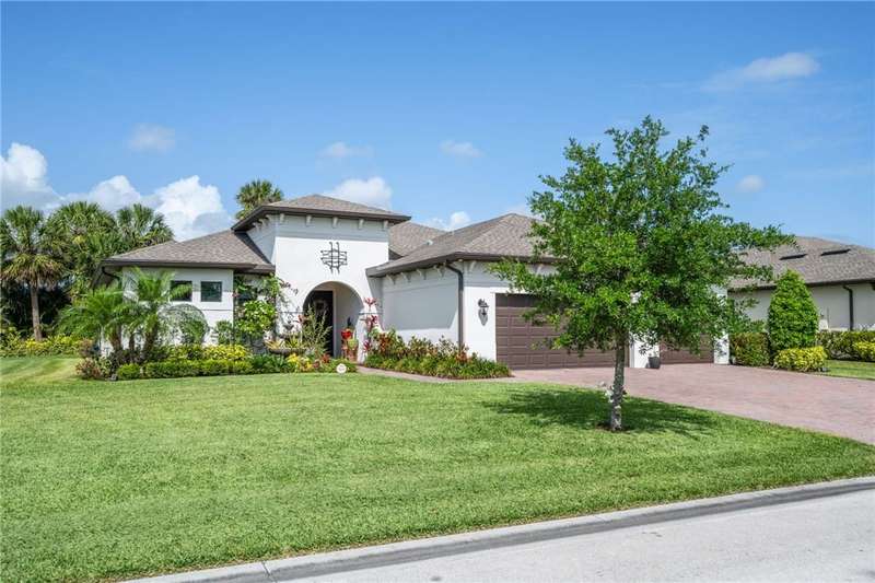 2021 contemporary build in the beautifully maintained gated community of Arcadia! Boasting over 2800 sqft, this 3bd/3.5ba + den/flex room home is filled with upgrades including cathedral ceilings, 3 car garage w/ epoxy flooring + EV Charger, unique accent wall, open kitchen w/ large center island, powder room for guests, + screened porch. Move-in ready, split floor-plan + room for a pool! Great location close to shopping, beaches and all things Vero! Sizes are approx/subj to error.