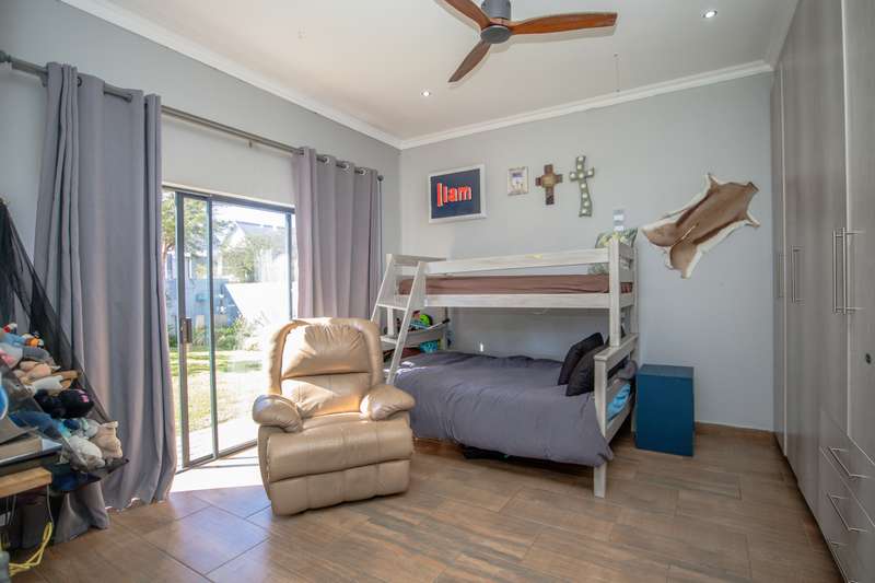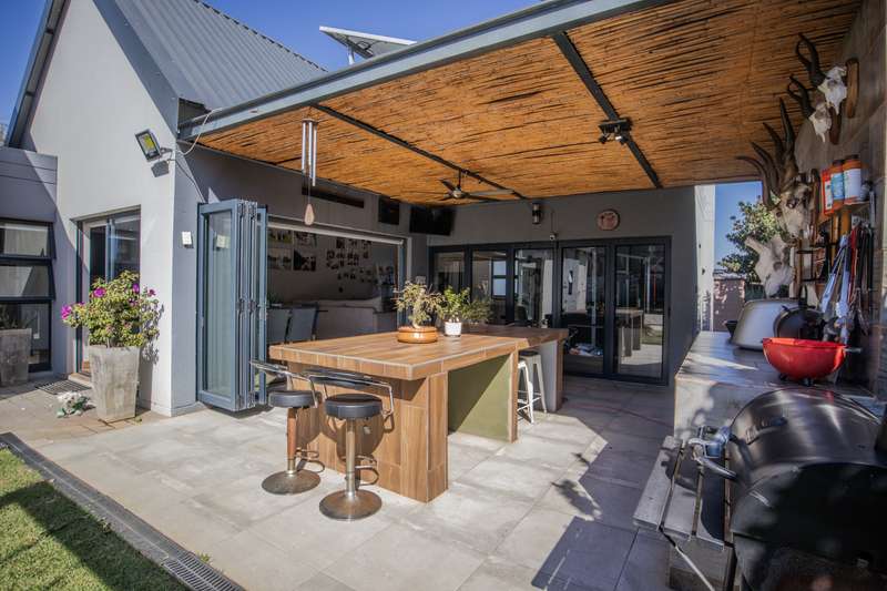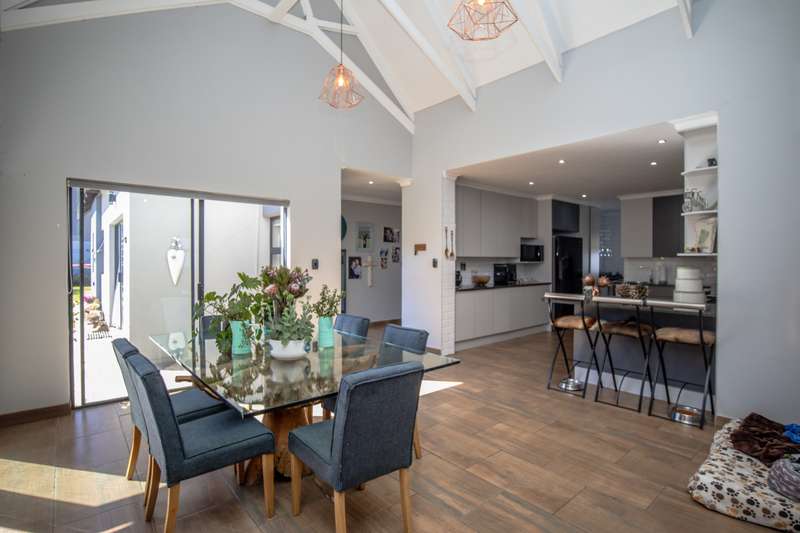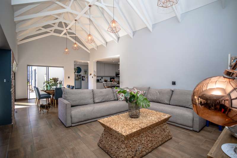 Welcome to a refined blend of style, comfort, and sustainability in this beautifully designed three-bedroom, two-bathroom home, ideally situated in the prestigious Leloko Estate. Offering a harmonious balance of modern features and eco-conscious innovation, this residence delivers the ultimate in secure estate living. At the heart of the home lies a bright and airy open-plan living space, enhanced by contemporary electric blinds and ceiling fans for optimal light control and comfort. Perfectly suited for both entertaining and everyday life, this versatile area adapts seamlessly to your needs. Built with sustainability in mind, the home is equipped with a high-capacity 20kW solar system, significantly cutting down on energy bills while supporting a greener lifestyle. It’s a smart investment in both the future and your finances. Outdoors, you’ll find a serene escape featuring a sparkling swimming pool and a well-established, easy-to-maintain garden. With an automated irrigation system in place, the garden stays vibrant with minimal effort—giving you more time to enjoy the tranquility of your surroundings. It’s an ideal setting for hosting guests or simply unwinding in nature. Located within the secure and scenic Leloko Estate, this property provides not only a safe and peaceful environment but also a strong sense of community and access to exclusive amenities. It’s more than just a home—it’s a sanctuary where comfort, elegance, and practicality come together. Don’t miss the opportunity to make this exceptional home your own. Schedule a private viewing today and discover the unique charm of life in Leloko Estate.