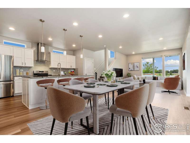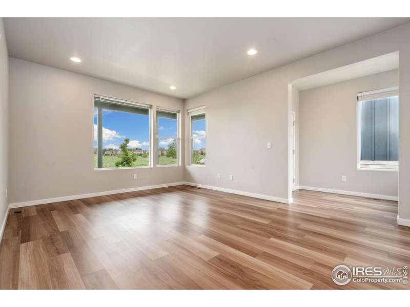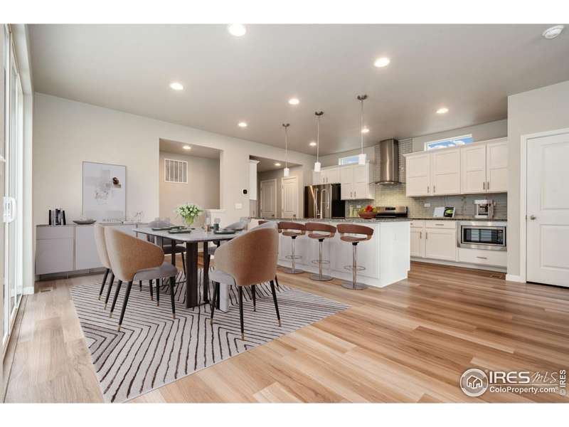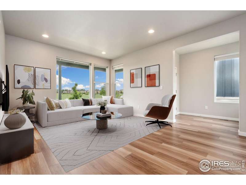 Welcome home to this beautifully maintained property in the sought-after Mosaic community. Located directly across from the community park, this home offers an ideal mix of comfort, style, and convenience. Inside, you'll find a spacious open-concept floor plan perfect for modern living, with large windows that frame stunning mountain views. The private patio and side yard provide a peaceful outdoor space for relaxing, gardening, or entertaining. The primary suite features a walk-in closet and a well-appointed bathroom with dual sinks-designed for both comfort and functionality. An oversized 2-car garage offers ample room for storage, hobbies, or extra gear, and a full unfinished basement offers opportunity for future expansion and customization. With easy access to green space, trails, and all that Fort Collins has to offer, this home truly has it all.