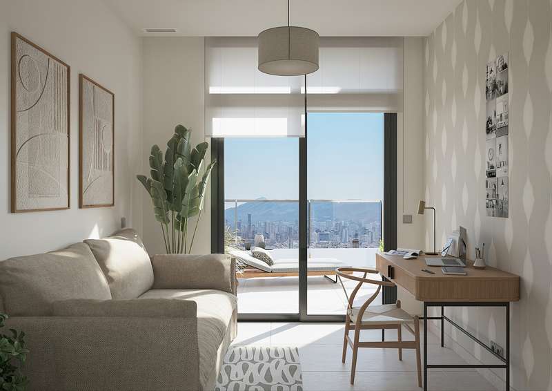 From the apartments for sale in Benidorm Alicante: Playa de Poniente beach is just 0.5 km away, supermarkets at 0.7 km, golf courses at 5.5 km, Villajoyosa town at 12 km, Altea at 14 km, Terra Mítica theme park at 15 km, Alicante city at 42 km, Alicante Airport at 54 km, and Valencia Airport at 148 km.
