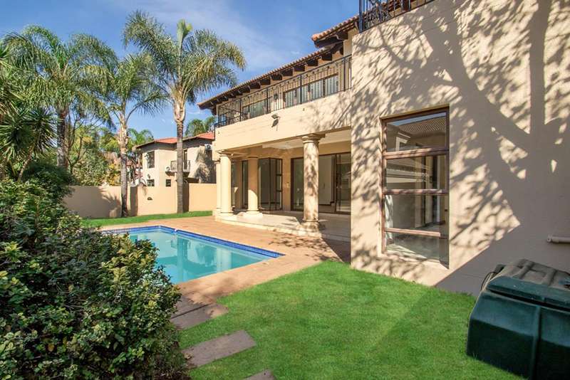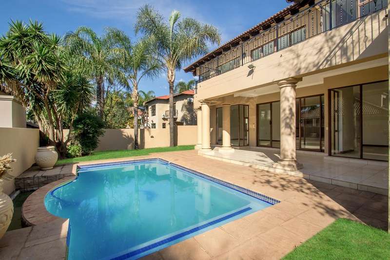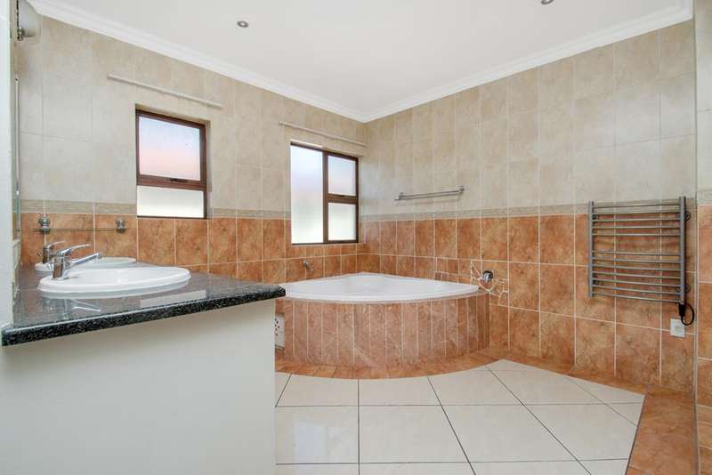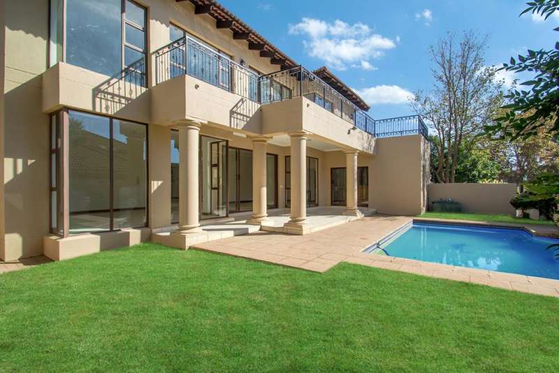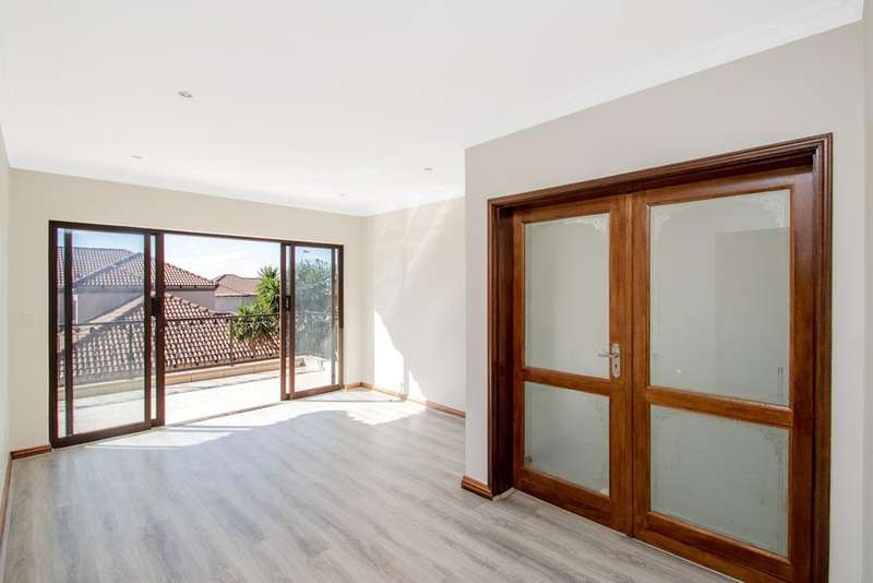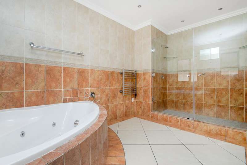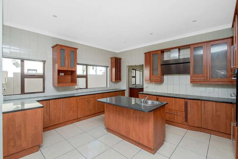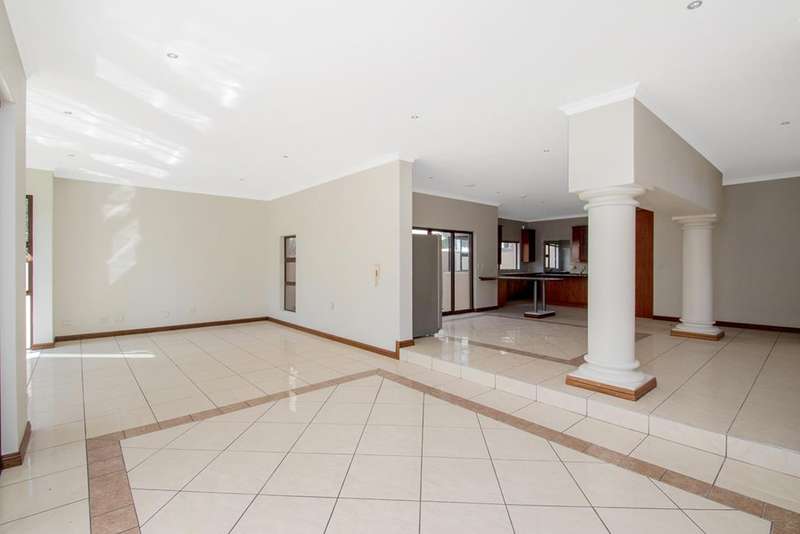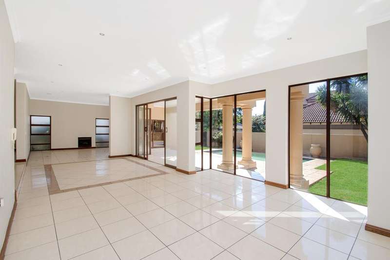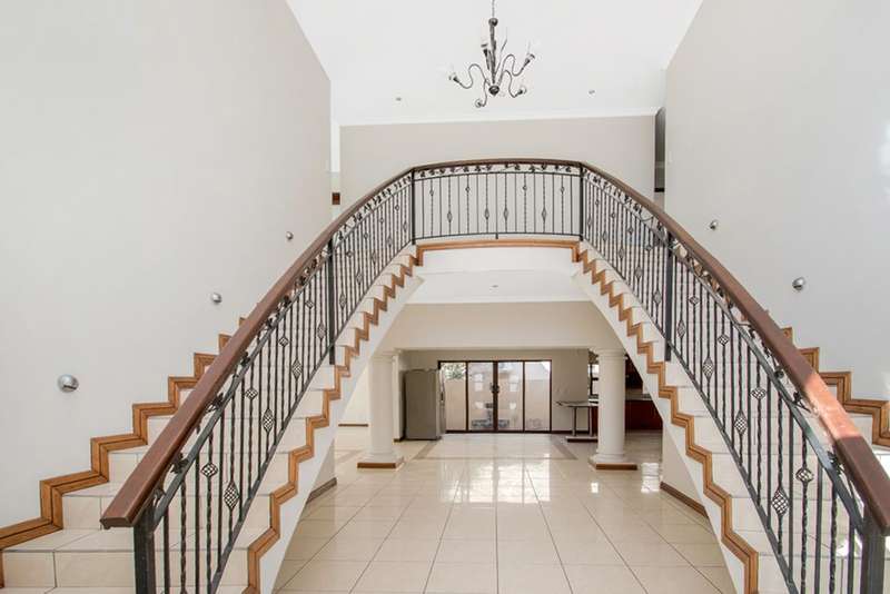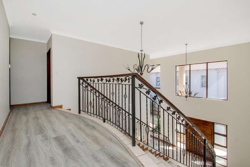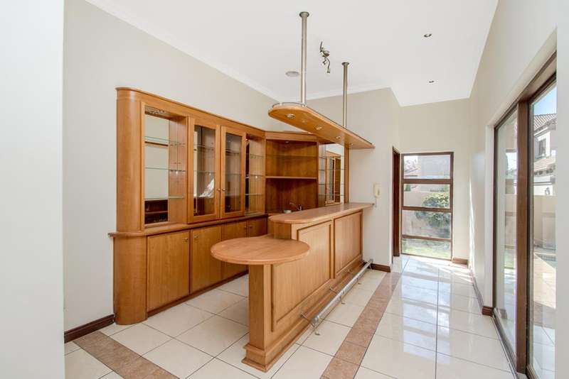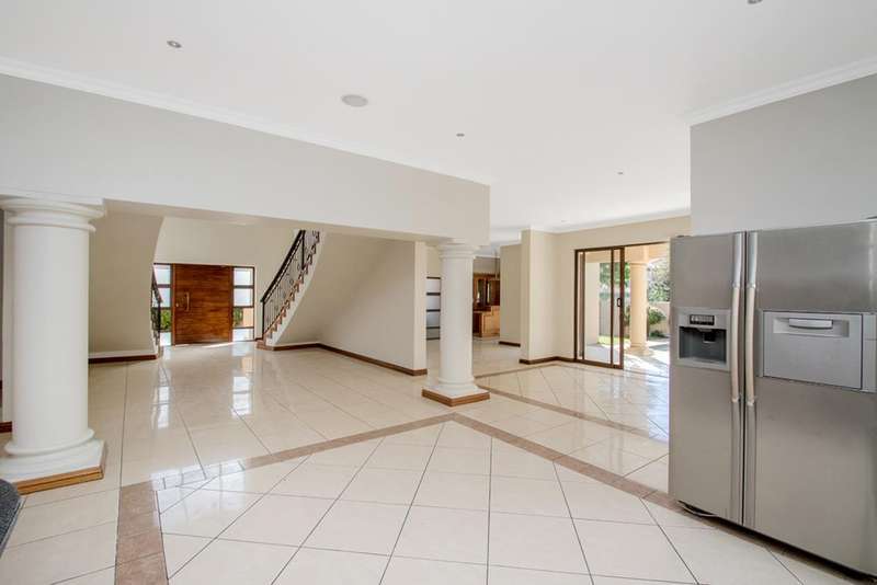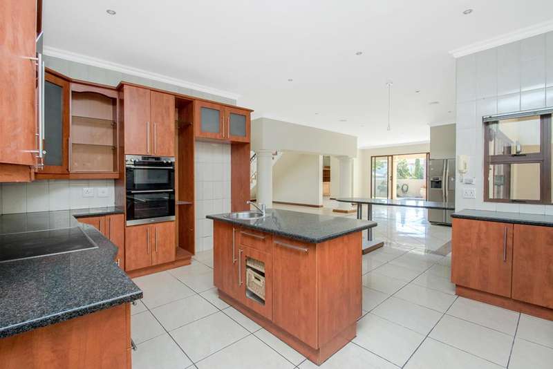 Grand 5-Bedroom Home with Ample Living Space, Entertainment Features & Triple Garaging Set in an upmarket, secure estate, this expansive family home offers luxurious proportions, exceptional entertainment features, and premium finishes throughout. From the moment you step into the double-volume entrance hall, framed by elegant dual staircases, you?ÇÖre met with a sense of grandeur and timeless style. The home features three garages with additional parking space for up to seven more vehicles, making it ideal for large families or avid entertainers. At the heart of the home is a large, well-appointed kitchen featuring granite countertops, a centre island, double-door fridge space, and ample storage. A separate scullery and pantry area accommodates up to three under-counter appliances, keeping the main kitchen clutter-free and practical. The living spaces are abundant, with four to five reception areas, including formal and informal lounges, all flowing out to a covered patio, lush garden, and inviting swimming pool?Çöa perfect layout for entertaining and family life. A fireplace adds warmth and ambience, while a built-in bar with a sink and even a men?ÇÖs loo enhance the home?ÇÖs entertainment credentials. Upstairs, the living areas continue with a pyjama lounge that opens onto a large balcony, creating an additional space to unwind or enjoy morning sun. The bedroom wing includes: Bedroom 1: Laminate flooring, five built-in cupboards, and a full en-suite bathroom with bath and shower. Main Bedroom (Bedroom 2): A spacious and elegant retreat featuring laminate flooring, air-conditioning, a walk-in closet, and a full en-suite bathroom with double shower, spa bath, and separate toilet (note: fittings are older in style). Bedroom 3: Also fitted with laminate flooring, four cupboards, air-conditioning, and a full en-suite bathroom. Bedroom 4: Laminate flooring and four cupboards. Bedroom 5: Laminate flooring, currently without cupboards?Çöideal as a guest room, home office, or hobby room. A shared bathroom with both bath and shower services the additional rooms. All bedrooms enjoy large windows, allowing for an abundance of natural light and garden or estate views. This home is a rare find?Çöoffering unmatched space, functional luxury, and ideal flow for both family living and large-scale entertaining. Disclaimer: Information provided is deemed reliable but not guaranteed. All details are approximate and subject to change without notice. Buyers are advised to verify all information. Seller and agents make no warranties. Availability subject to change.