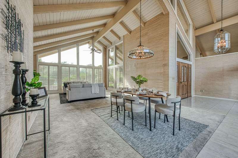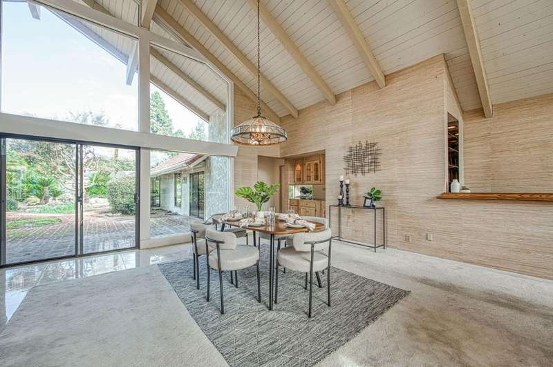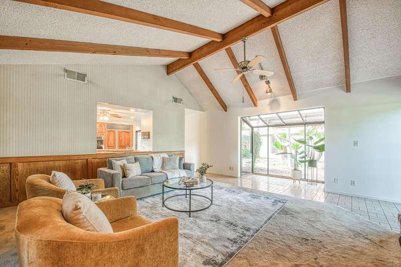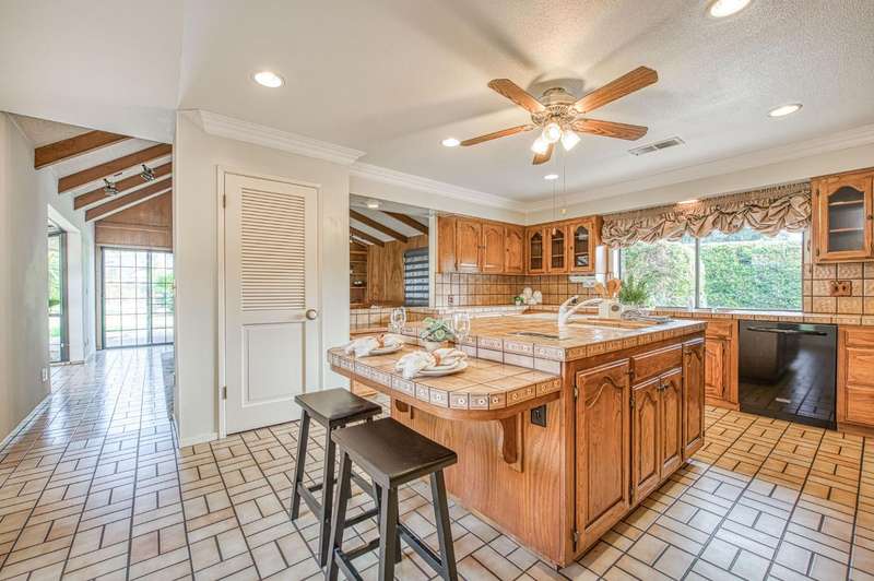 Incredible opportunity to own a custom single-story home in the beautiful Sunnyside neighborhood of Fresno. Situated on a sprawling 26,000 sq. ft. lot, this well-maintained 3-bedroom, 2.25-bath home has a mid-century modern flair and generous living spaces. The formal living and dining rooms feature built-in cabinetry, large picture windows, a wet bar, and two fireplaces ideal for entertaining. The spacious kitchen includes a large prep island and ample storage. A grand entry welcomes you into the home, which is surrounded by mature landscaping and over 50 striking Sego palms. The expansive backyard provides plenty of space for hobbies, gardening, or future outdoor projects. Located near Sunnyside Country Club, shopping and other local amenities. This home offers a rare opportunity to own in one of Fresno's most established neighborhoods.