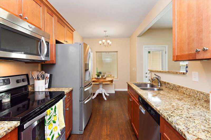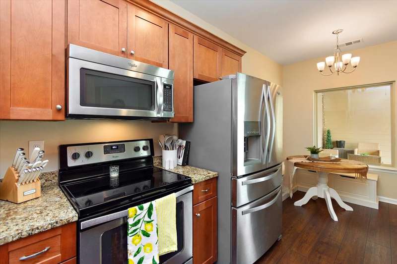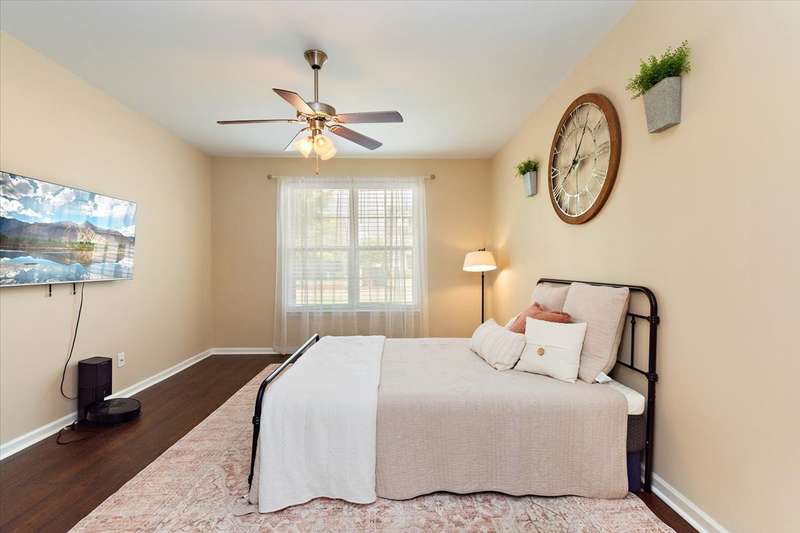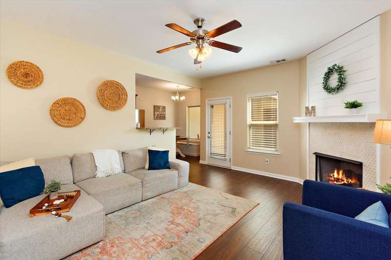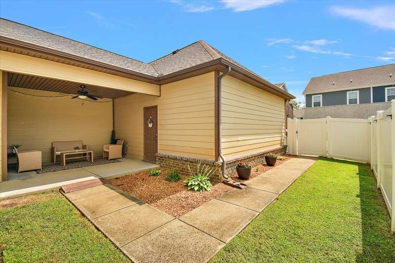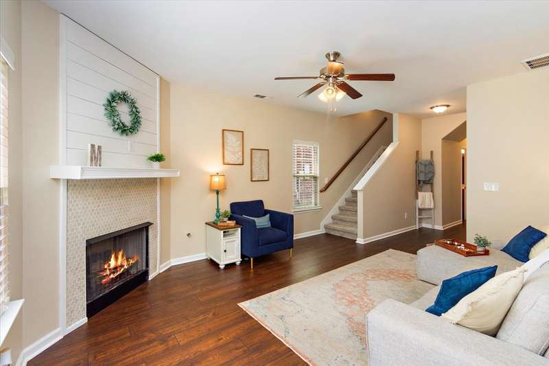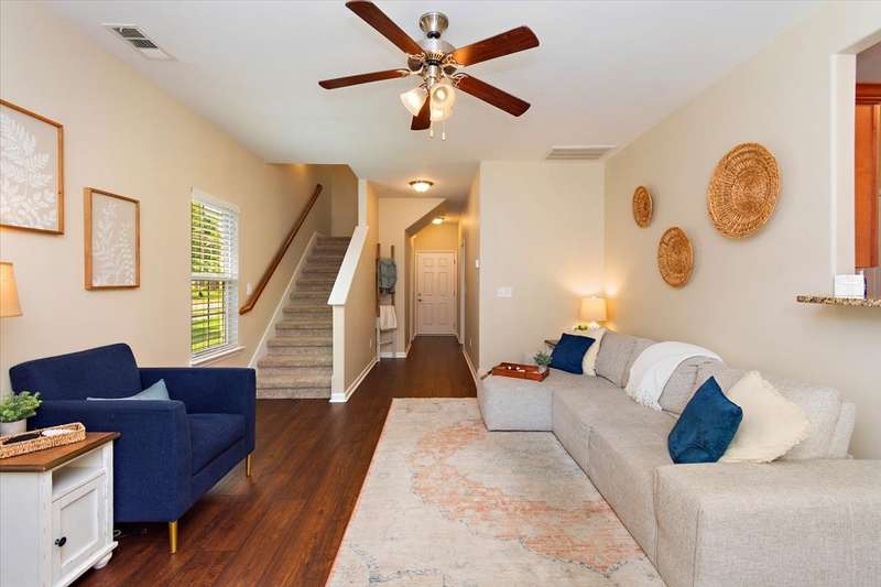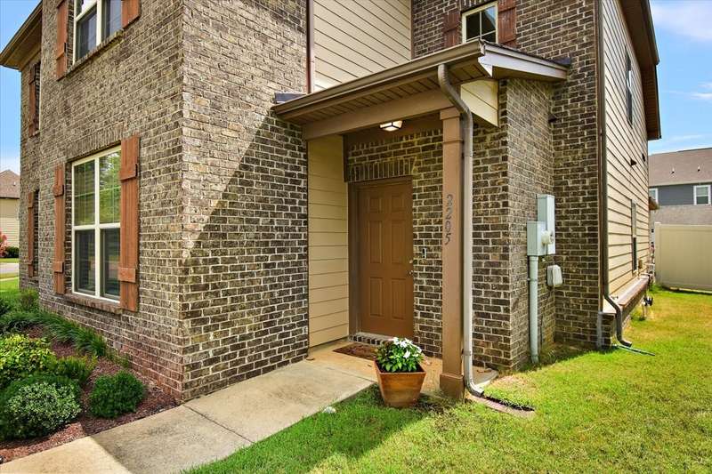 This beautiful townhome in highly sought after Three Rivers, has been well loved. This bricked front unit has been freshly painted, newer carpet upstairs and new wood laminate flooring throughout downstairs. The owners suite is on the main level with a walk in closet. The kitchen and dinning nook are open to the living room. Enjoy the very private, covered patio and fenced in courtyard that leads to the 2 car garage. Upstairs are 2 spacious bedrooms with large closets. Walk in storage. Enjoy Three Rivers amenities that includes sidewalks, club house and pool with lots of green space. All utilities are underground, so no unsightly power lines. Outdoor maintenance free! LOCATION... is perfect. Convenient to all of Murfreesboro's best dinning and shopping. Refrigerator, washing machine and dryer convey.