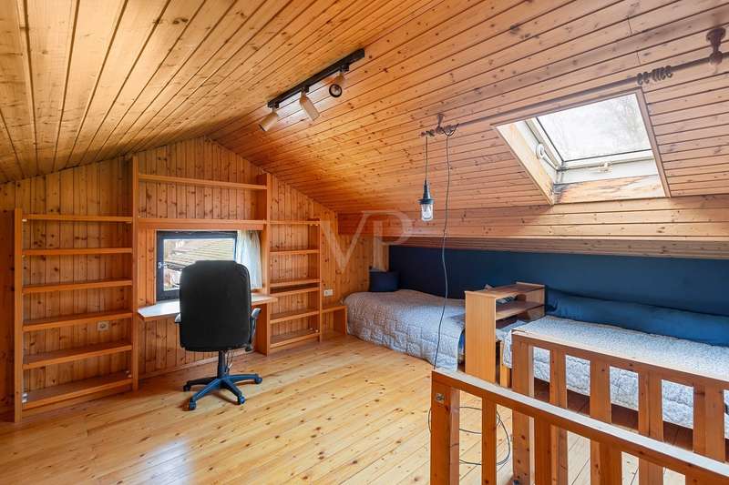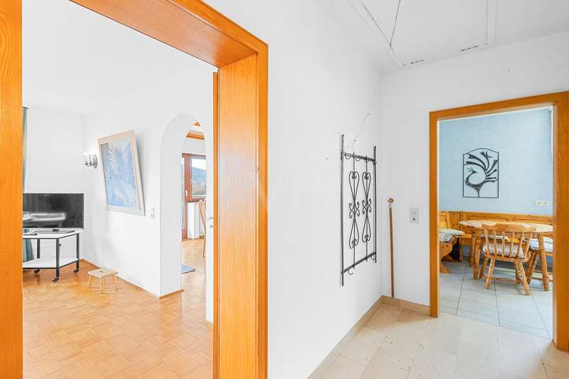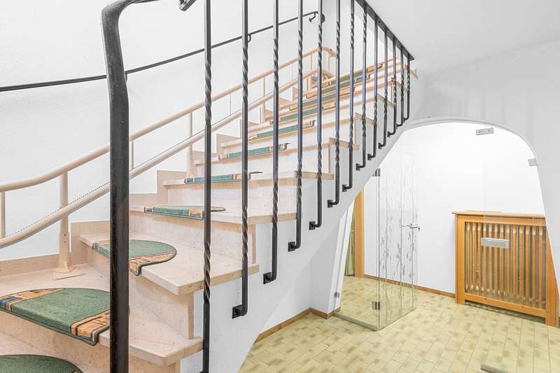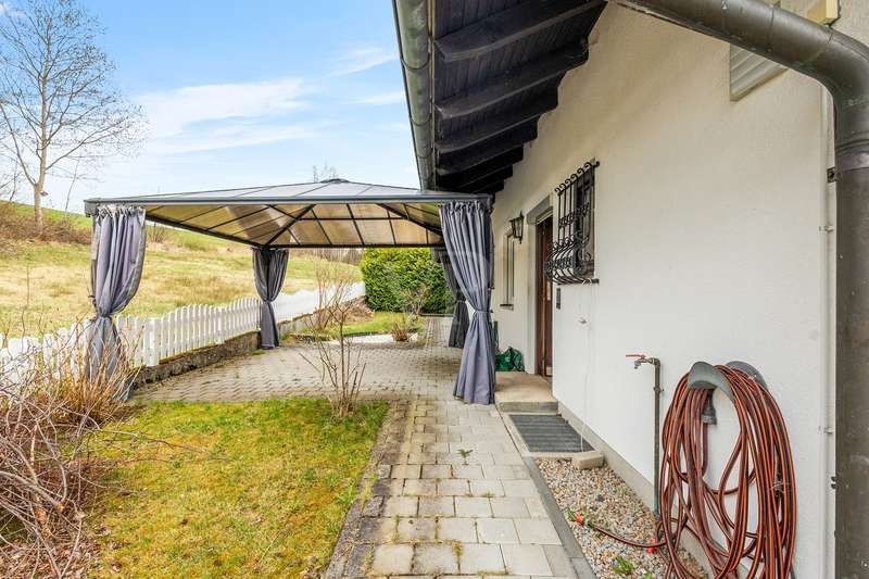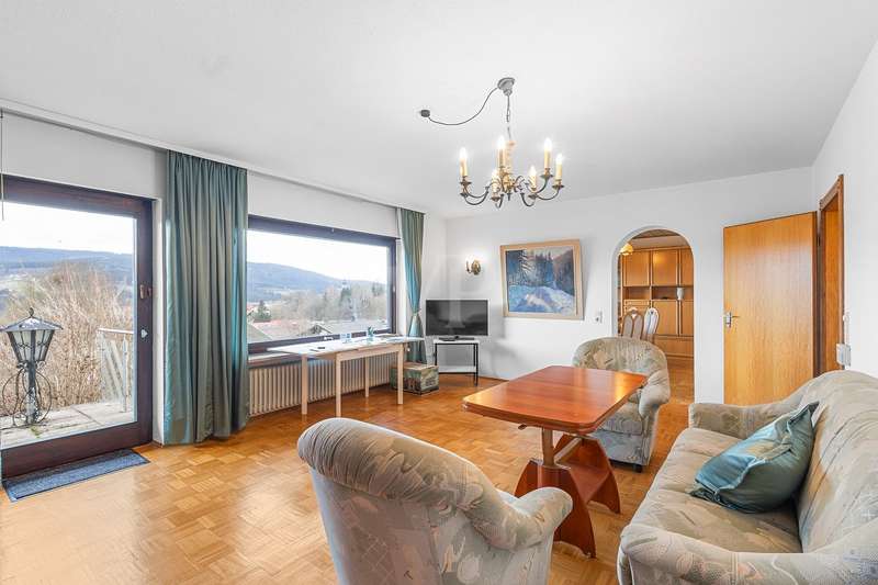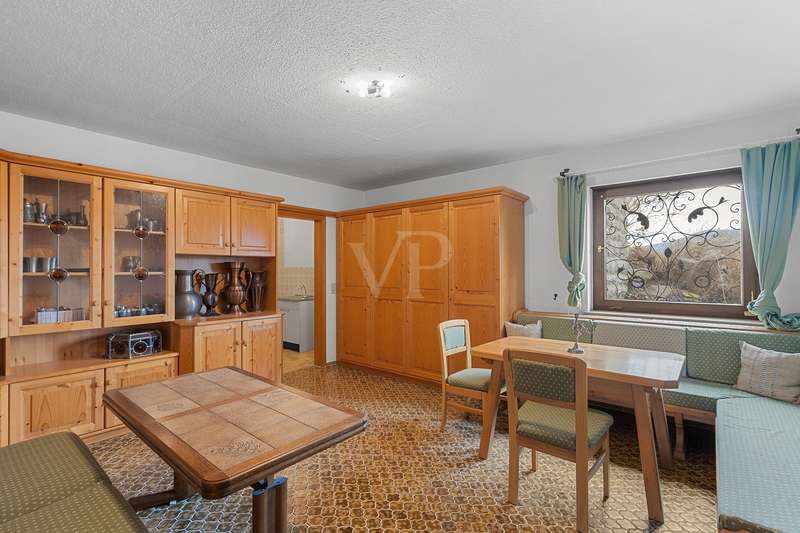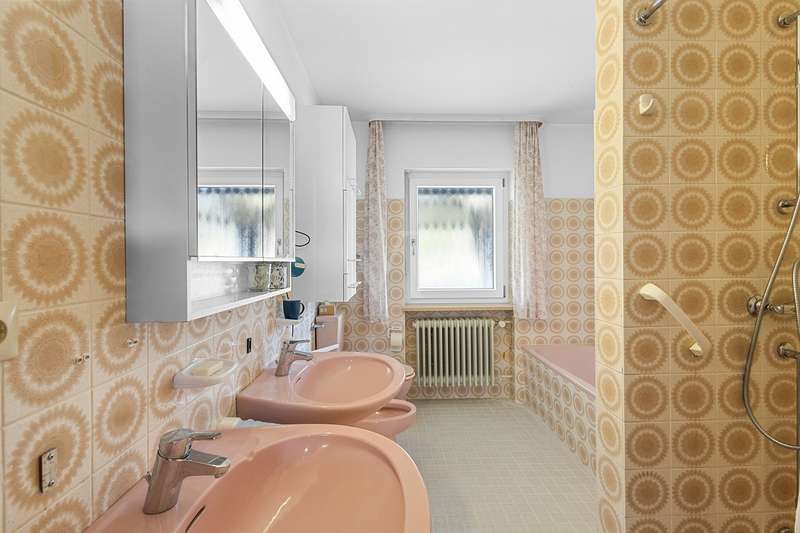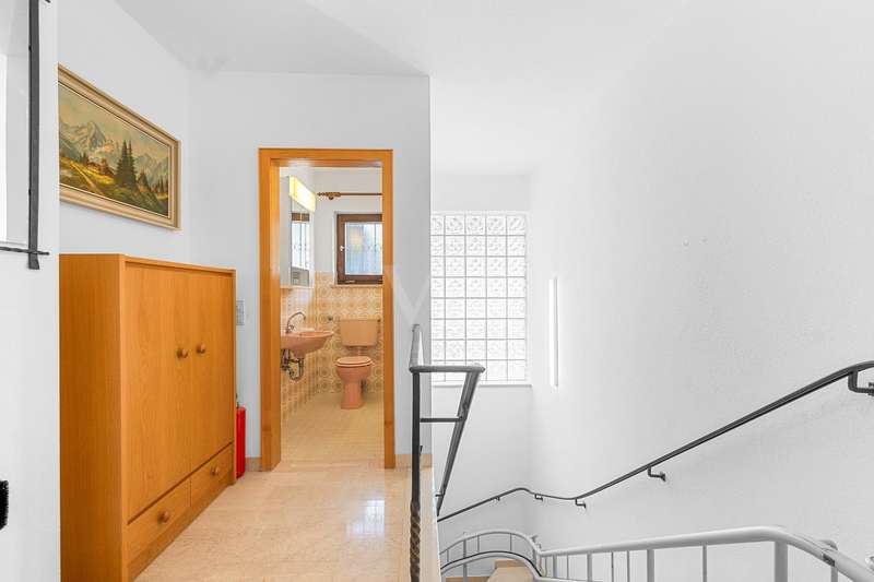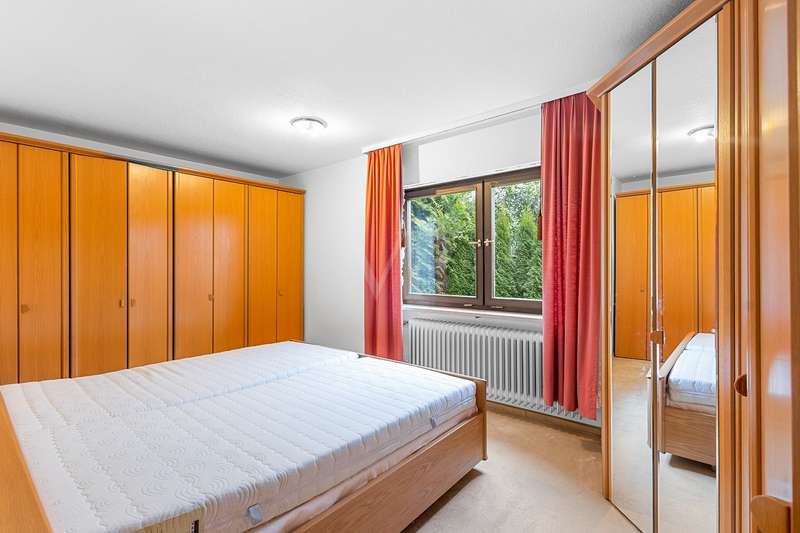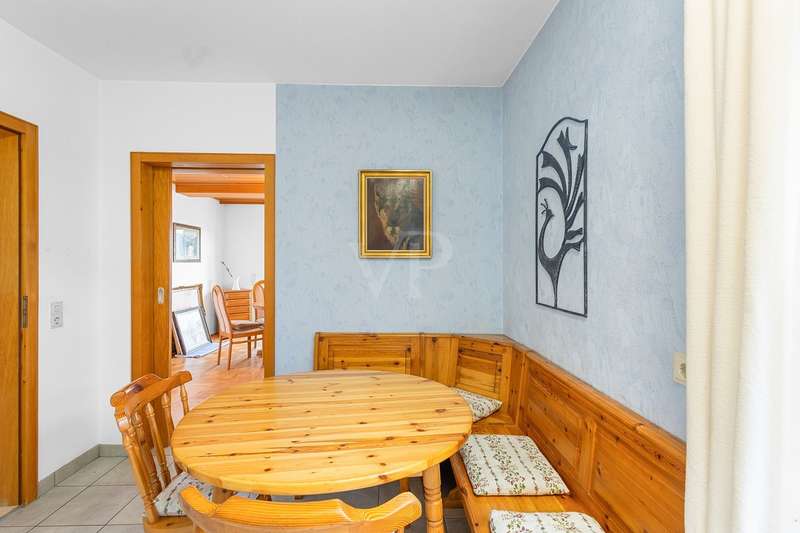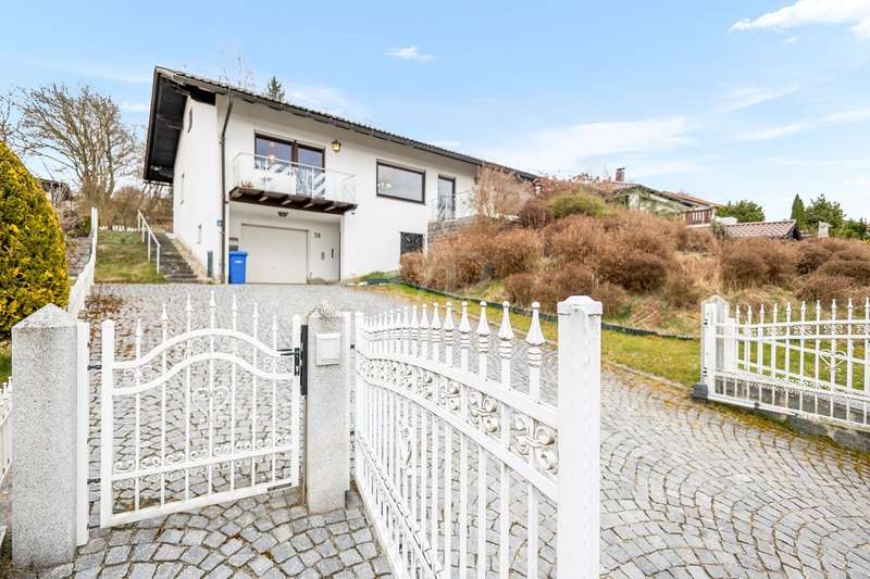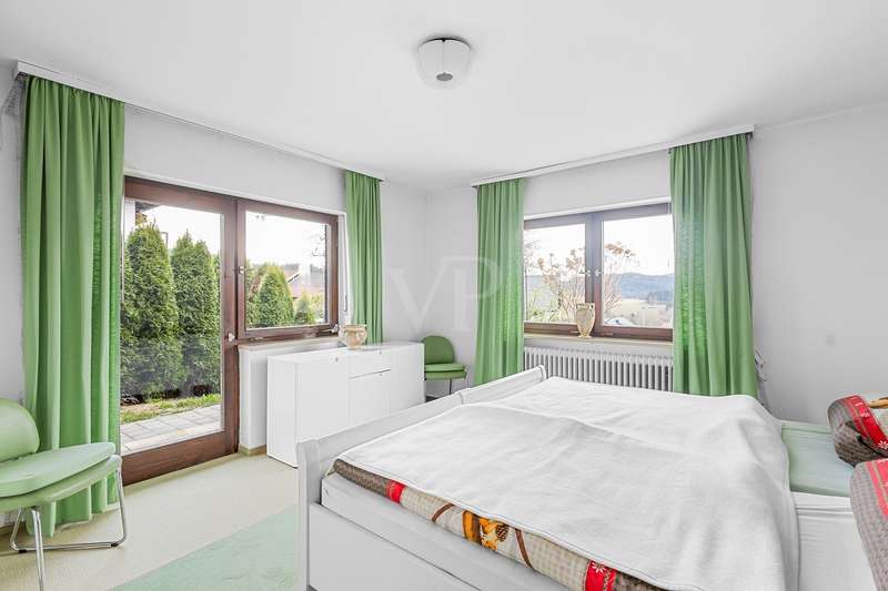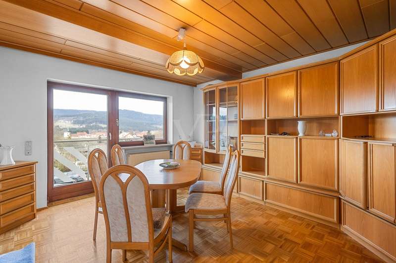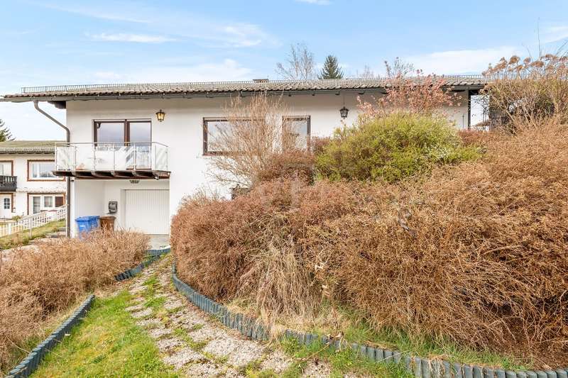 For sale is a well-kept detached house that was built around 1975 and has been kept in good condition. The property boasts a generous living space of approx. 205 m² on a fenced plot of approx. 812 m² in a quiet location with wonderful views from the terrace and balcony. The attractive south/west orientation offers optimal sun conditions and would lend itself to the installation of a PV system. Features include both a balcony and two spacious terraces, which offer lovely opportunities for outdoor relaxation. The property is also equipped with a large car garage integrated into the house, which offers storage space for tools or bicycles in the separate rear area. Inside the house, you will find a total of five well-proportioned rooms, including three bedrooms and three bathrooms. One of the bathrooms on the first floor was renovated in 2023 and has a contemporary design. The guest area on the first floor with its own bathroom offers visitors comfortable privacy. The property is partially furnished and has two separate entrances, which offers flexible usage options, such as setting up a separate office for home offices. The main apartment is located on the upper floor, which can be conveniently accessed separately from the lower area via the second entrance at the rear of the house thanks to the hillside construction. Here you will find 3 bedrooms, the spacious living room with terrace access, the adjoining dining room with balcony and the kitchen next door. A separate laundry room, the guest WC and the spacious bathroom with shower and bathtub complete this floor. Thanks to the well-kept condition of this property, you can move in immediately or modernize it to your own taste. We look forward to your inquiry.