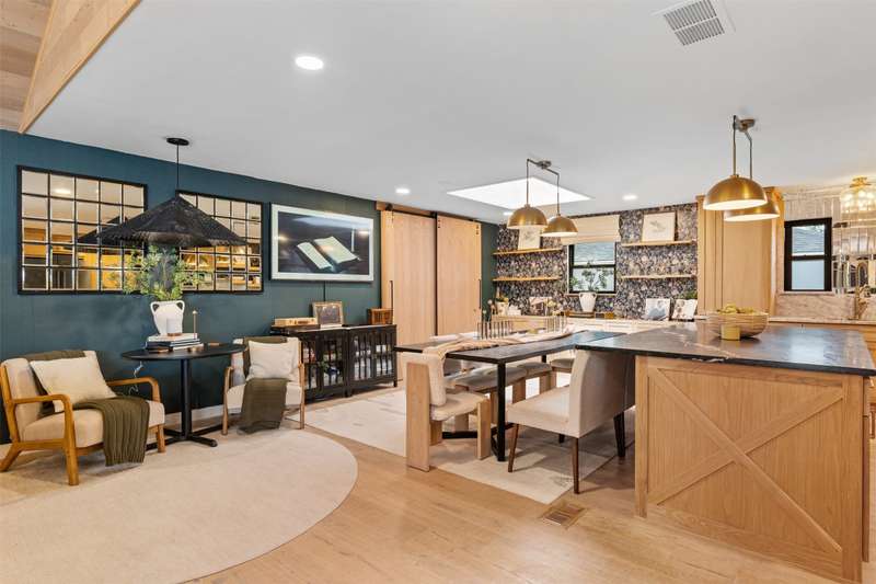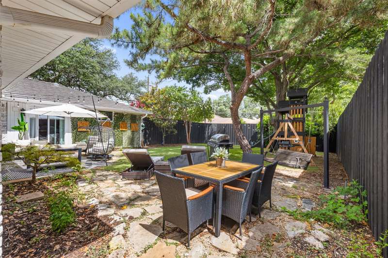 This home is a dreamimpressive from the moment you arrive. The lush green lawn, stunning limewash exterior, sleek black windows, and metal roof all make an unforgettable first impressionand thats just the beginning. Inside, beautiful hardwood floors and wood-planked ceilings create a warm, elevated feel that will leave you speechless. At the front of the home, a spacious office with large windows offers the perfect place to work or unwind. The living room features striking Arcadian doors that open to the private, shaded backyard, seamlessly blending indoor and outdoor living. The kitchen is part of an open-concept design thats both timeless and on-trend, with natural wood finishes and classic colors that never go out of style. The bedrooms are generously sized with excellent closet space throughout. The garage has a counter for workspace and a door to the outside. Expanded mudroom and pocket office in the back too! Located just one block from highly sought-after Mohawk Elementary in Richardson ISD, this home offers both style and substance. Come see it todaythis one is stunning!