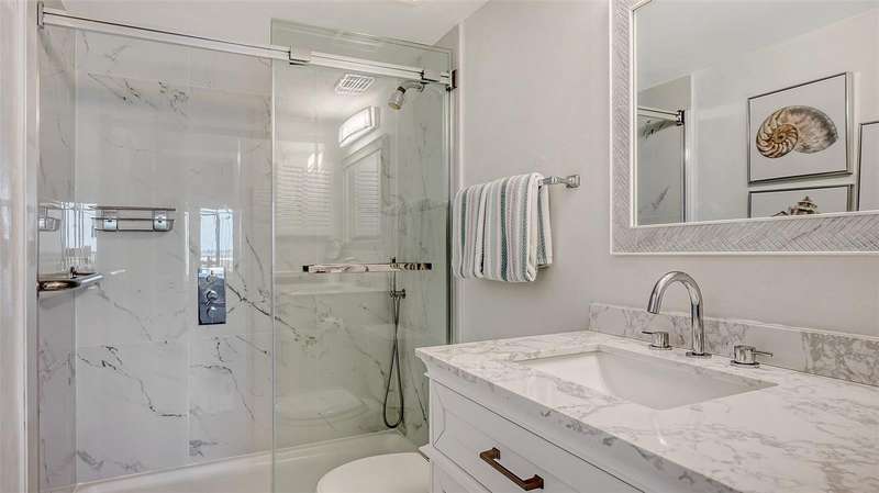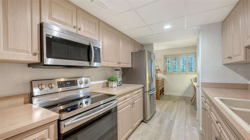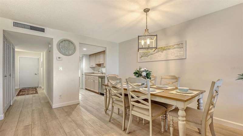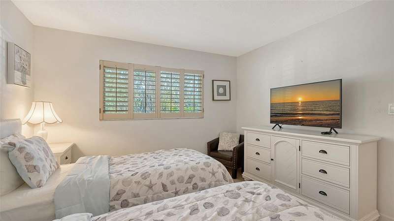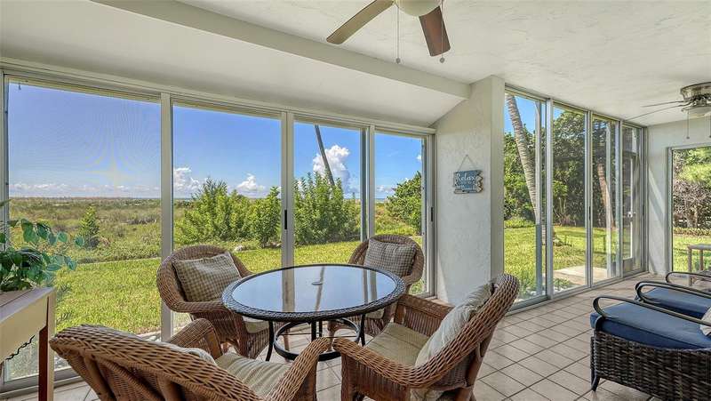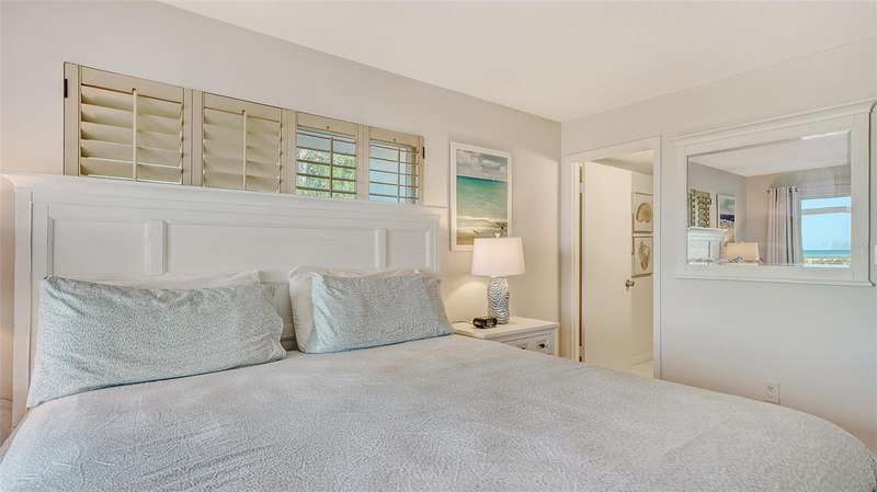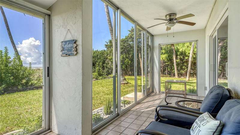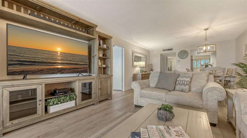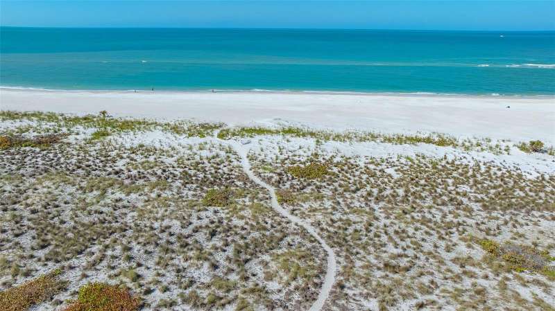 WOW! The minute you open the front door of this first floor Coastal Retreat Seaside condo, you will be captivated by the shimmering, turquoise Gulf of Mexico Water View and the Panoramic Sandy White Beach in front of you. You'll be eager to get a closer look from the glassed in Florida Room, so you may overlook the beauty of this updated, attractively furnished & decorated first floor residence at Sea Pines, a small 28 unit beach front condo complex on the north end of Longboat Key, Florida. Since purchasing five years ago, these owners have lovingly transformed this almost 1400 square foot, corner unit with extra windows, open concept, two bedroom with En Suite baths & walk in closets to today's coastal contemporary style tastes. Improvements include light oak color Luxury Vinyl wide plank flooring throughout, Samsung stainless steel appliances including washer & dryer, new HVAC installed, updated the primary bedroom with a quartz counter vanity, tiled & glass door shower, and fitted out closet. The condo's interior was painted as well & new, high quality neutral colored living room, dining & bedroom furniture, rugs, lighting & drapery, artwork and a large entertainment center installed. A new tiled roof was installed on this building in 2024. Additional features include impact resistant windows in both bedrooms & the office adjacent to the kitchen. Plantation shutters cover all these windows. This office area is fitted out with oak cabinetry, desk & drawers, perfect for working at home. The spacious 26-foot-long lanai (Florida Room) can be entered from either the primary bedroom or the living room via sliders. This may be your favorite room with mesmerizing Gulf & beach views over the sea grass pathways to the water. And of course, the magnificent Longboat Key Gulf of Mexico sunsets will thrill you whether watching from your lanai or enjoying on the beach while toasting your good fortune! This turnkey handsomely appointed & attractively furnished seaside retreat offers great rental income if you so wish. There is the potential of keeping on an existing three month (Jan., Feb. & March 2026) tenant. Currently these owners are using RVA Rentals, but a new owner can choose how or if to lease out this unit. Rental friendly Sea Pines can be leased out six times a year with a one month minimum time period. Two additional benefits to this first floor Unit 14 are that these owners have paid $5357 assessment for new landscaping for the complex plus new interior glass sliders will be installed in the living room & primary bedroom and sellers have paid for that as well. Sea Pines has an electronic gated entry for security & privacy. Amenities include a large, heated pool, is large pet friendly & offers excellent rental income possibilities. Charming Longboat Village is nearby with fabulous restaurants like The Shore, Mar Vista, Whitney's, Ventura's & the thriving Whitney Shopping Center. Anna Maria Island is just across the Longboat north end bridge for additional night life entertainment.