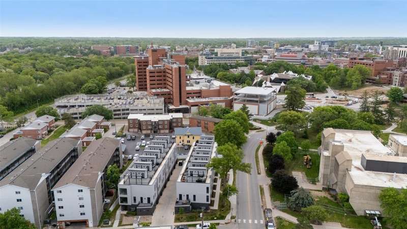 Step into a lifestyle of modern elegance with this nearly-new, barely-lived-in luxury townhome. Perfectly positioned just across from the UI College of Dentistry & only 2 blocks from Carver-Hawkeye Arena, UIHC, and the legendary Kinnick Stadium, this location is as prime as it gets. From the moment you arrive, you're welcomed by private ground-level entrance & attached garage, ensuring privacy, convenience & elevated curb appeal. Inside, the main level impresses with a stylish open-concept layout, featuring a chic half bath, generous living & dining area & a gourmet kitchen complete with abundant cabinetry & pantry space. Upstairs, you'll find 2 spacious bedrooms, 2 full baths & laundry area for ultimate functionality. Then head up to the showstopper: an expansive rooftop patio that feels like your own private sky lounge—ideal for entertaining or unwinding in style, with views that will absolutely wow.