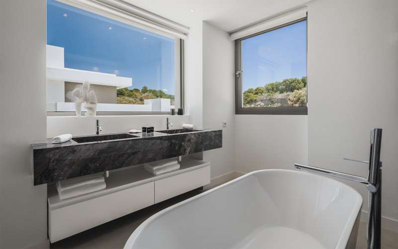These ready-to-move villas are set just above the “New Golden Mile”, a coastal strip between Marbella and Estepona, just next to a couple of important golf clubs. It takes only a short 5-minute drive to reach any services and amenities available in the area. The villas are less than 3 km from the sandy beach of Estepona, 10 km from Puerto Banus, 15 km from the center of the town, 16 km from the center of Marbella, and 65 km from Malaga’s international airport.