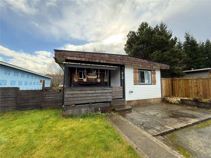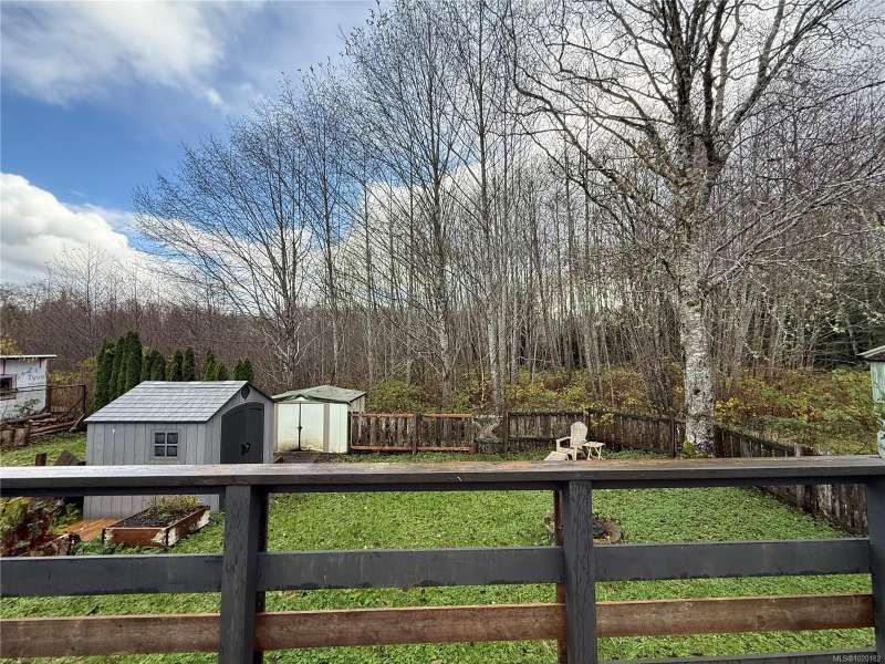 This charming home offers privacy and sunshine with just under 1,100 sq ft, 2 bedrooms + den and 1 bath! Enjoy the spacious back deck overlooking the trees—perfect for relaxing outdoors. Enter through a covered porch, ideal for dry storage and escaping the rain. Inside, you'll find a large living area with a heat pump and WETT-certified wood-stove, access to the backyard, deck and primary. bedroom from this space. The functional layout includes a dining area, bright kitchen, second bedroom, separate laundry, and a 4-piece bath.