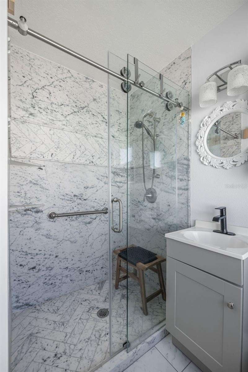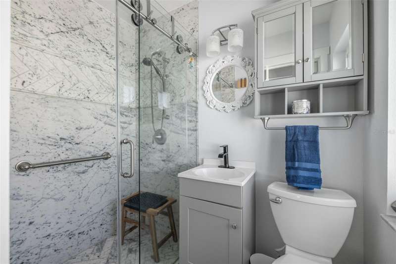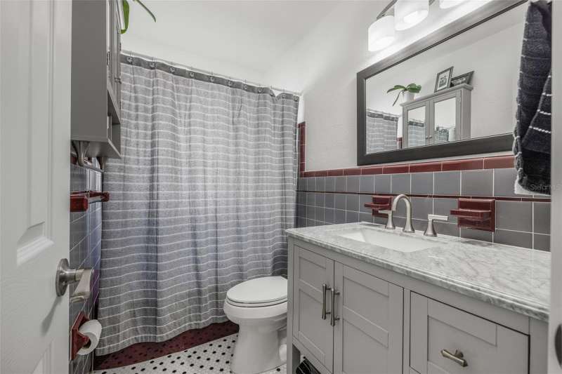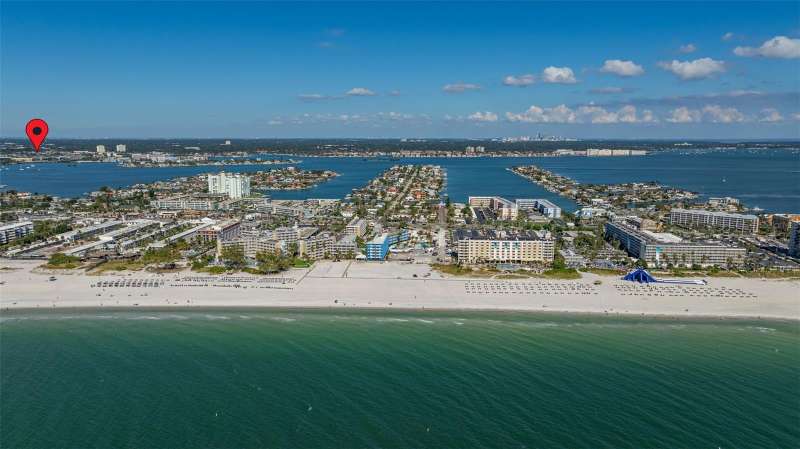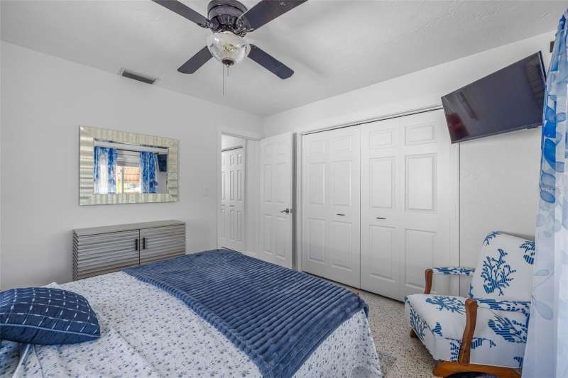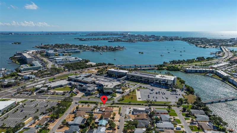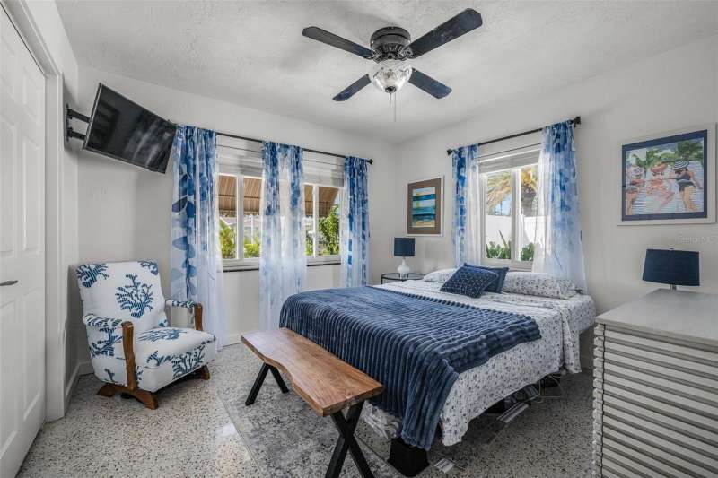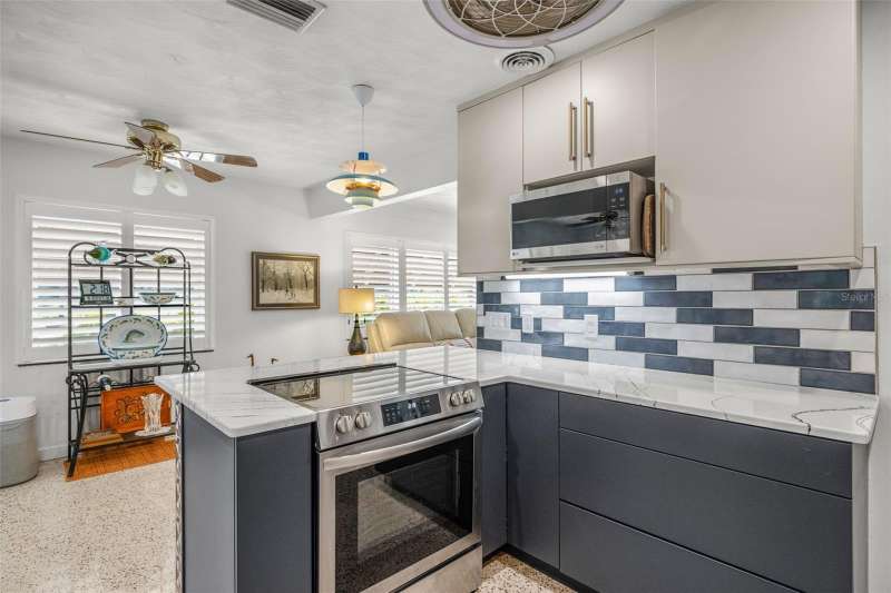 Welcome to your very own slice of the South Pasadena lifestyle! This renovated 2-bed, 2-bath Mid-Century Modern is the absolute definition of the effortless Florida living. Step inside the open-concept living and dining area, which is immediately bathed in glorious light, thanks to striking plantation shutters framing the surrounding windows. Gorgeous terrazzo floors flow throughout the block home, highlighting the classic charm while offering incredible durability. The chef's kitchen, set conveniently off the main living space, is a dream with endless countertop space, all new appliances, and a full suite of soft-close cabinetry. The adjacent sunroom has been fitted with central A/C to add valuable, usable square footage to the home! While this room is currently undergoing renovation, feel at ease knowing that the seller has been making great efforts to work with the city to have this completed before you move in. With a split floor plan offering privacy, both sun-filled bedrooms feature generous reach-in closets for easy storage. The primary bathroom has been completely remodeled and features a sleek, modern frameless shower-your daily retreat! The second bathroom retains its delightful, classic 1950s charm. The brand-new washer and dryer are conveniently located in the attached garage. Outside, the backyard spans into a breathtaking and tranquil space, perfectly landscaped for sun and shade. It features a covered patio with a new shell yard, making your weekend yard work a breeze. In addition, new French drains have been added to the backyard as well, and the wide side yard offers coveted space to park a small boat. Situated on a large corner lot with an attached side-entry garage, this location offers you a short drive to the beautiful Gulf Beaches and is just a 15-minute drive to the excitement of Downtown St. Pete. On top of that, the community has a small resting spot for you to overlook the beautiful water views. This home is more than a beautiful beach house; it's your little retreat for soaking up the sunshine and making lifelong memories.