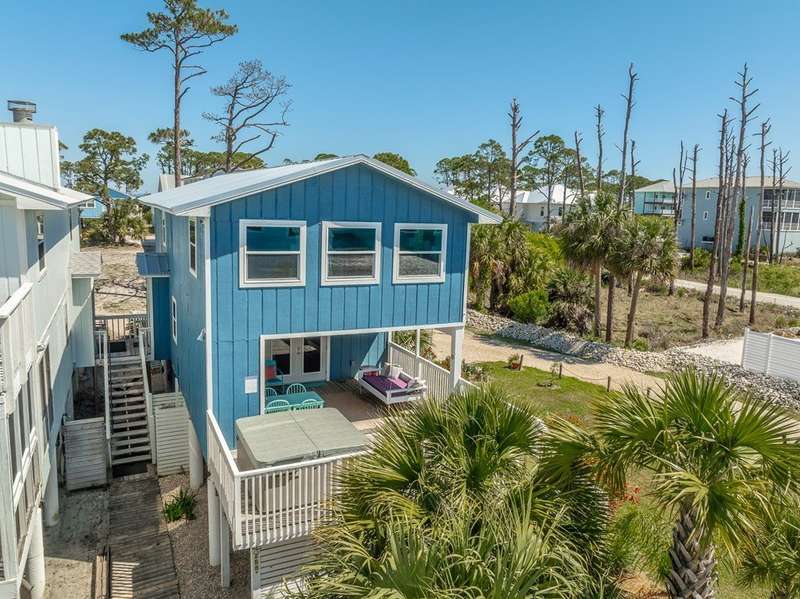 This beautifully renovated 3 bedroom, 3 bathroom home is second tier to the beach and just steps away from the deeded beach access and sugar-white sands of the Gulf. Located in the charming Cape Dunes community on Cape San Blas, this home was highlighted as an HGTV vacation property in 2015. Being sold fully furnished and turnkey, the residence features an upgraded custom kitchen with new appliances and quartz countertops, luxury vinyl plank floors throughout, and french doors leading to the expansive porch with a day bed and hot tub. All bedrooms are on the top level with updated bathrooms, as this property offers the perfect blend of coastal charm, modern upgrades, and strong rental income potential. Enjoy neighborhood charm and walkable access to some of the south Cape's best features, including Salinas Park (with bay access, pickleball courts, and nature trails), the bike path, and local favorite Scallop Republic wine, beer & live music bar. This is also a corner unit in the Cape Dunes community with Gulf views and an extra buffer with nice landscaping for more elbow room on the east side of the property. Whether you're seeking a relaxing second home, a savvy investment opportunity, or both - this property delivers. Offered at $589,000, this coastal retreat won't last long.
