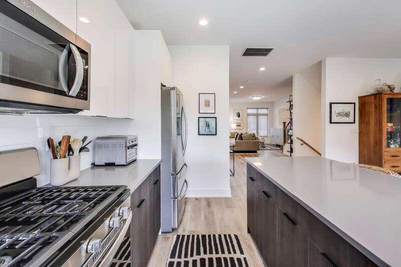 Located in the sought-after Lincoln Elementary School Boundaries, this all-brick townhouse in the River Forest Collection. Just a short walk to the Metra, Green Line, and the shops and restaurants along Madison Street, the home combines convenience with style. Built a handful of years ago, the residence features flat modern Italian cabinetry, stainless steel appliances, and a quartz island kitchen that opens to separate living and dining areas with access to a large balcony-perfect for indoor/outdoor entertaining. The luxe primary suite boasts a massive walk-in closet and spa-like bath with double quartz vanity and oversized shower. A spacious second bedroom includes its own walk-in closet and en-suite bath. There is a third bedroom on the main level. Additional highlights include full-size LG stacked laundry on the bedroom level, a versatile main-level bedroom with a full bath that can serve as an office or family room, and an attached heated two-car garage.