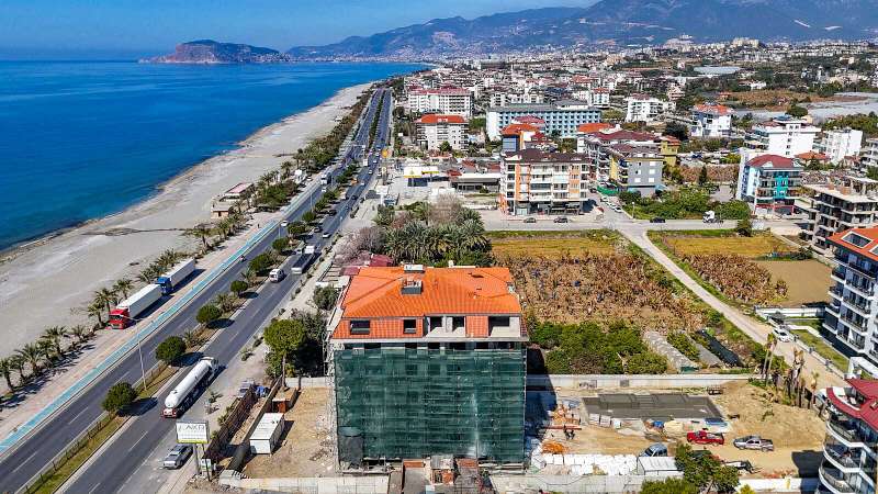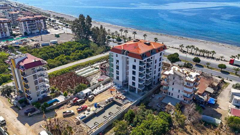 The complex, which is both central and located by the sea in Kestel, is 10 km from Alanya center, 600 m from social facilities such as markets, pharmacies, cafes, 30 km from Gazipasa Airport, and 122 km from Antalya Airport.